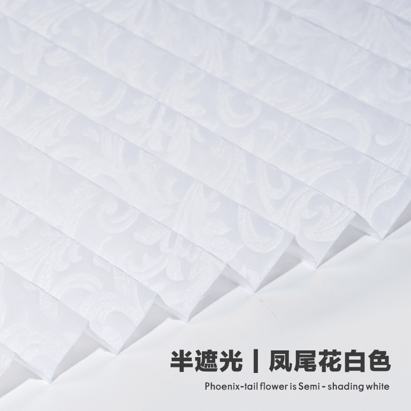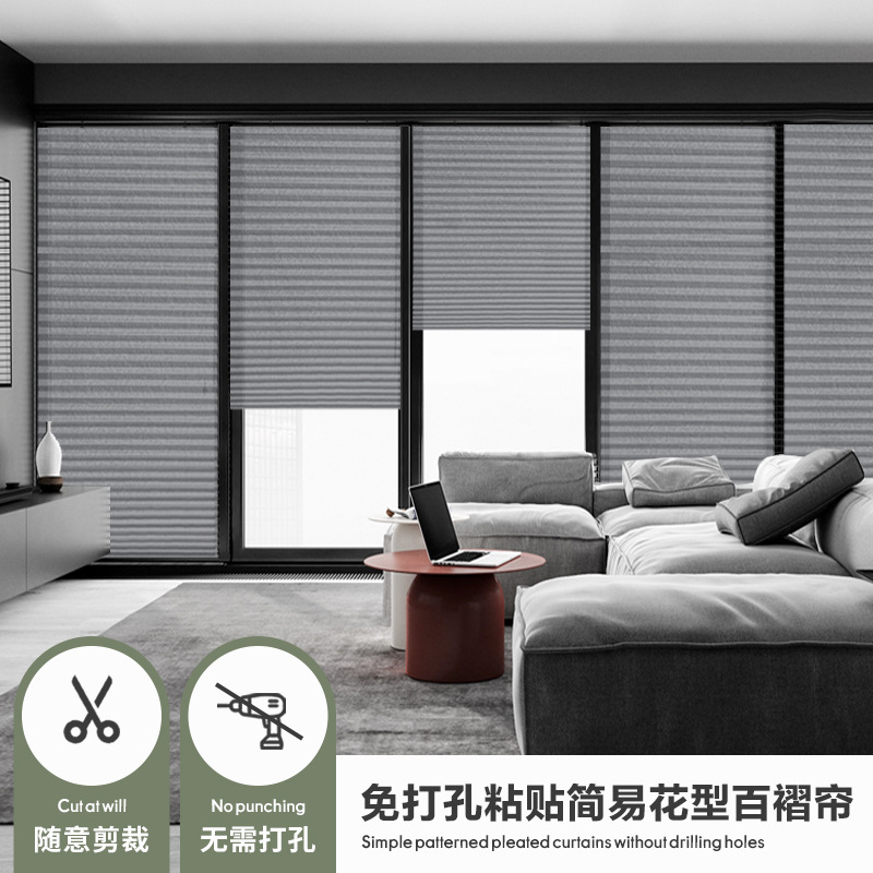 跨境窗帘压花纹印刷花型百褶帘自粘百折帘免打孔遮光帘百叶防晒帘