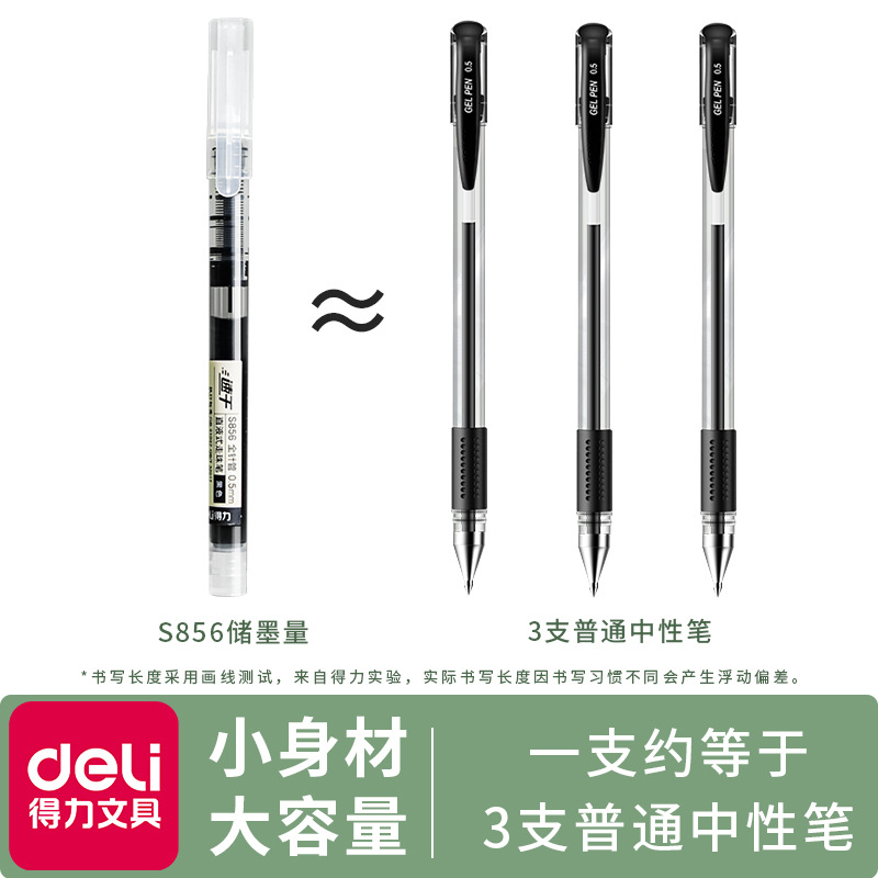 得力S856直液式中性笔签字笔0.5全针管学生考试水笔速干不断墨