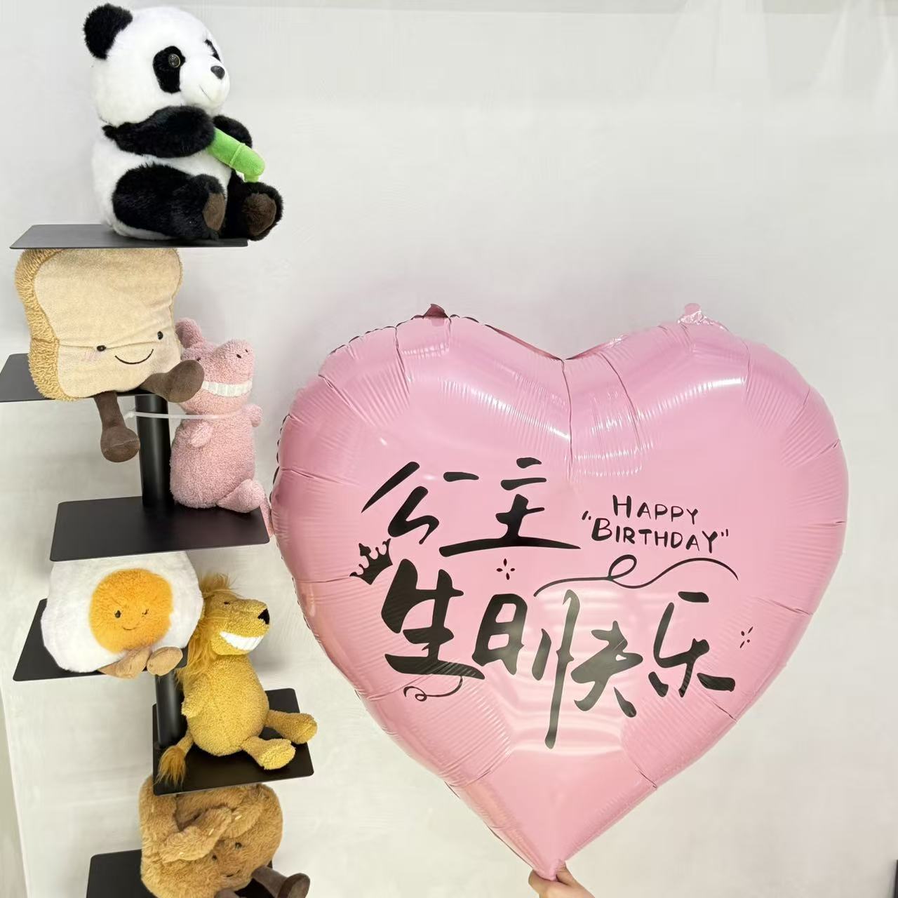 超大粉色生日快乐爱心气球铝膜结婚拍照道具网红派对装饰场景布置