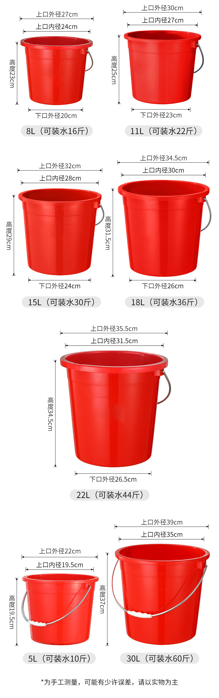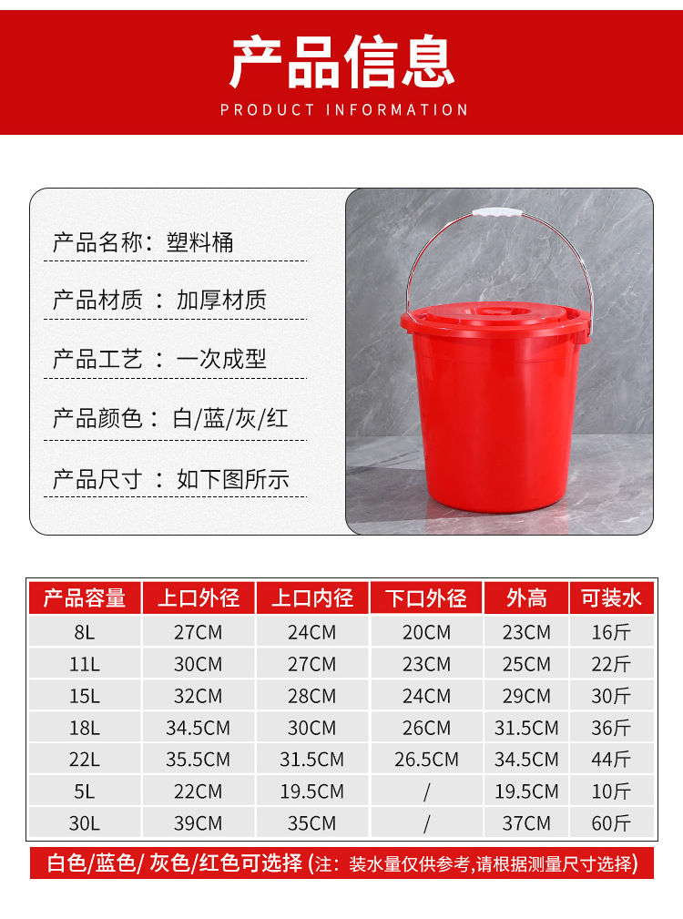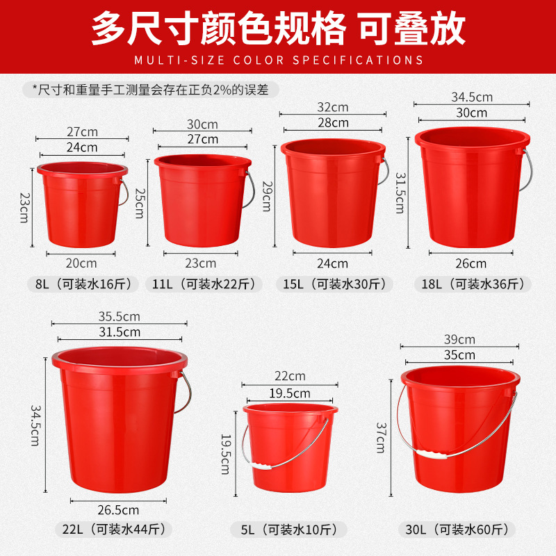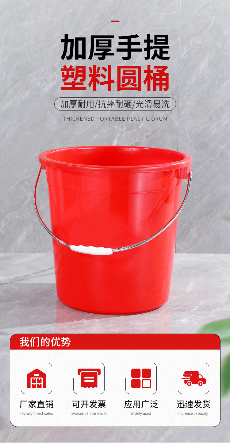包邮加厚带盖家用红桶食品级大号塑料手提水桶耐摔熟胶洗澡洗衣桶