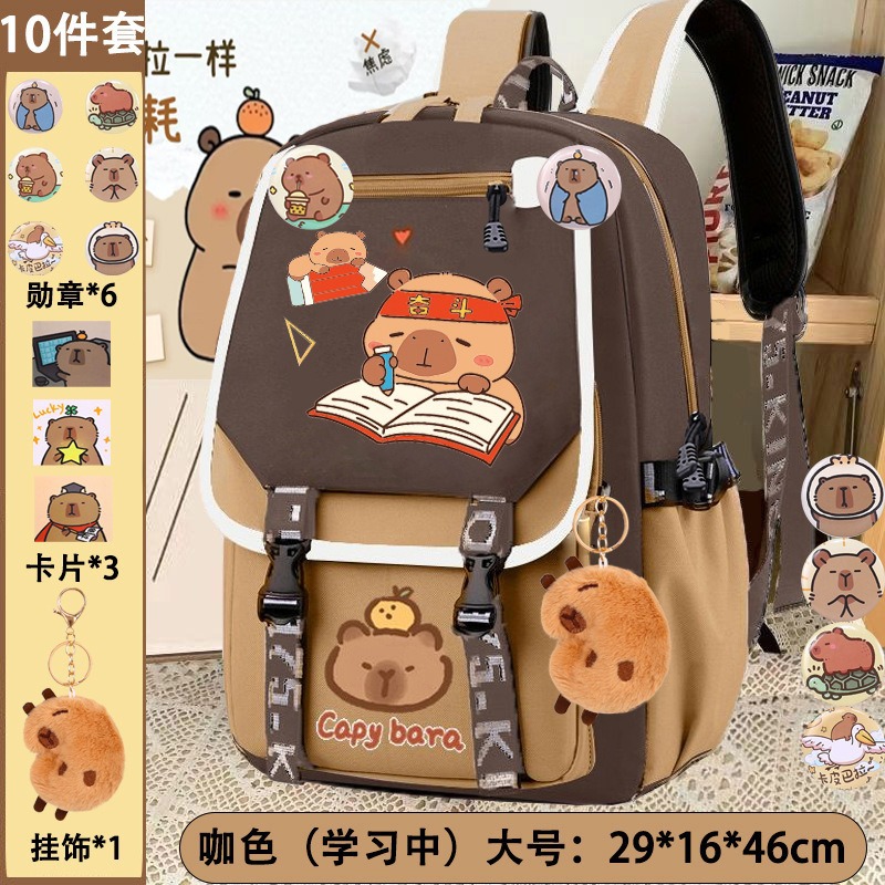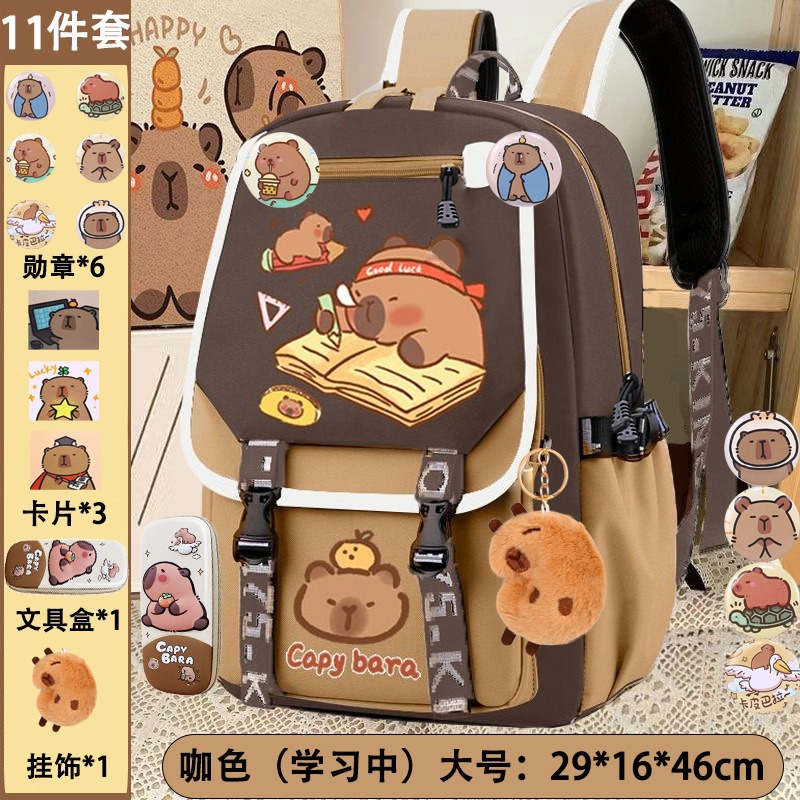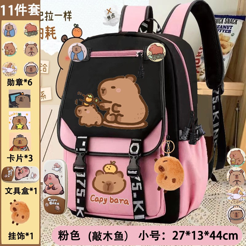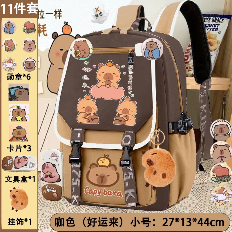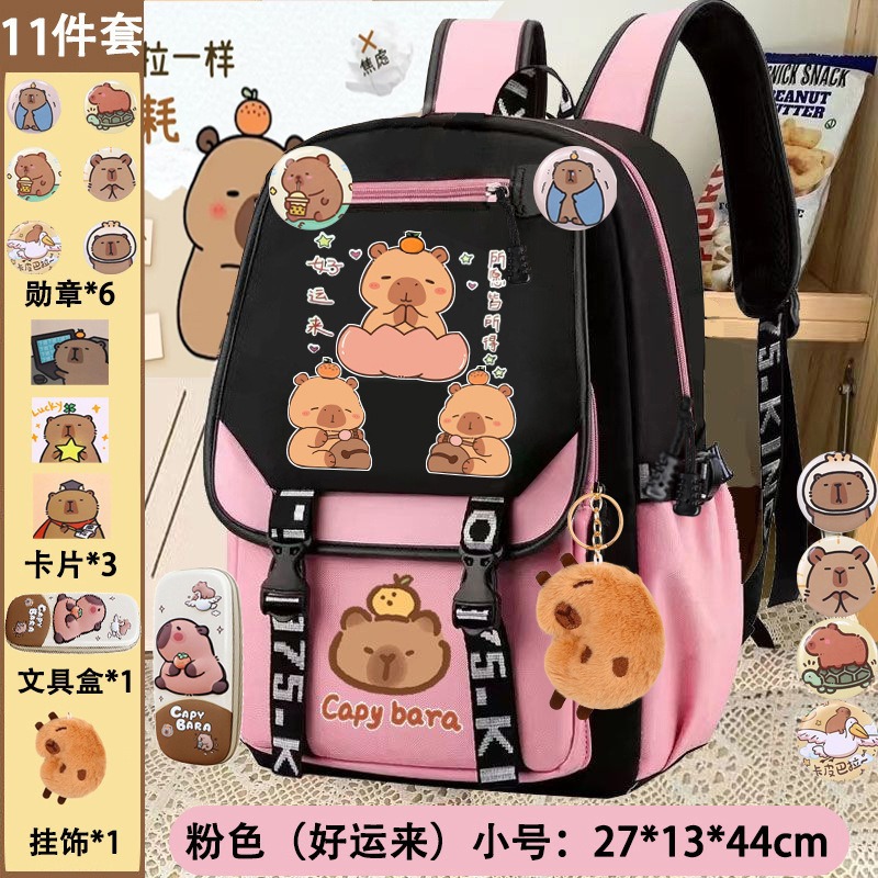 小学生新款书包男女孩轻便卡通水豚大容量护脊儿童双肩包