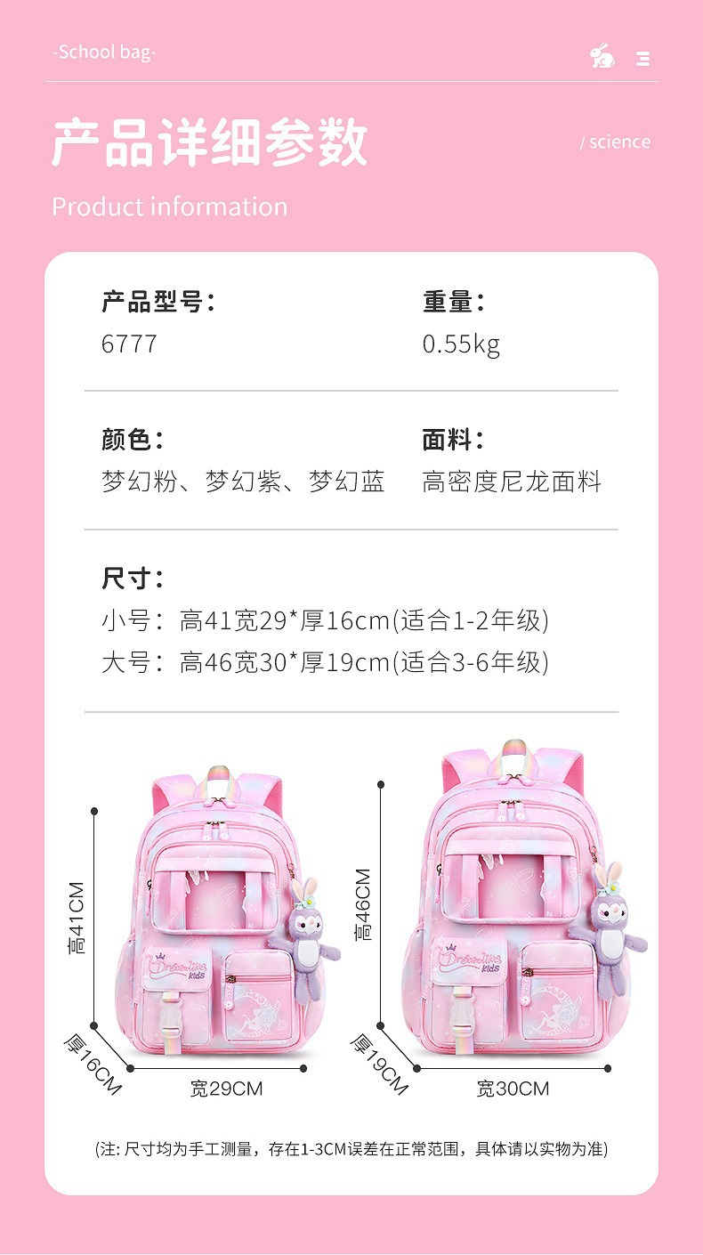 库洛米小学生书包1-3-6年级轻便柔软冰箱开门式儿童双肩背包 批发