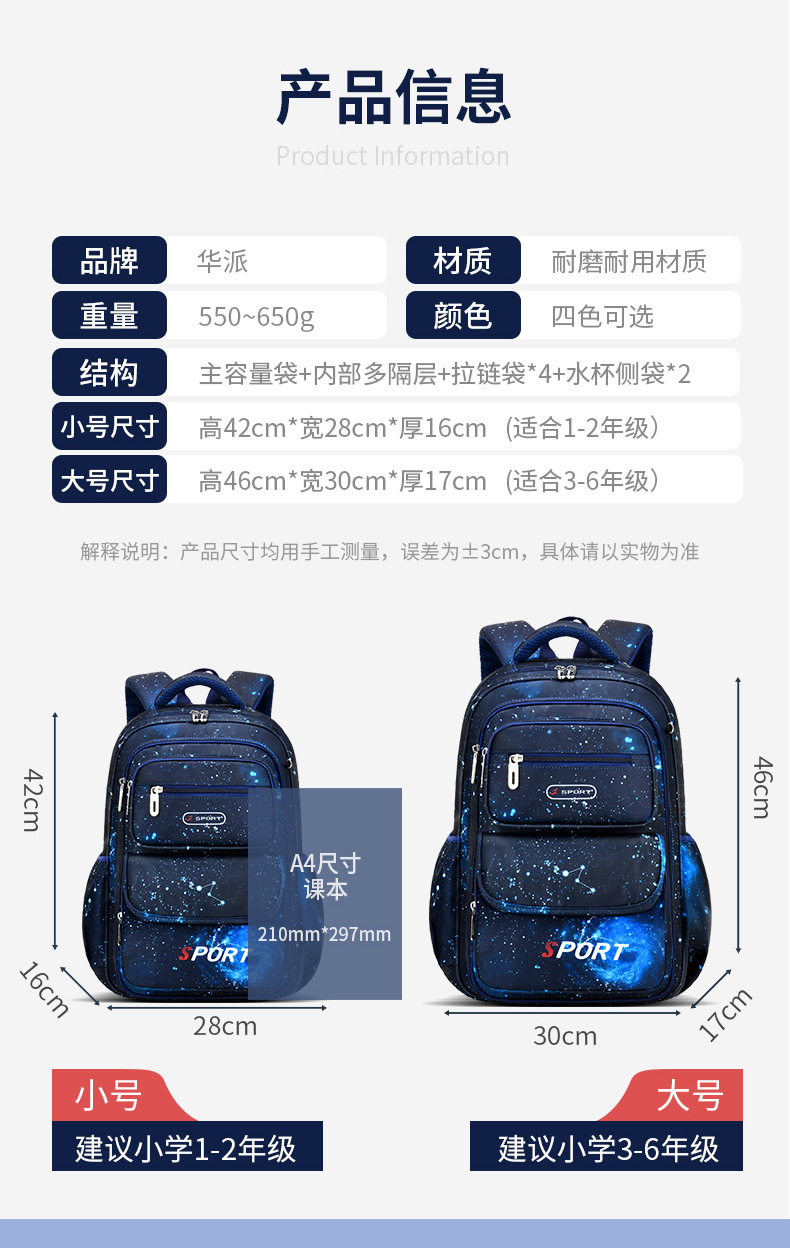 新款小学生书包一三六九年级男孩儿童书包减压防水大容量双肩包