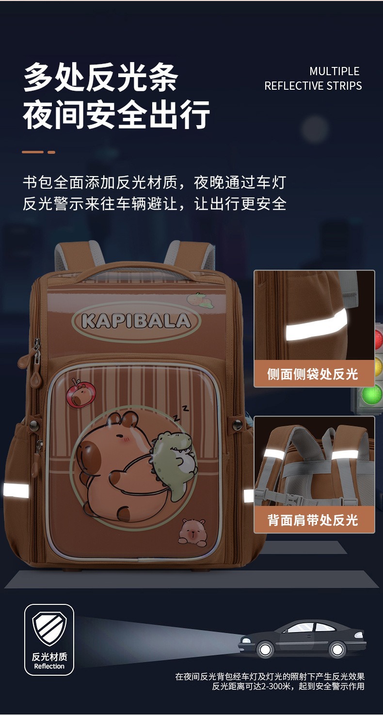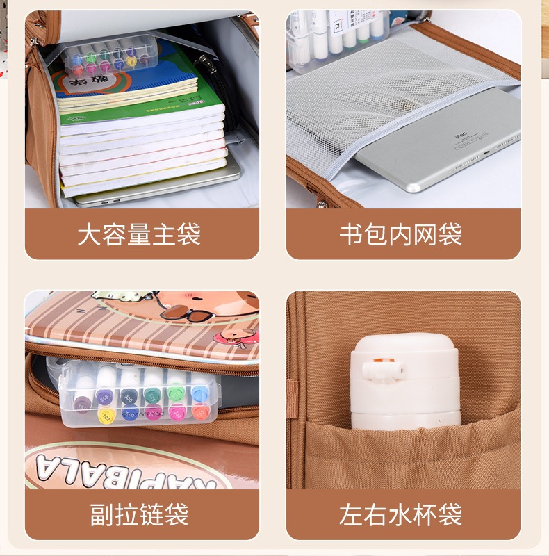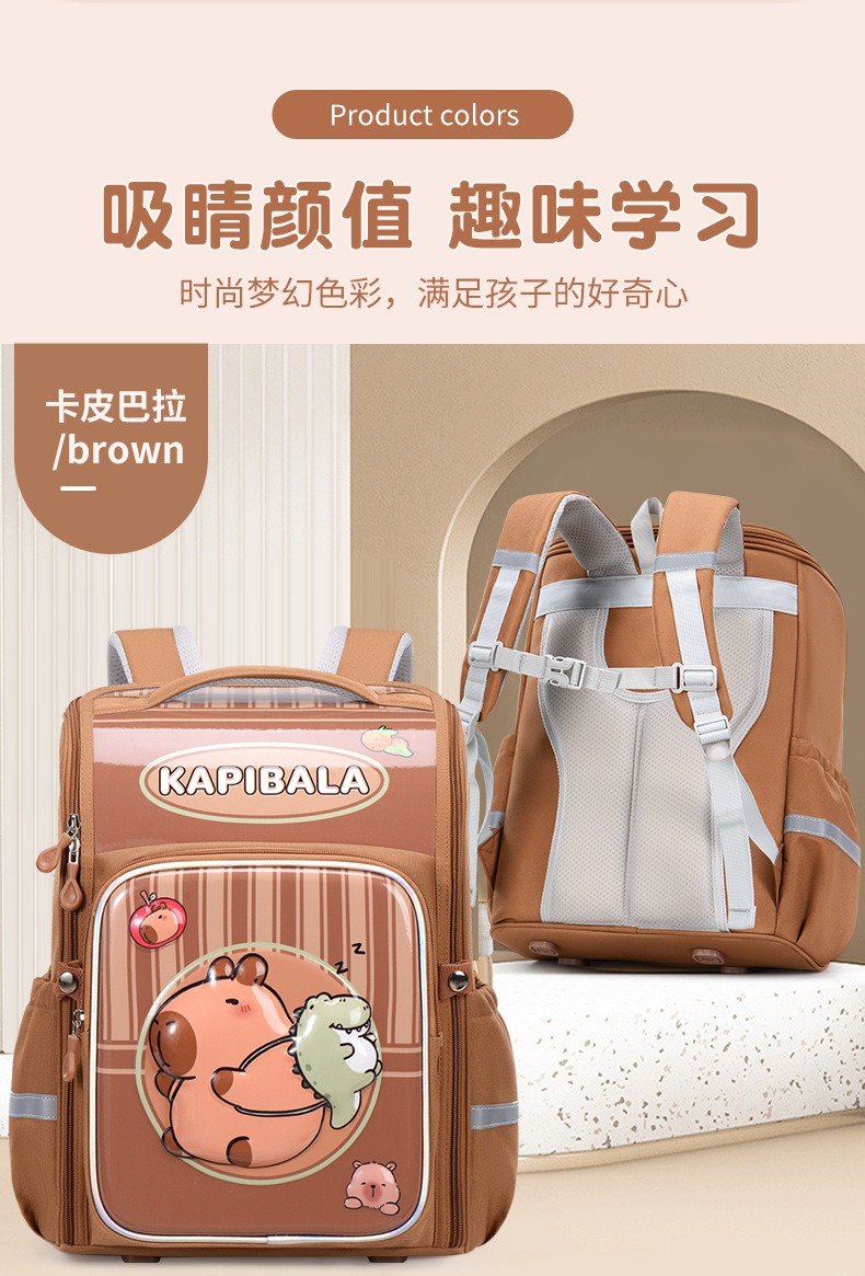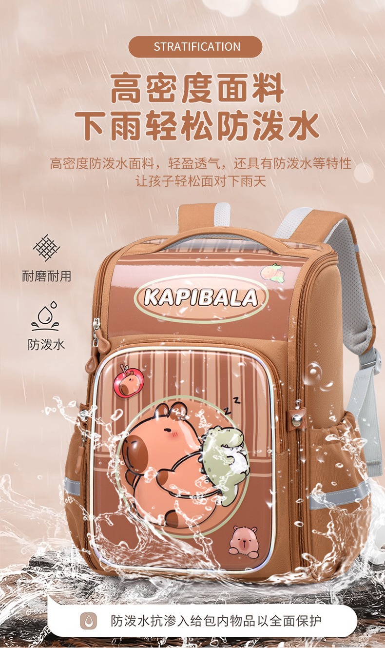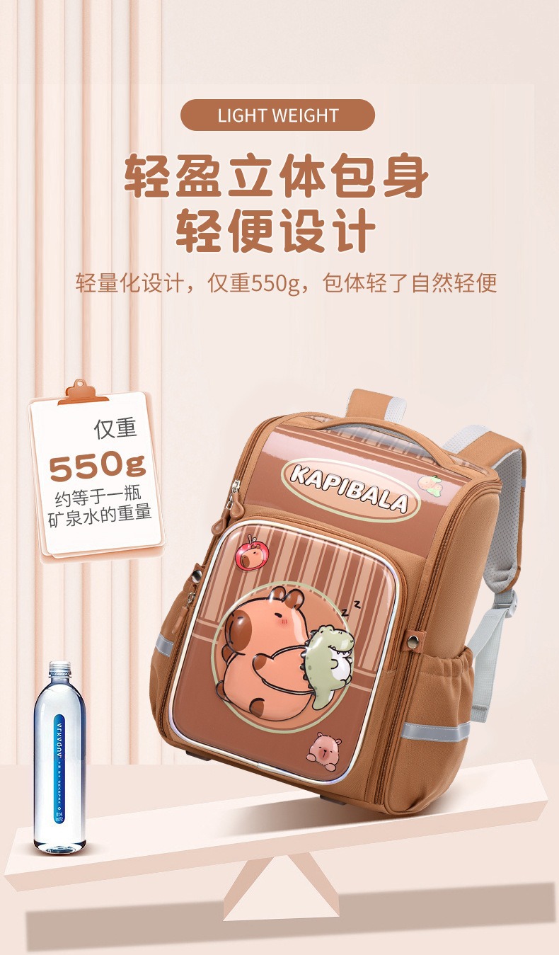跨境小学生卡皮巴拉书包1-6年级轻便儿童书包大容量耐磨双肩背包