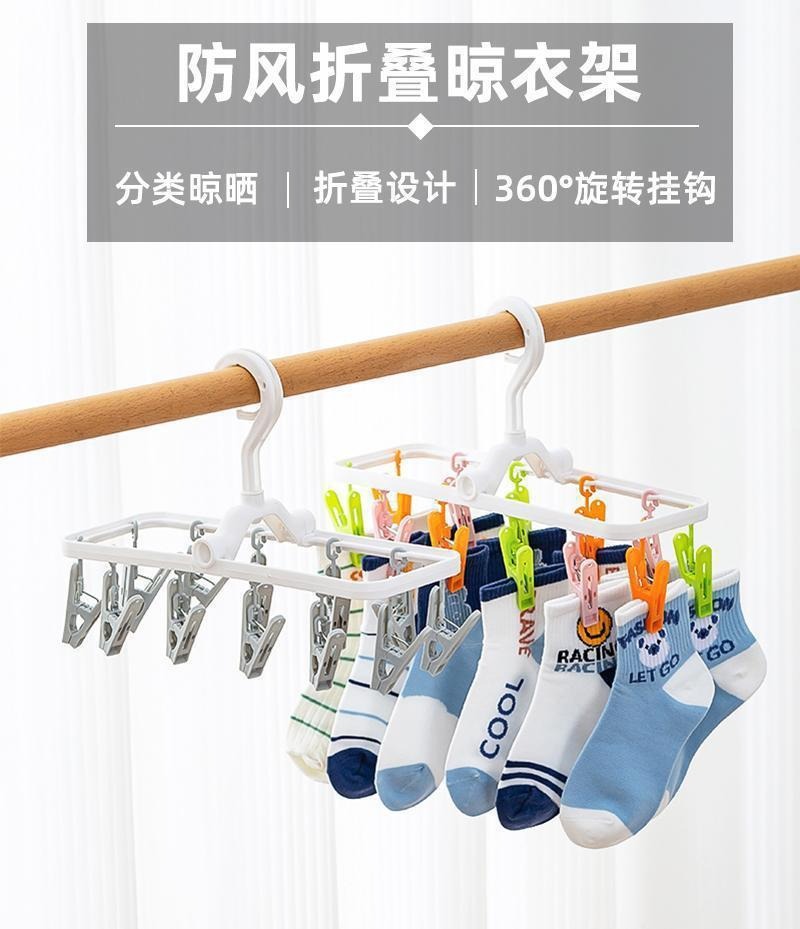 开学宿舍多夹子折叠衣架出差晾晒外出旅游防风可折叠晾衣袜架新款