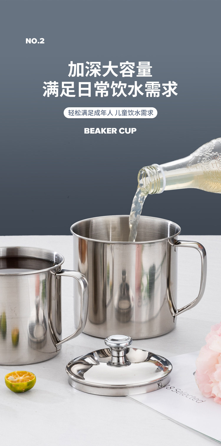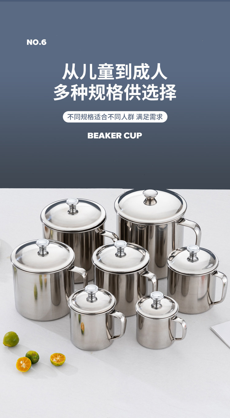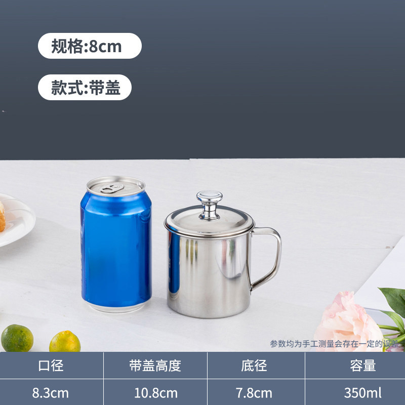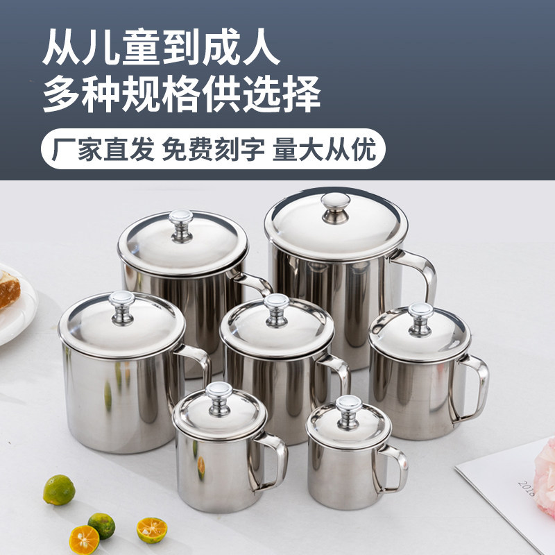 食品级304不锈钢口杯带盖儿童水杯 防摔烤梨家用喝茶杯商用幼儿园