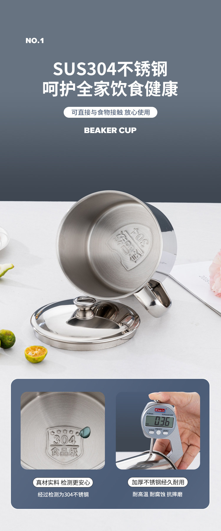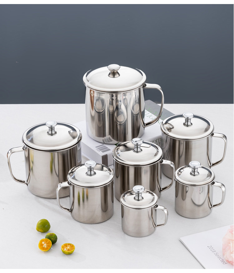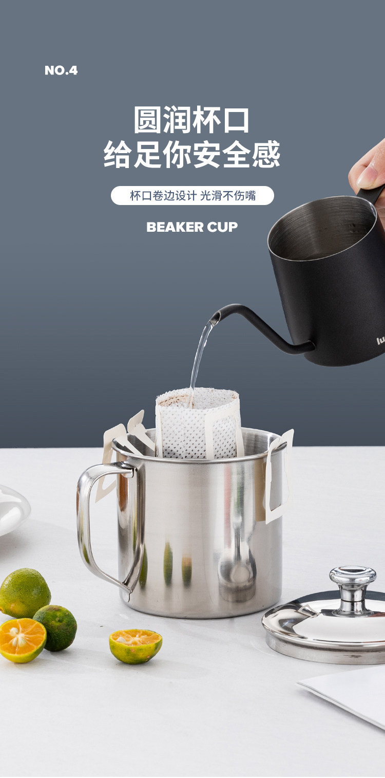 食品级304不锈钢口杯带盖儿童水杯 防摔烤梨家用喝茶杯商用幼儿园