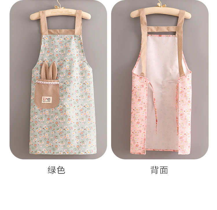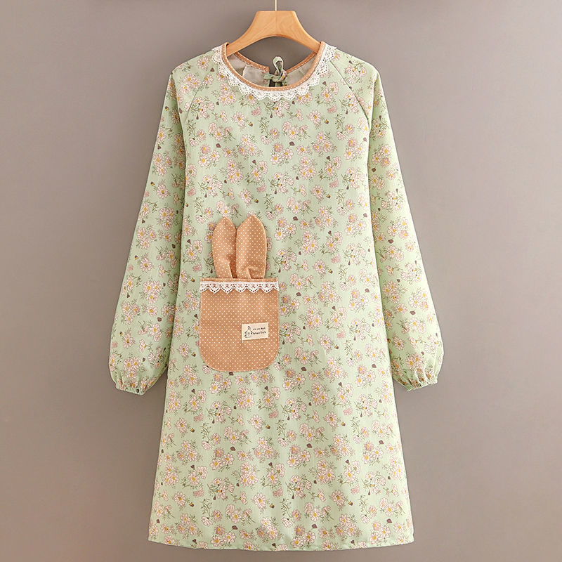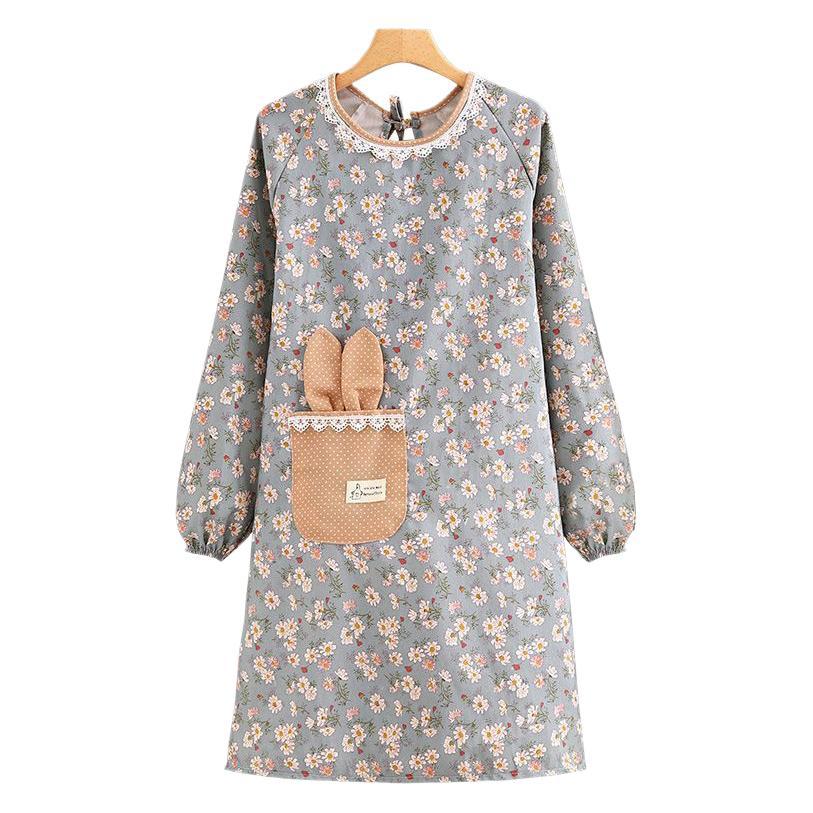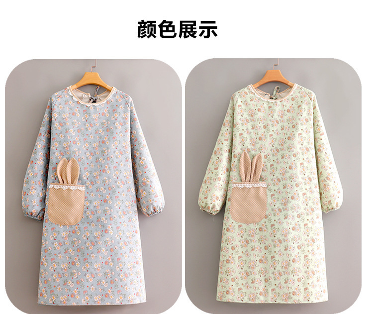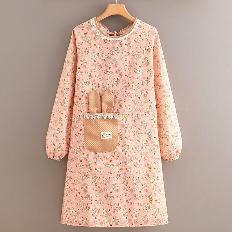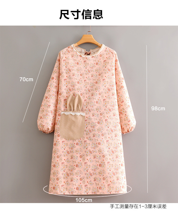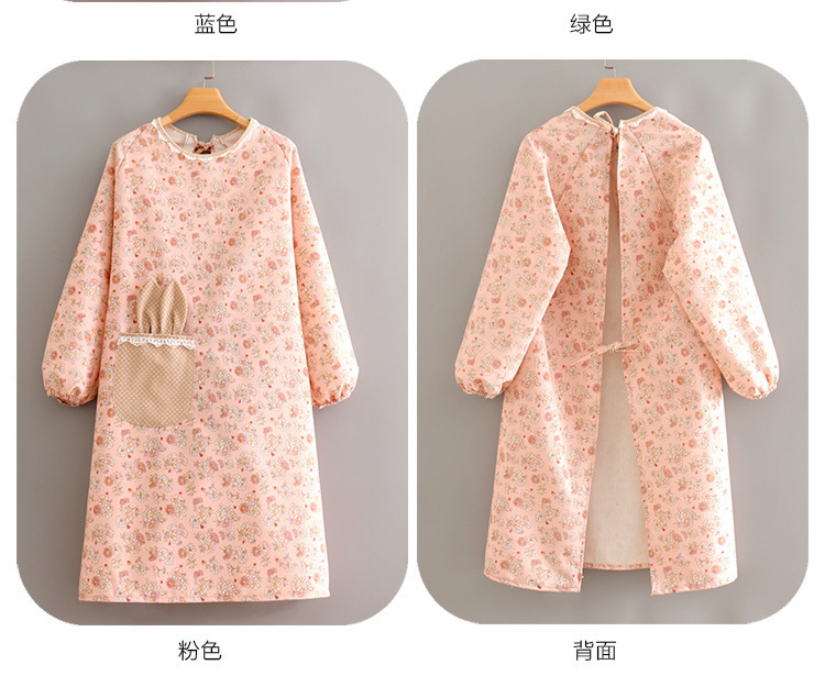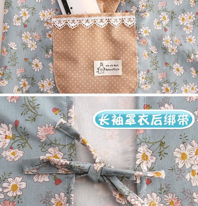 跨境韩版帆布长袖围裙女防污透气家用厨房做饭罩衣餐饮工作服围腰