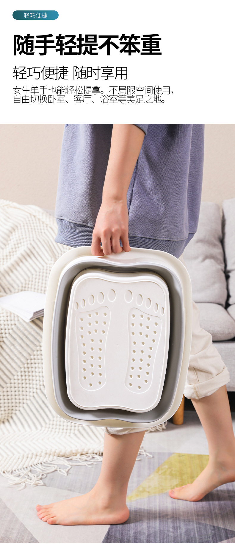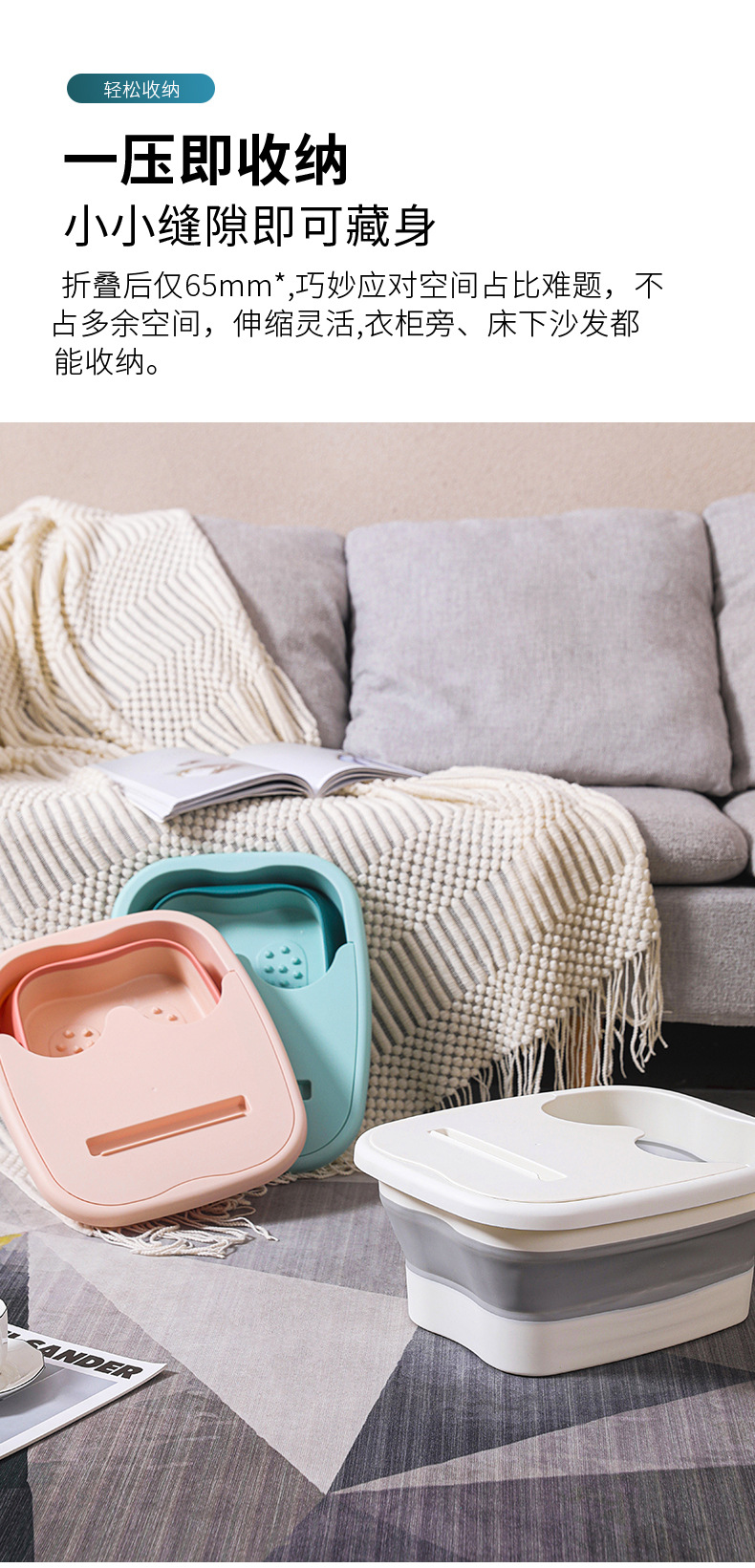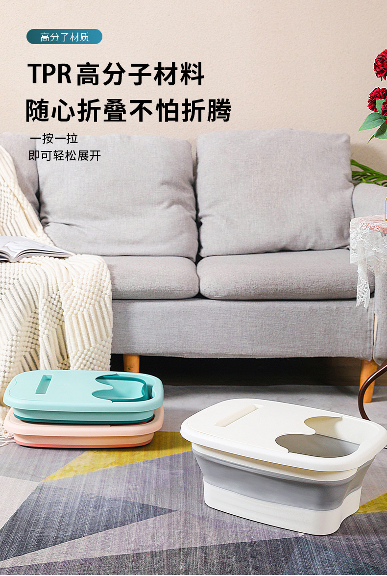 折叠足浴盆家用泡脚桶按摩洗脚盆便携式加厚保温带盖足浴桶