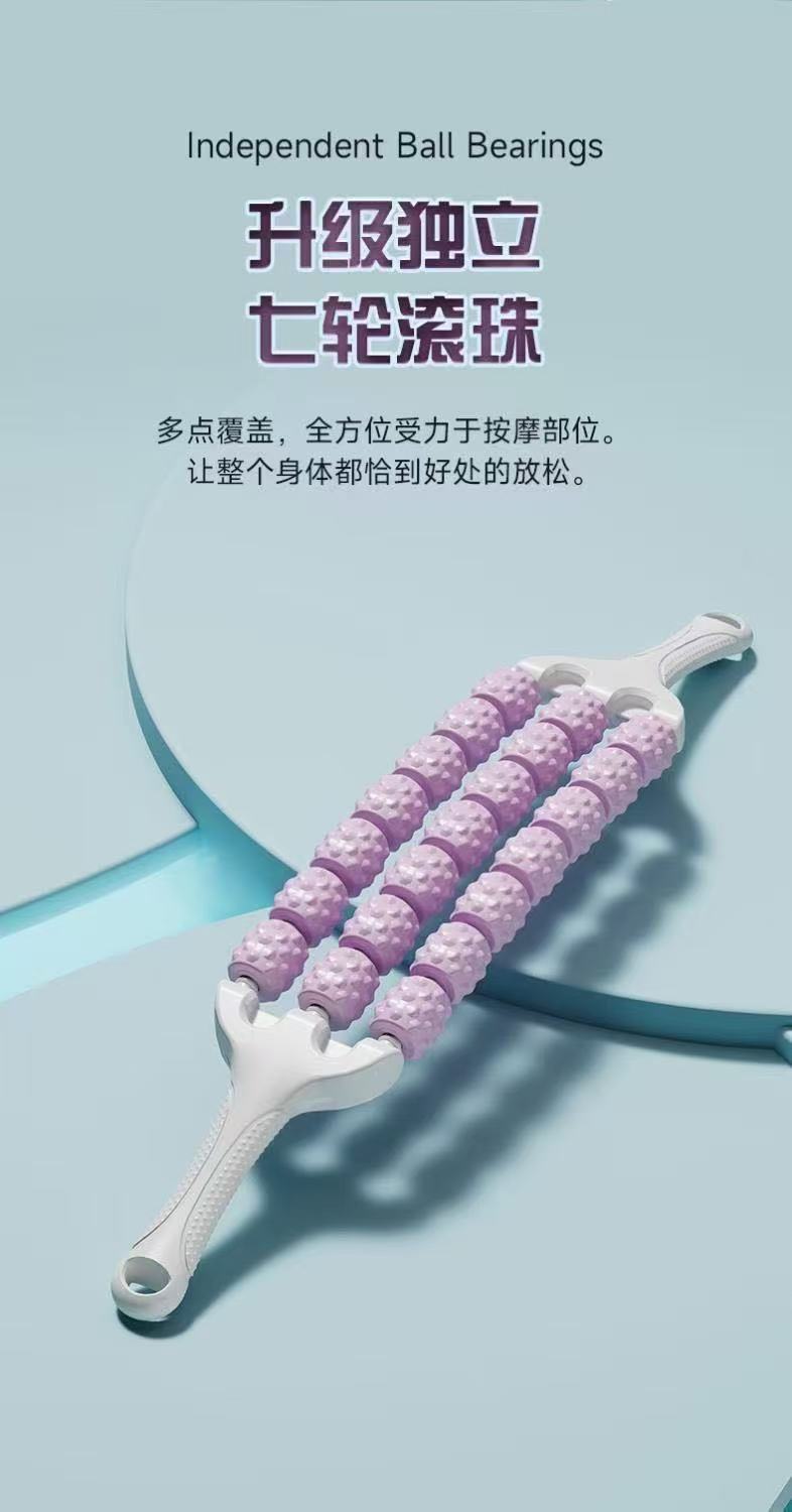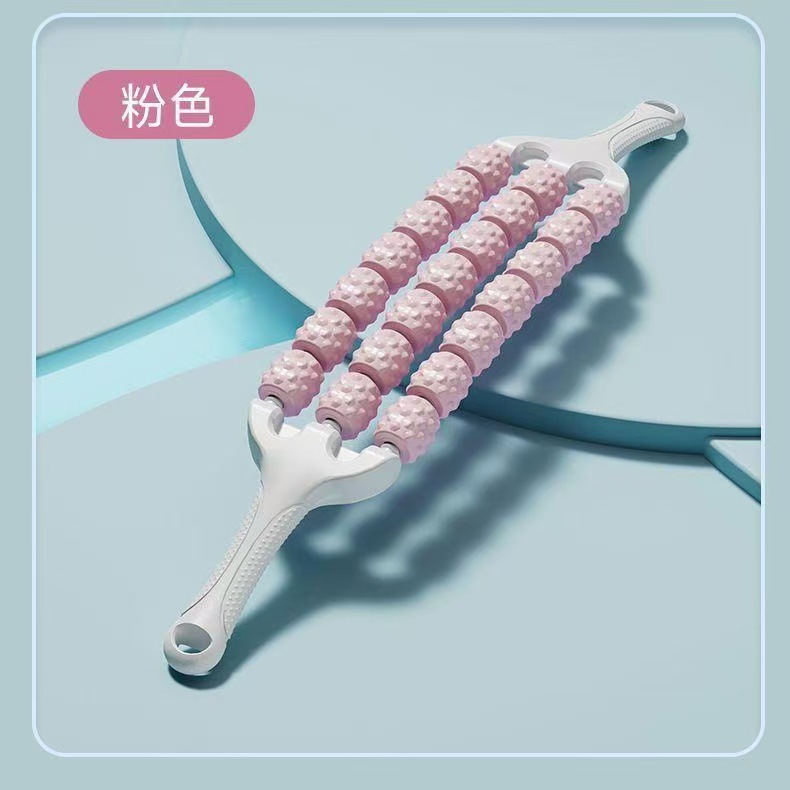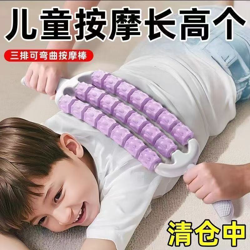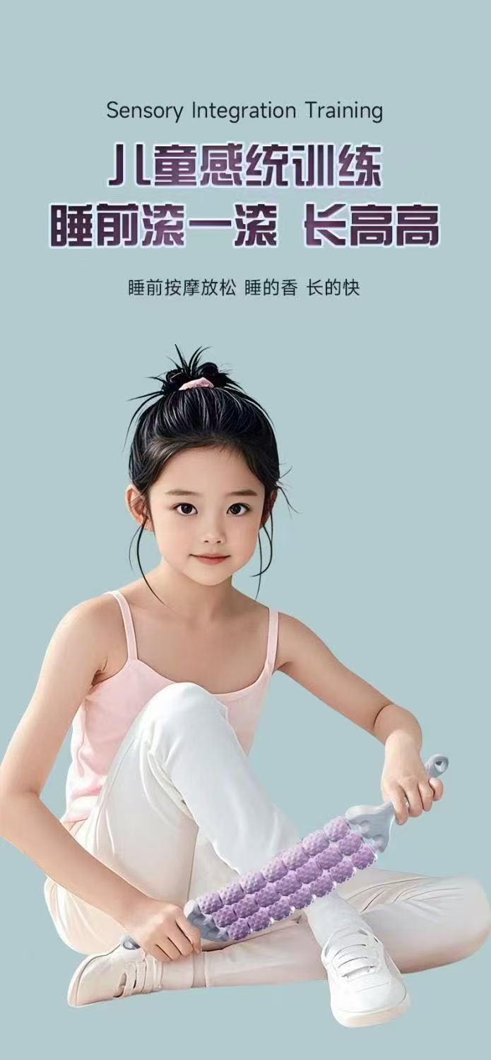 三排可弯曲儿童按摩棒瑜伽狼牙棒长感统高训练肌肉放松滚轮轴腿部