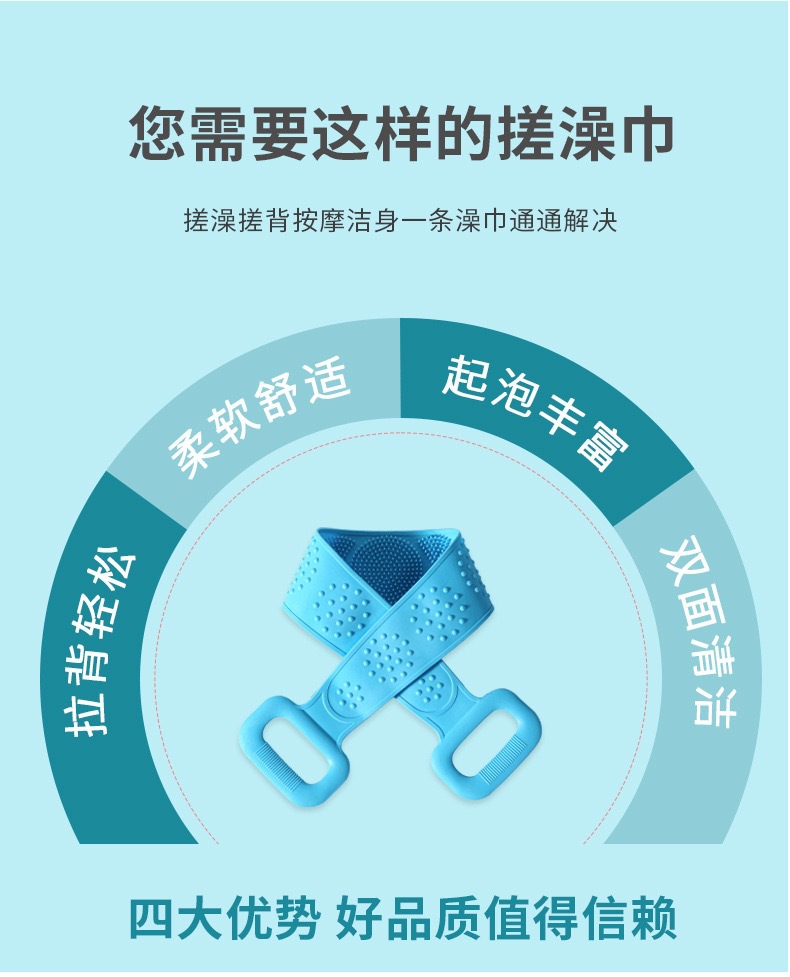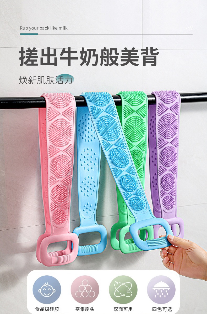 厂家现货代发搓澡巾长条澡巾拉背条搓背搓泥洗澡巾双面硅胶搓澡巾