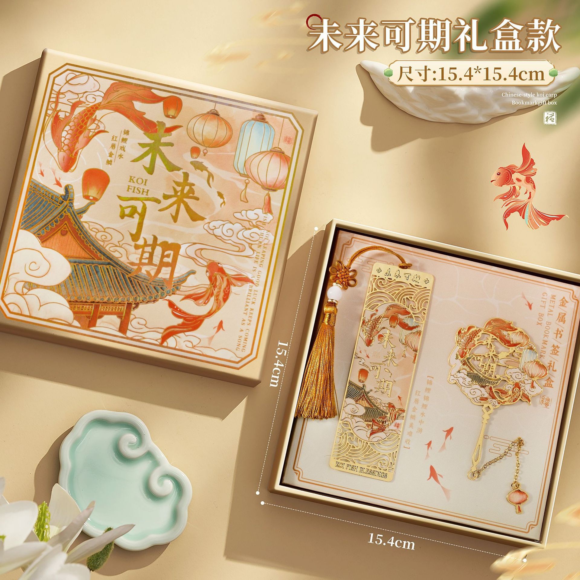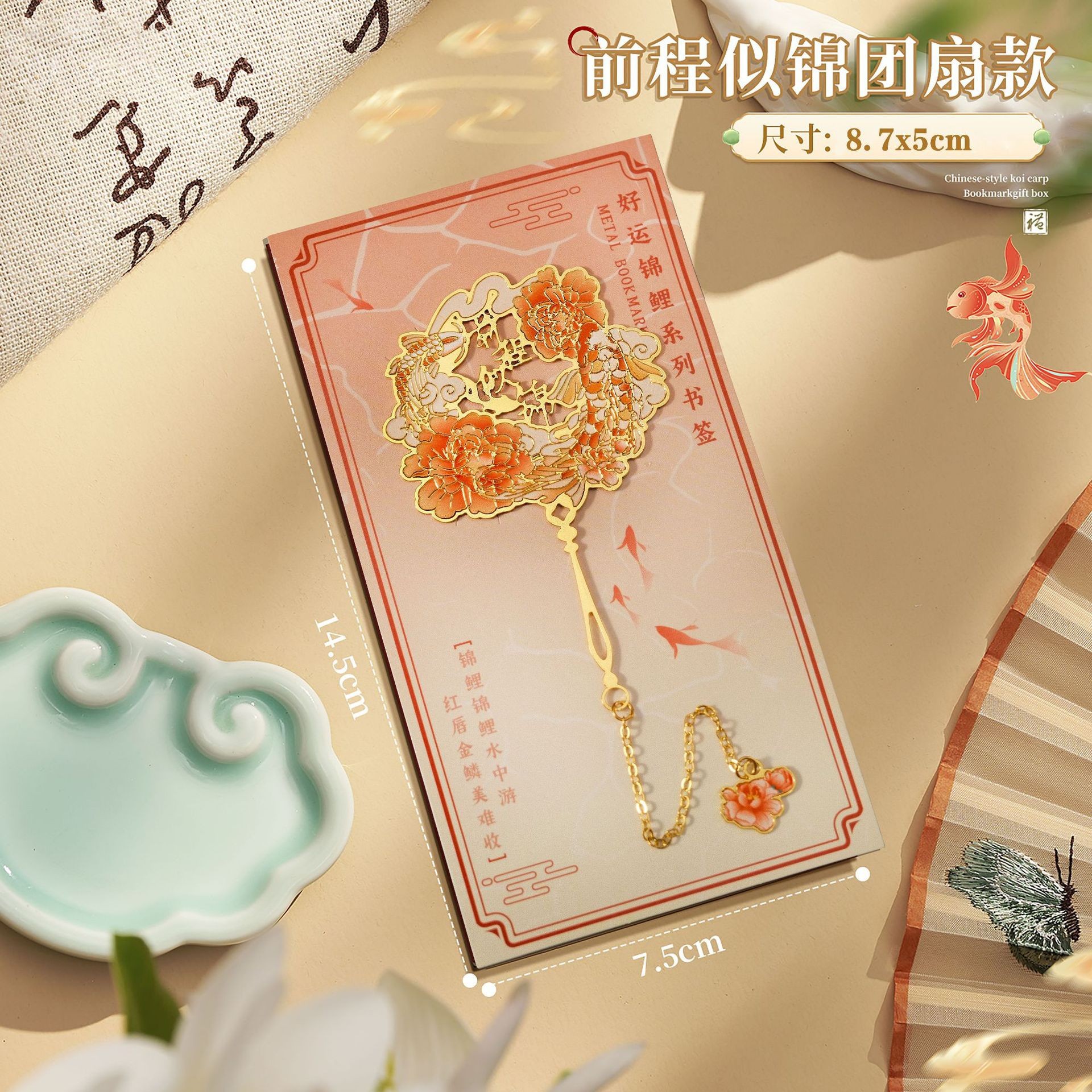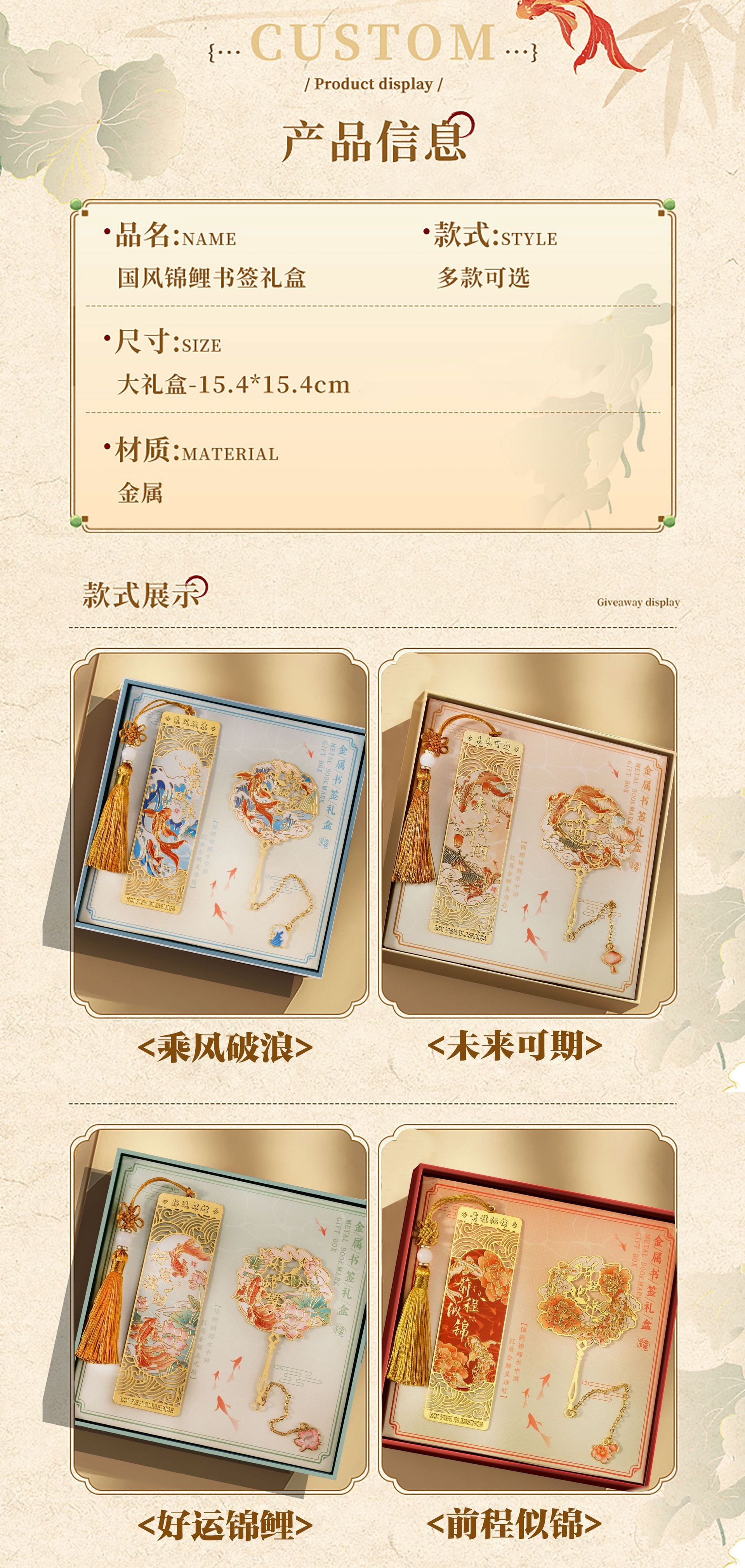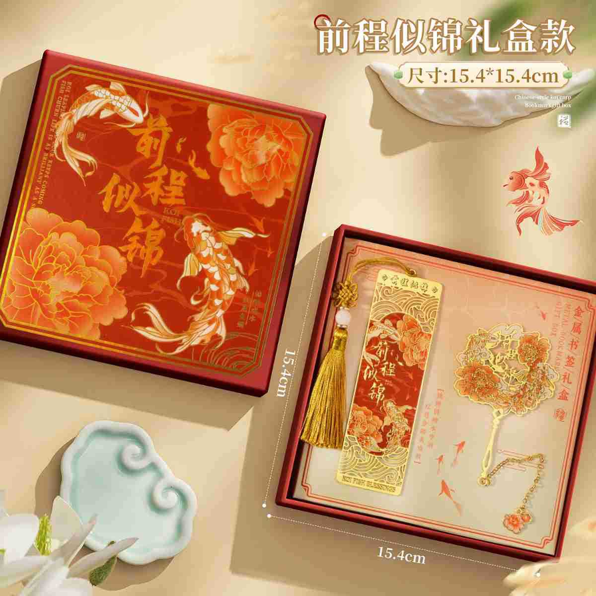 好运锦鲤中国风金属书签故宫文创高颜值奖励学生送老师套装礼盒