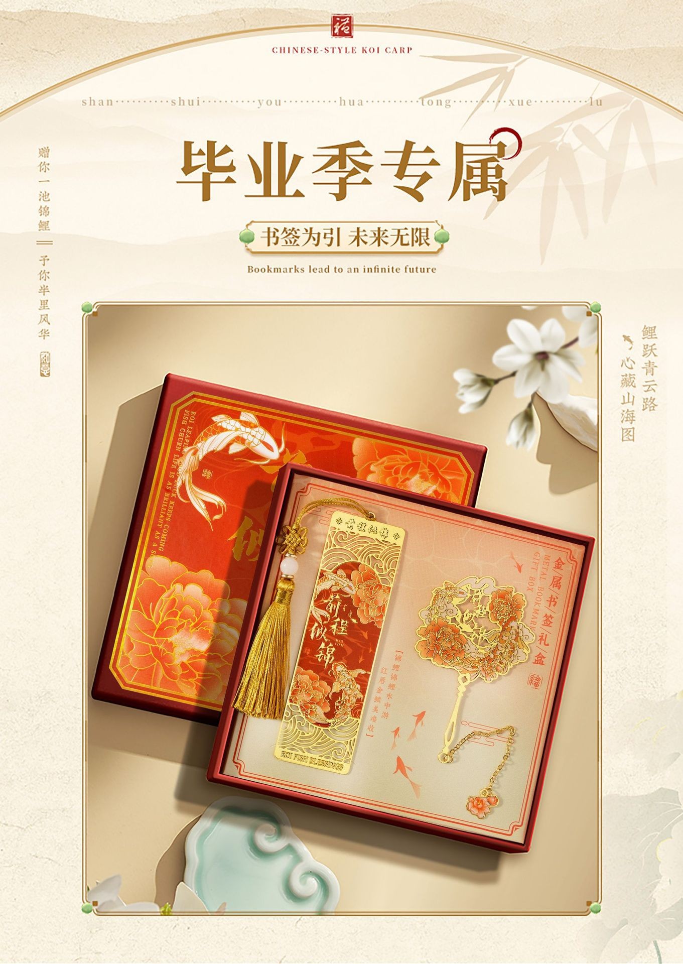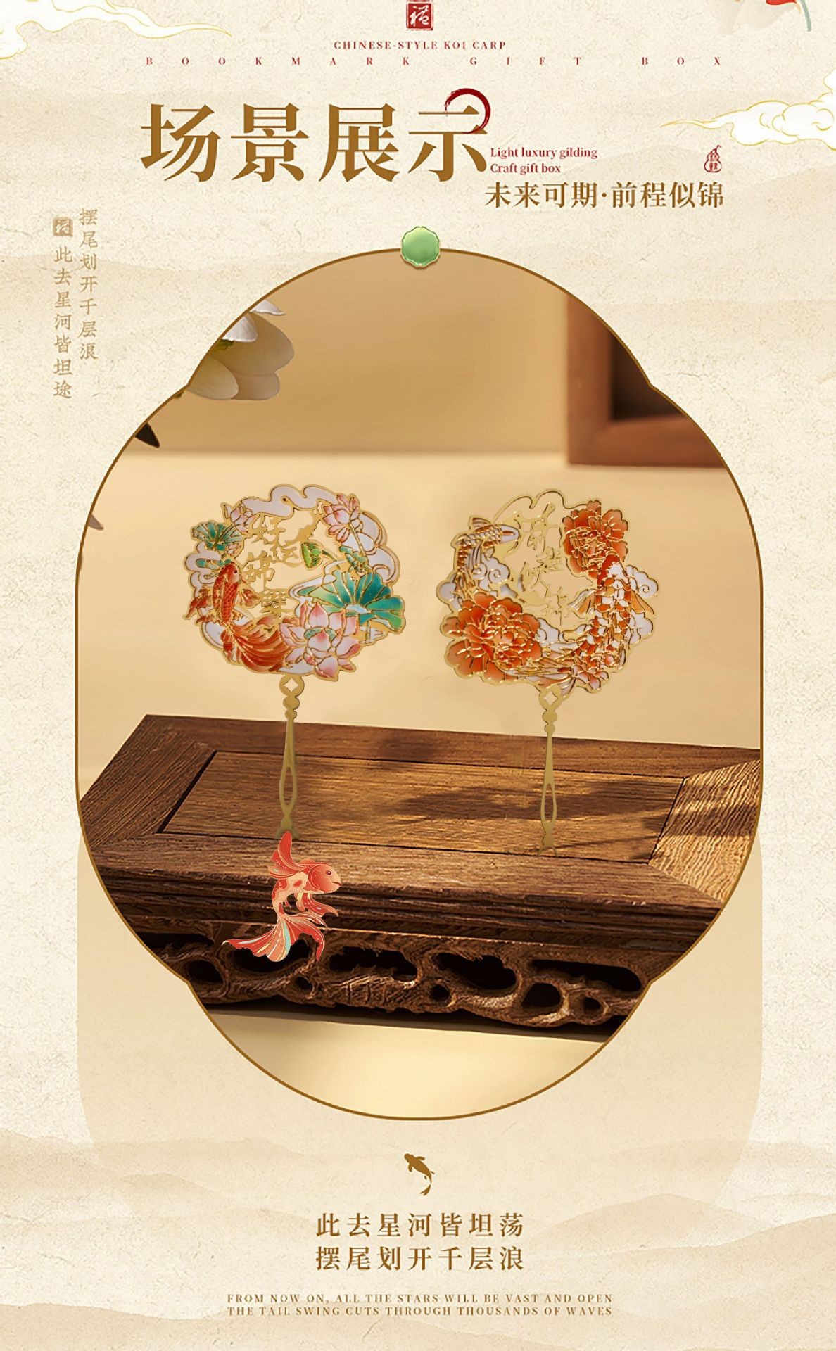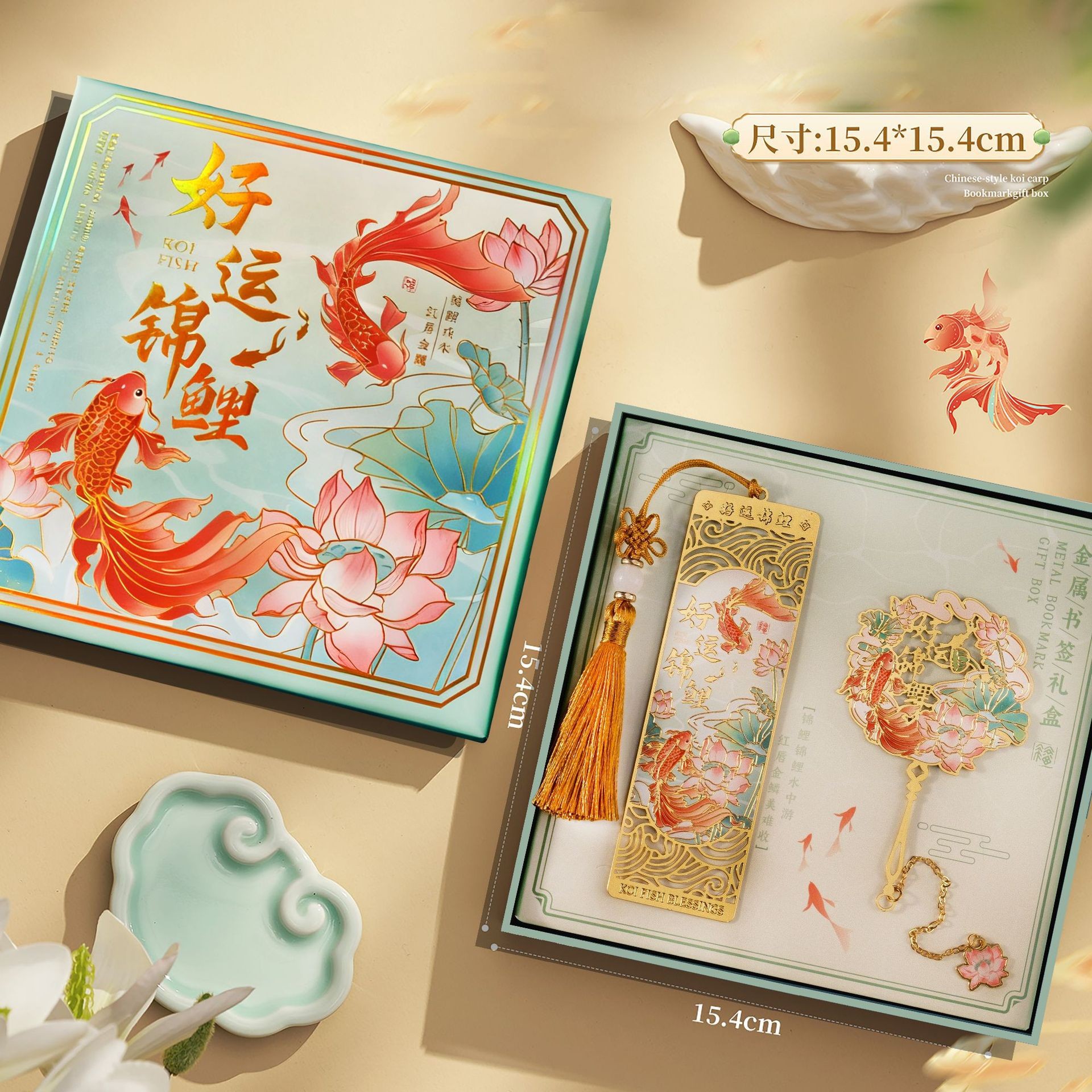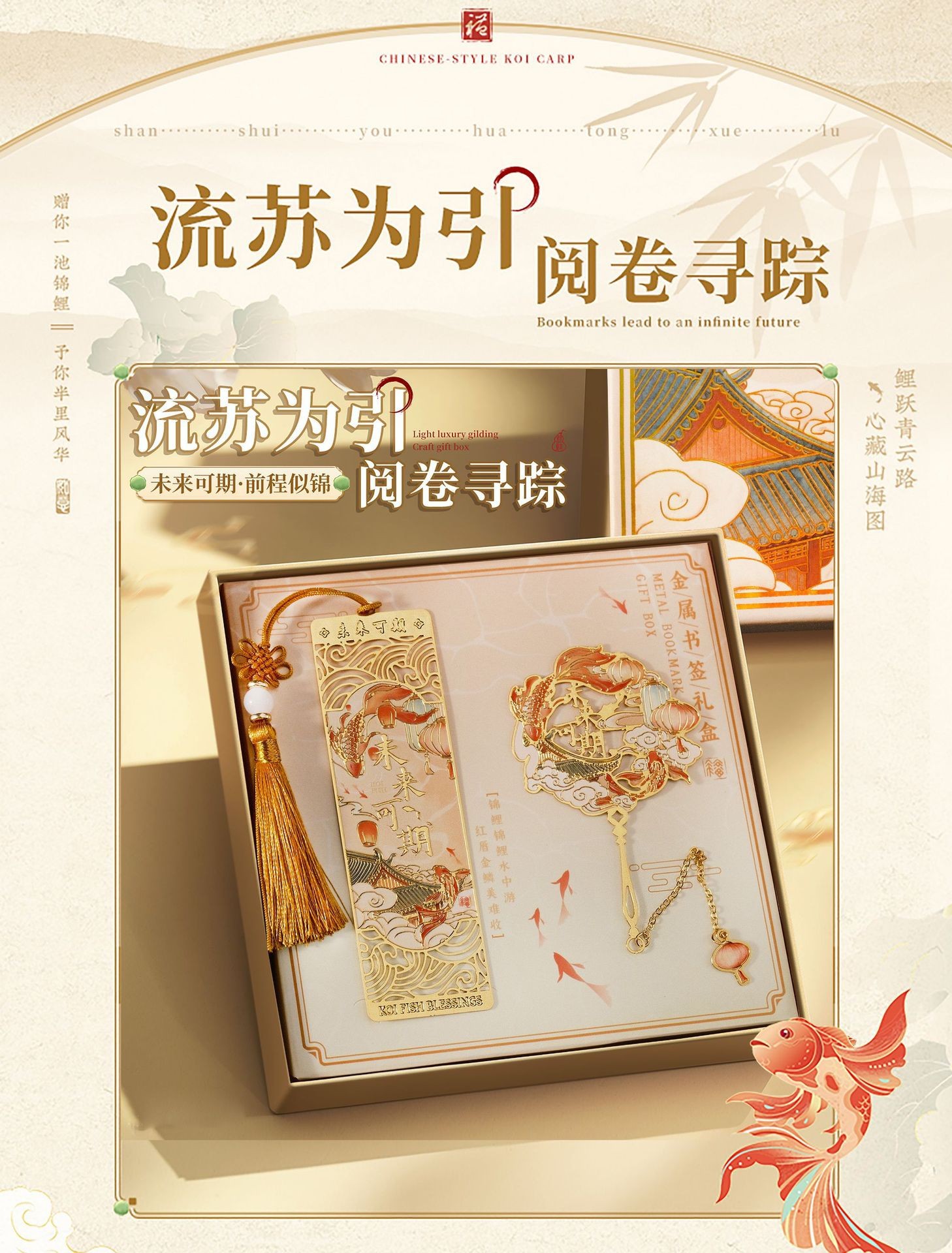 好运锦鲤中国风金属书签故宫文创高颜值奖励学生送老师套装礼盒