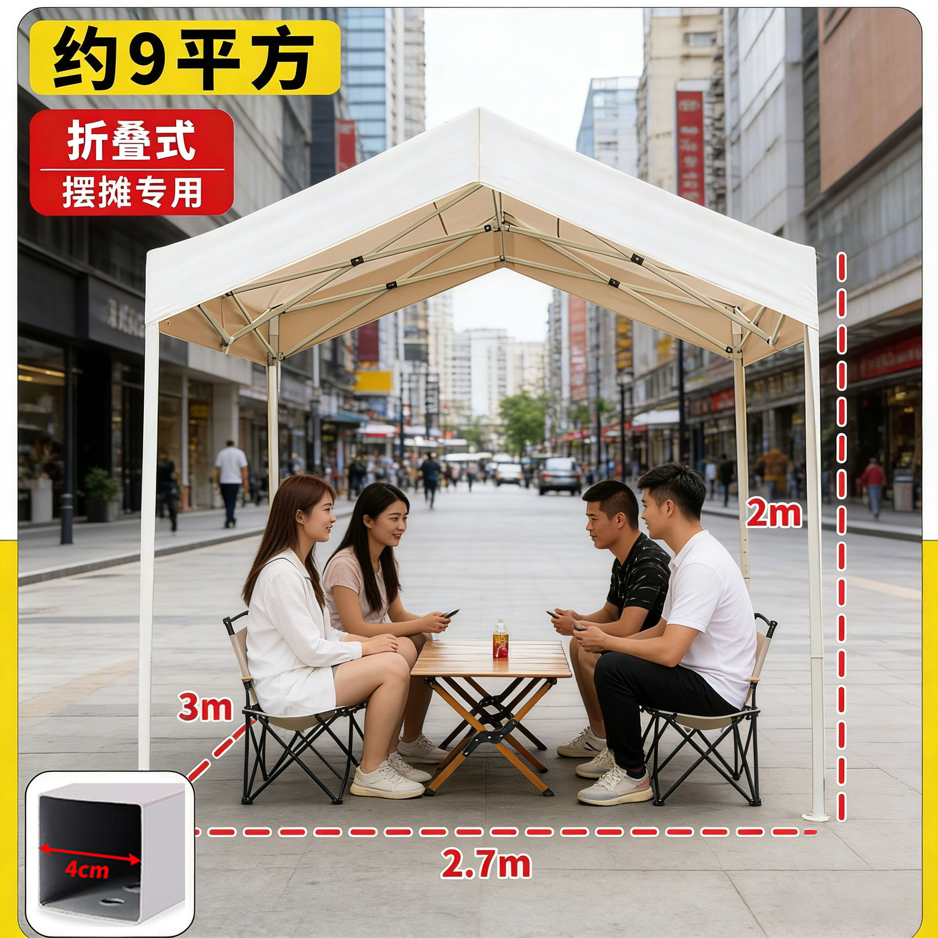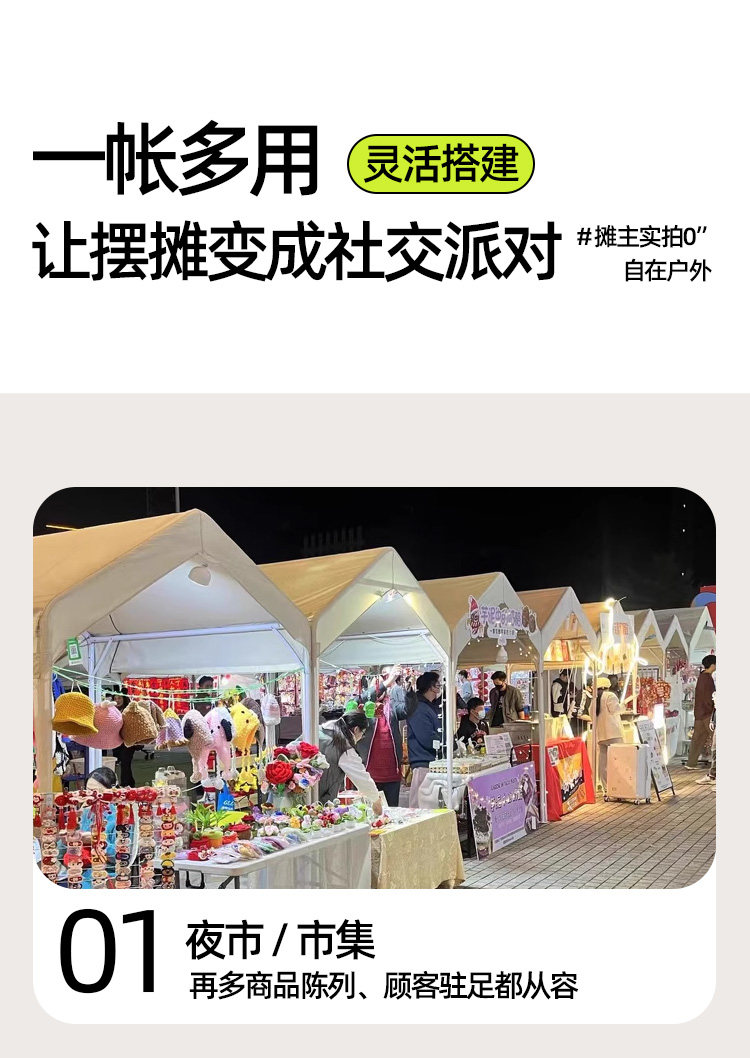网红夜市四脚遮阳棚户外露营3x3帐篷集市摆摊商用摊位防雨遮雨棚