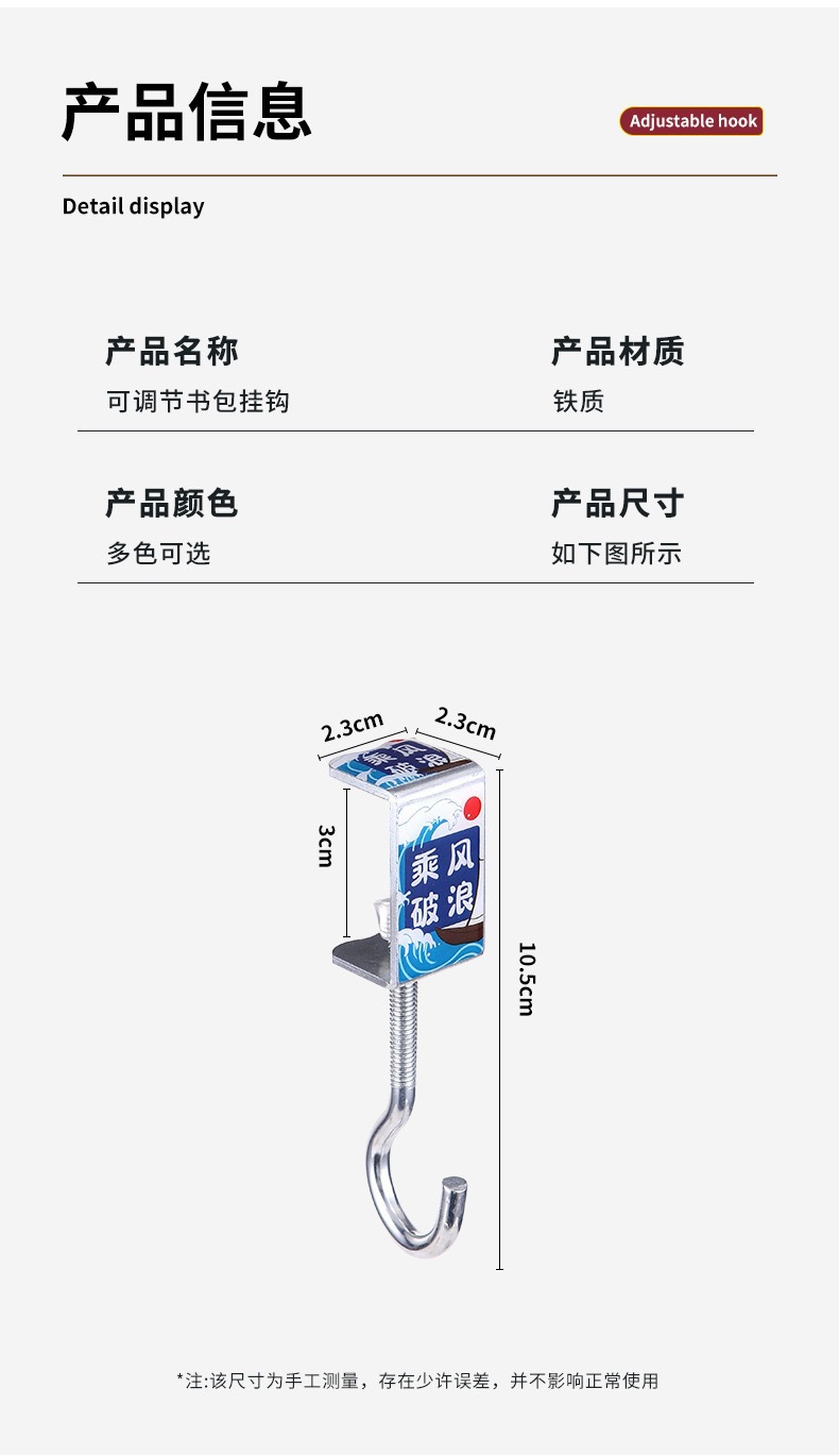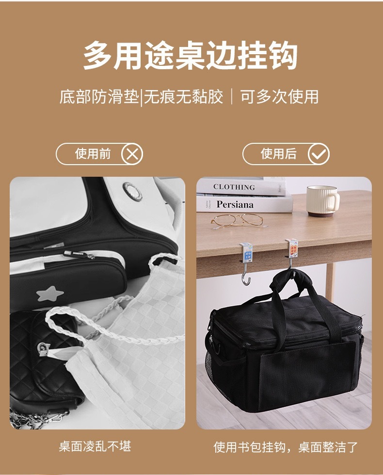 多功能书包挂钩可移动强承重免打孔课桌侧边置物架学生挂包挂钩