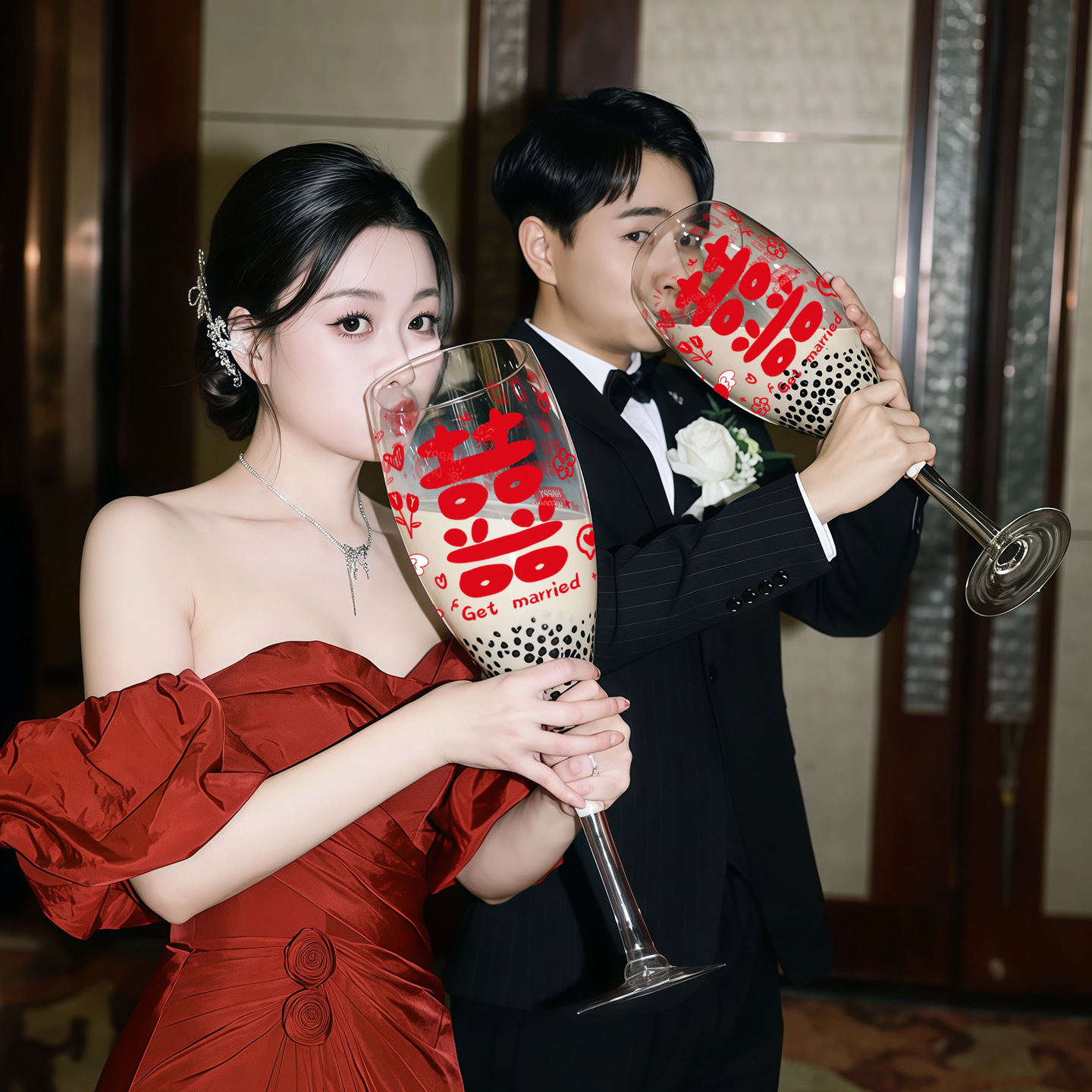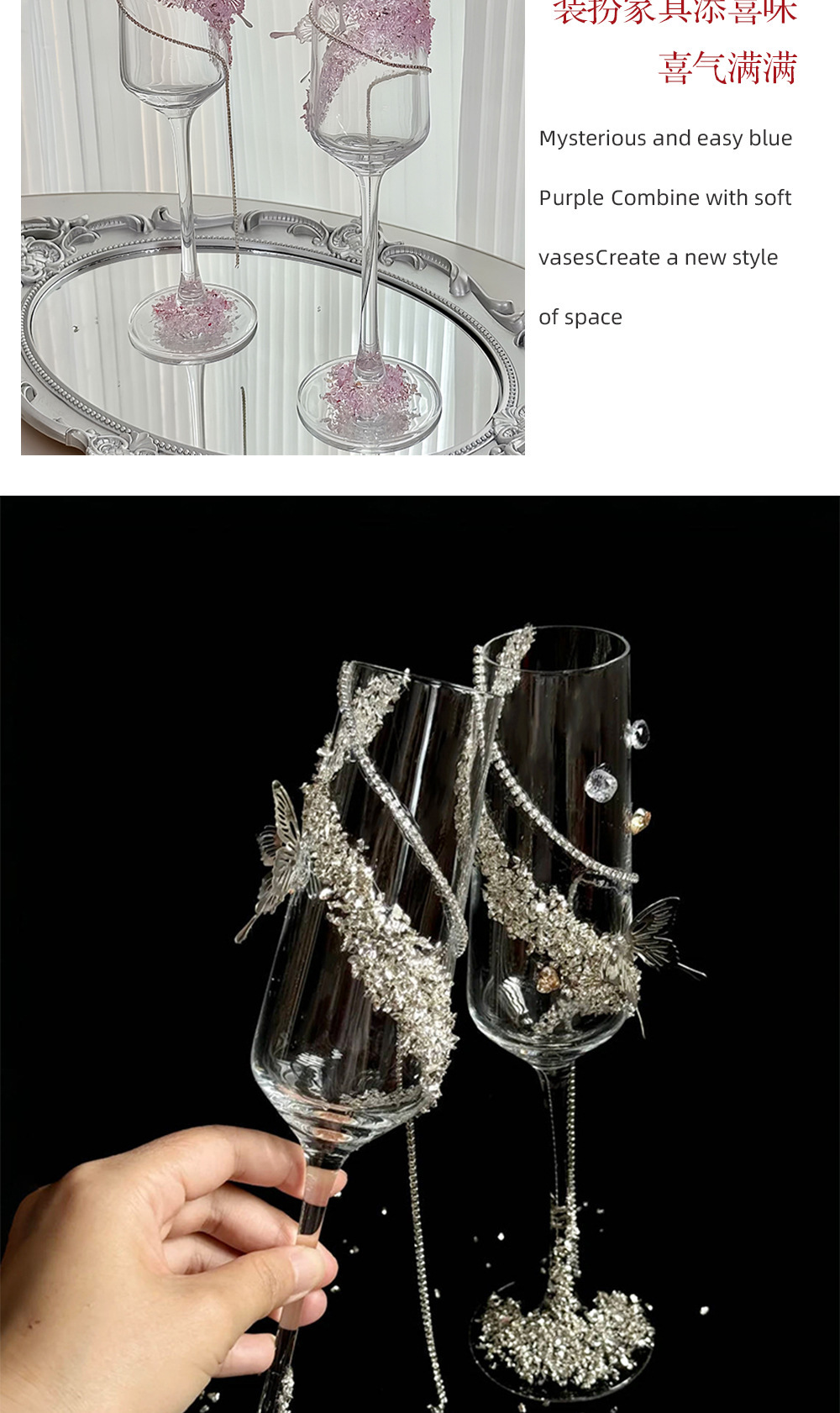 碎钻结婚敬酒杯diy一对高脚杯材料包高级手工新娘礼物结婚礼物