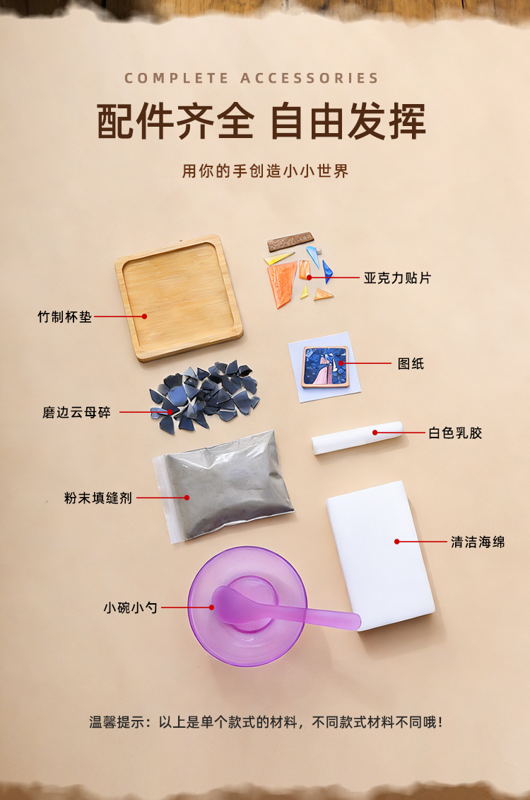 马赛克杯垫diy材料包自制拼贴艺术玩具手工课材料包文创手工diy
