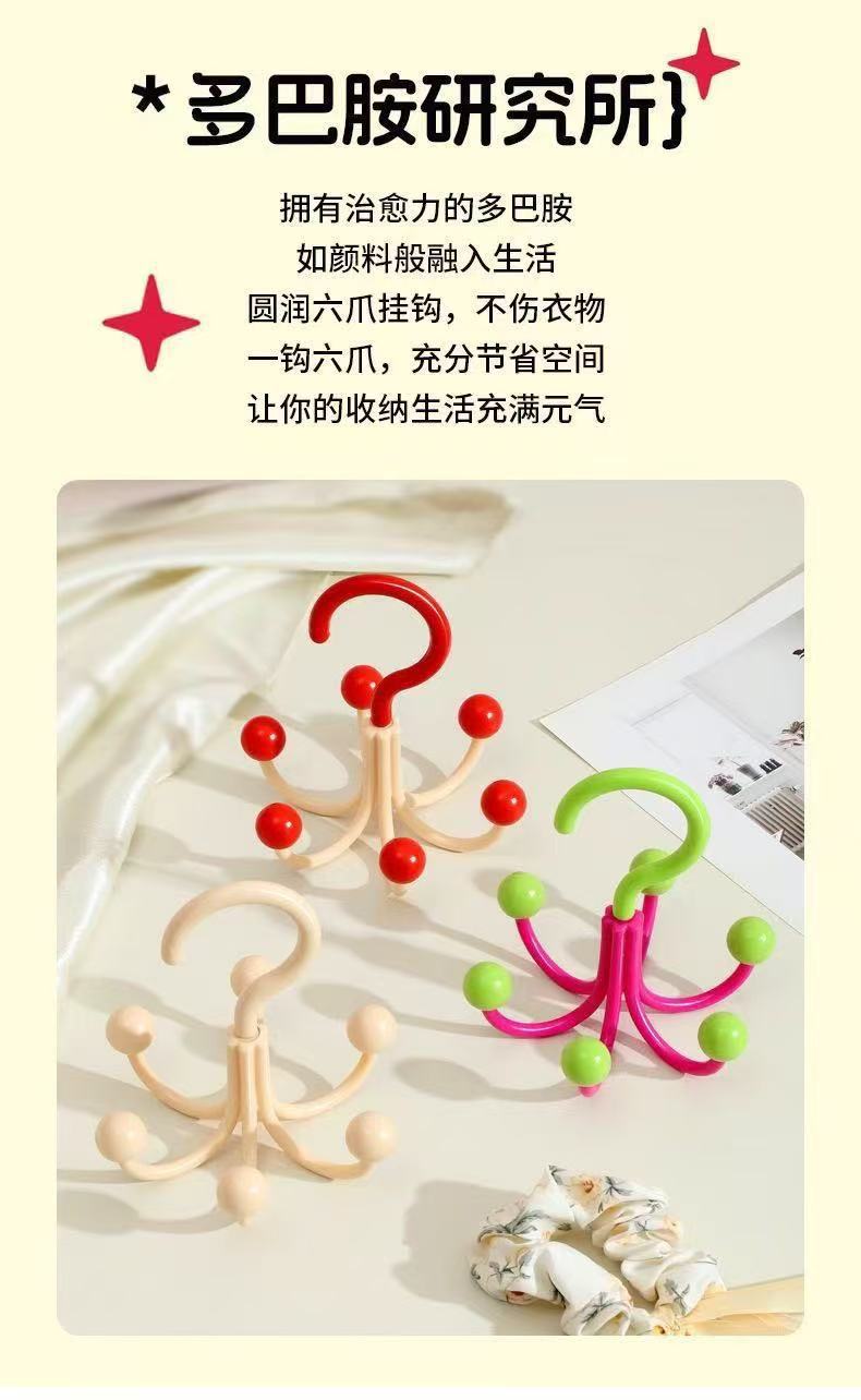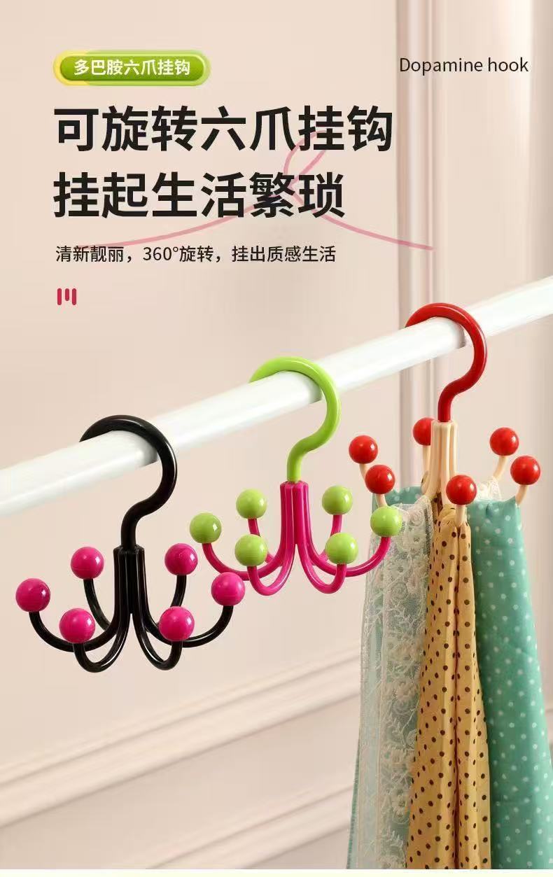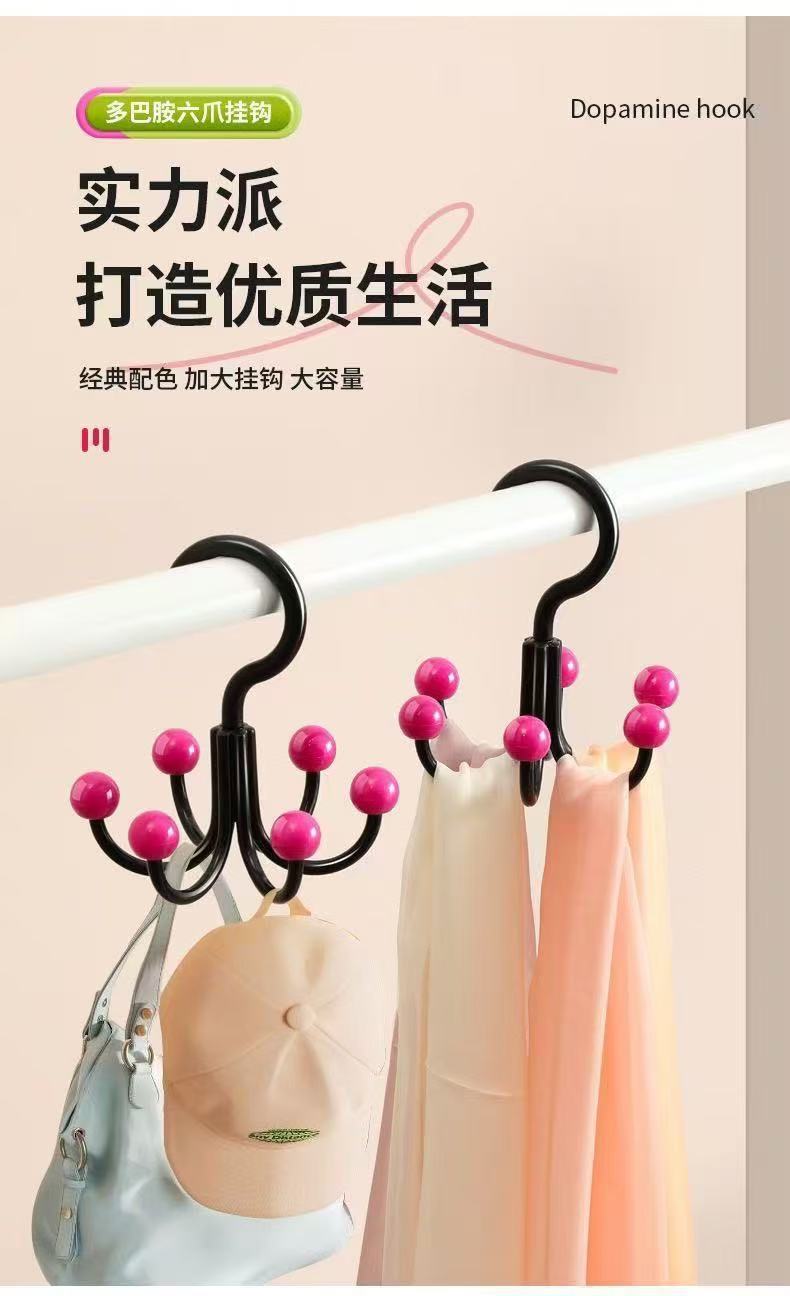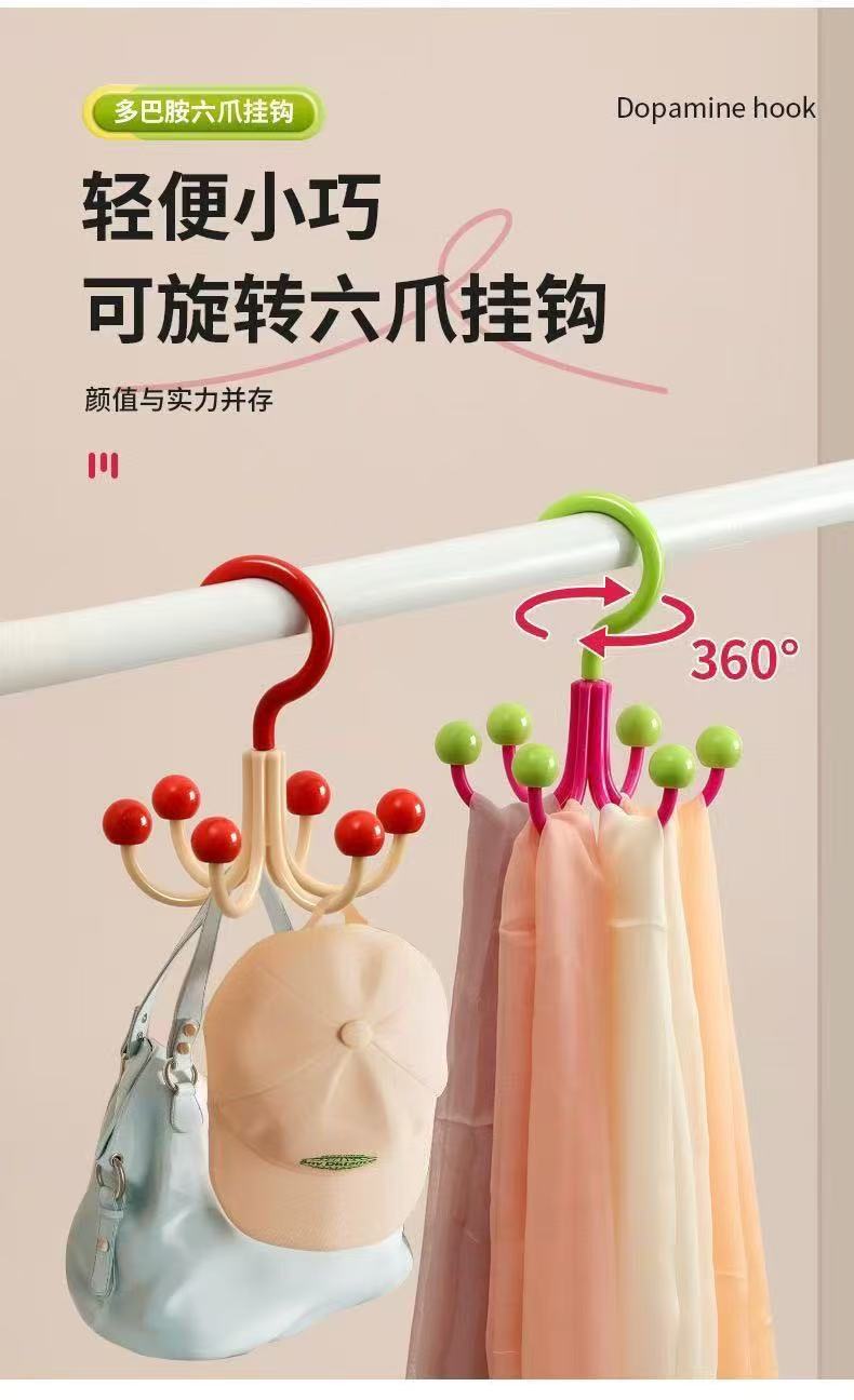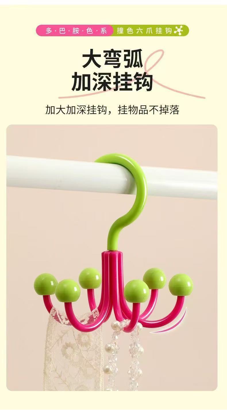 家用多巴胺旋转六爪挂钩挂帽子收纳神器门后衣柜包包衣物收纳挂钩