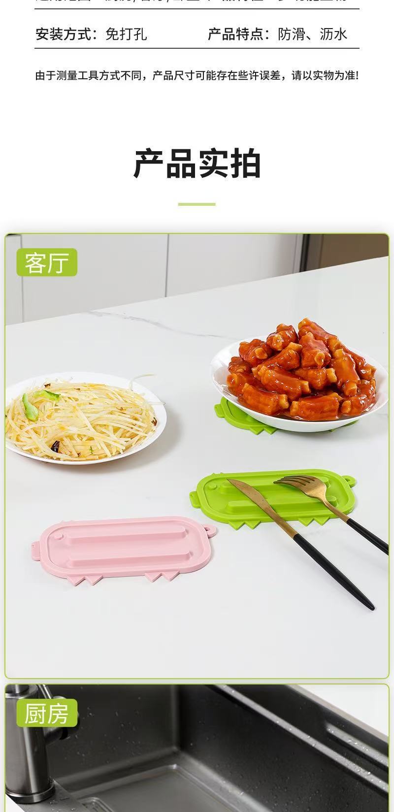 家用厨房灶台窄边锅盖防滑垫防油防污锅盖放置垫多功能台面沥水垫