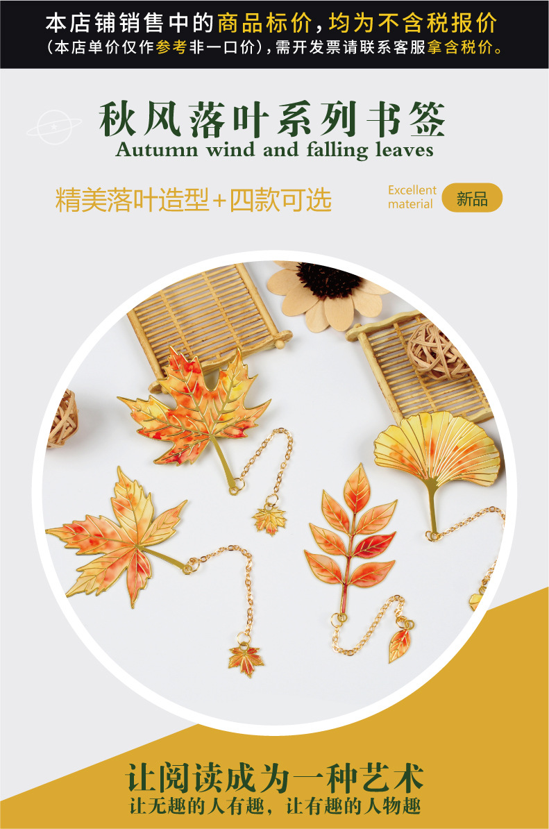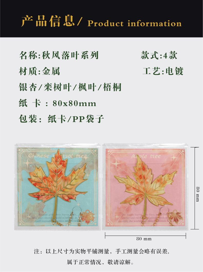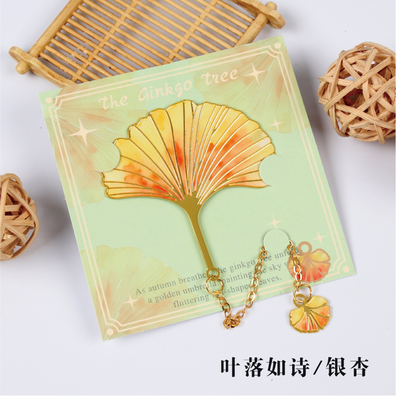 树叶金属书签复古银杏叶金属叶子书签 奖励学生精美标本小众礼物