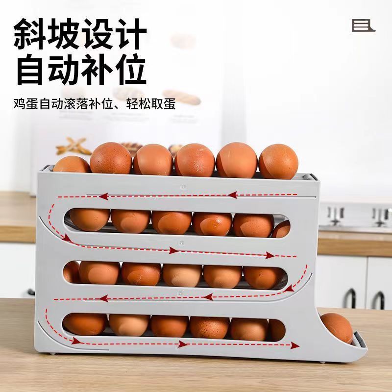 冰箱收纳家用放鸡蛋神器滚动滑梯式鸡蛋收纳盒食品级冰箱用侧门鸡