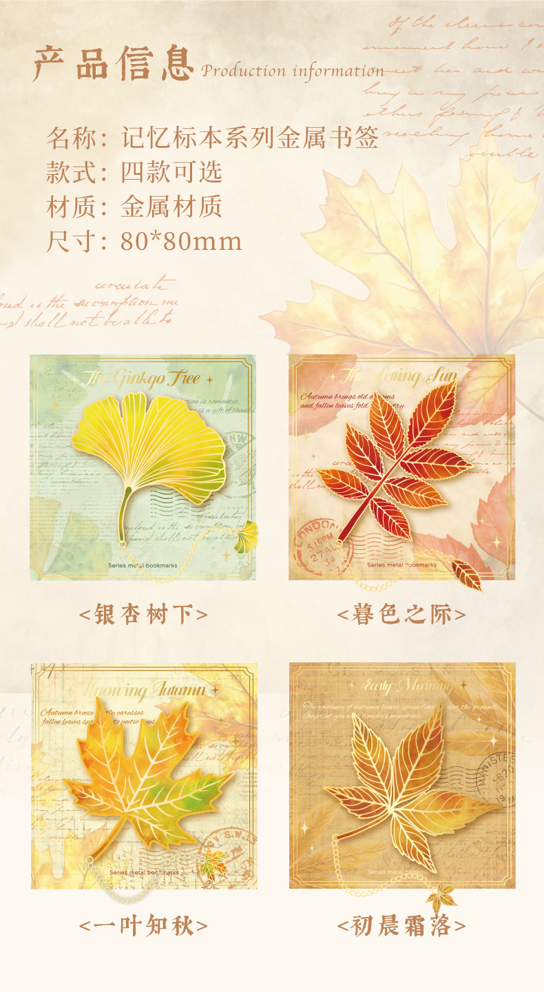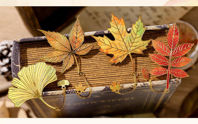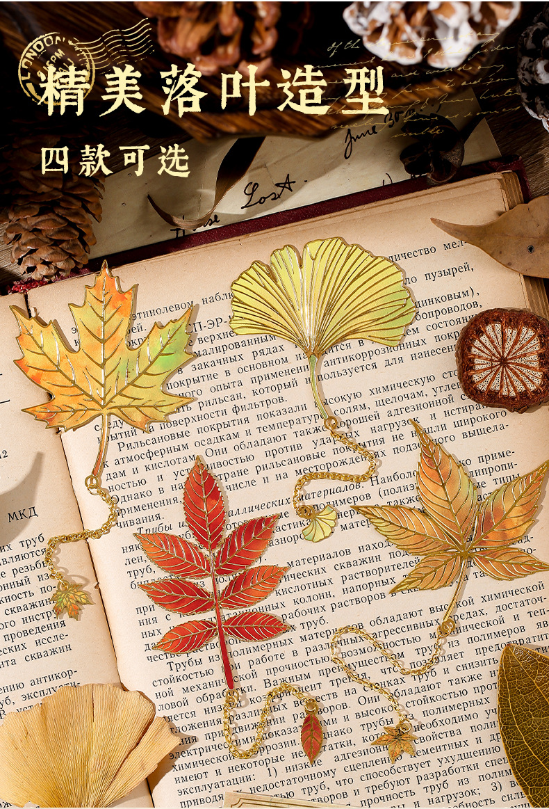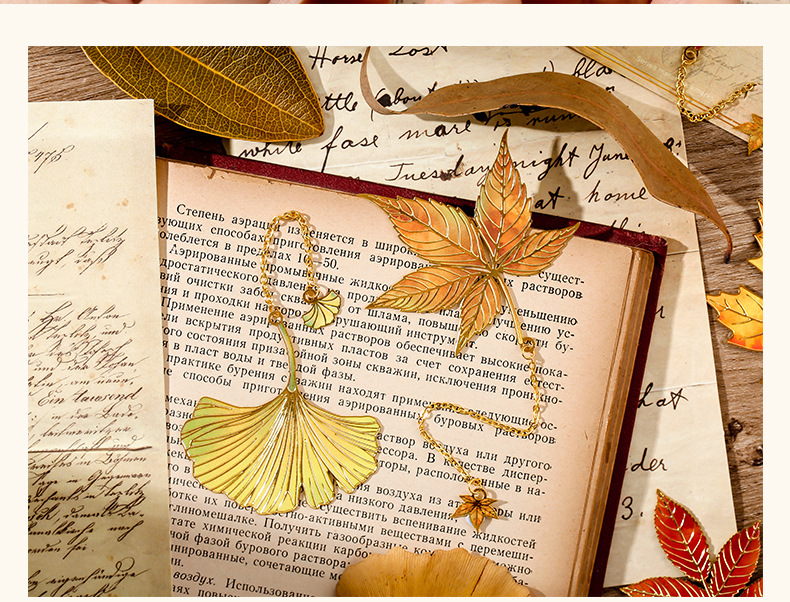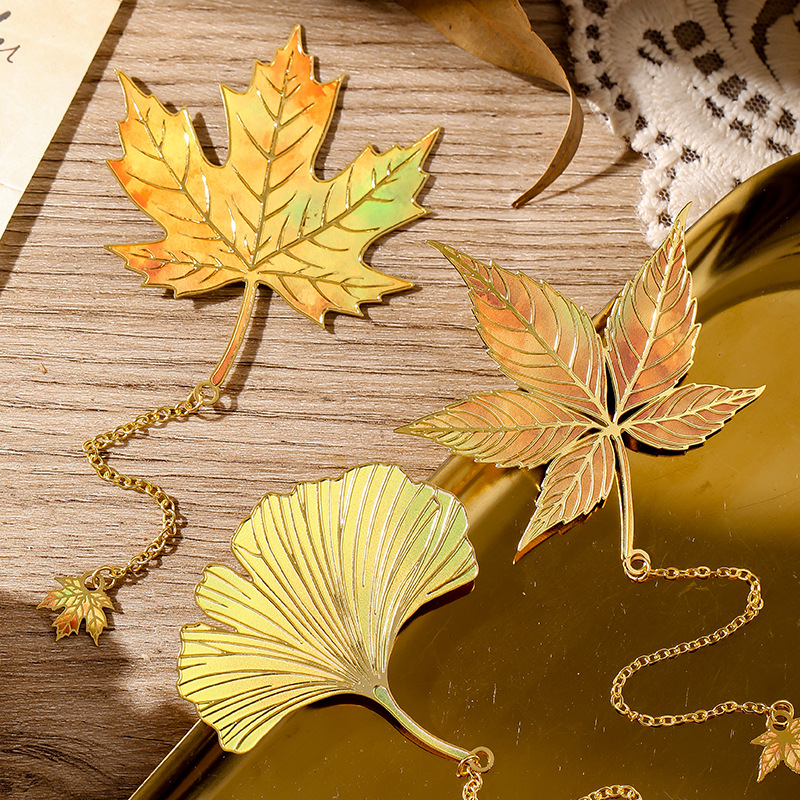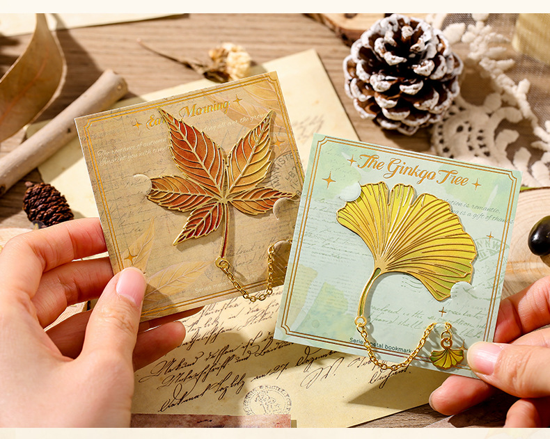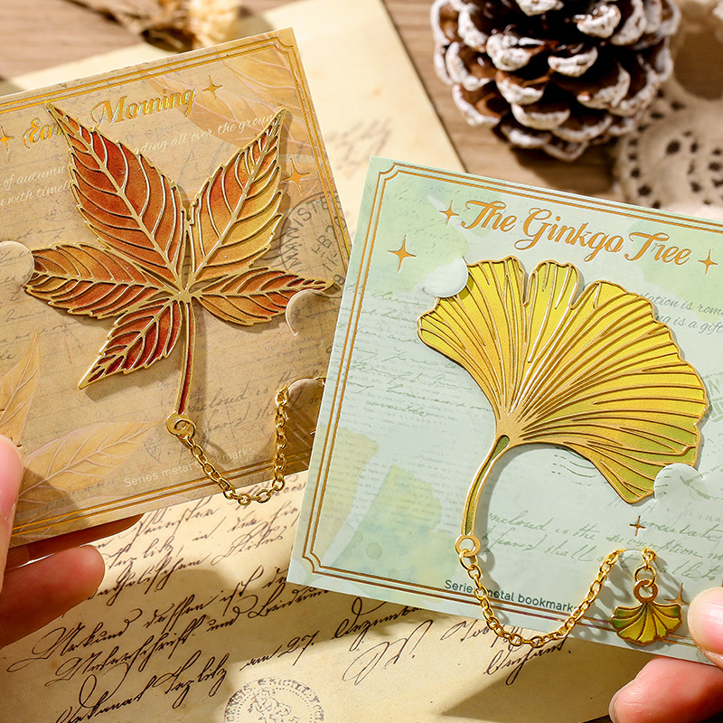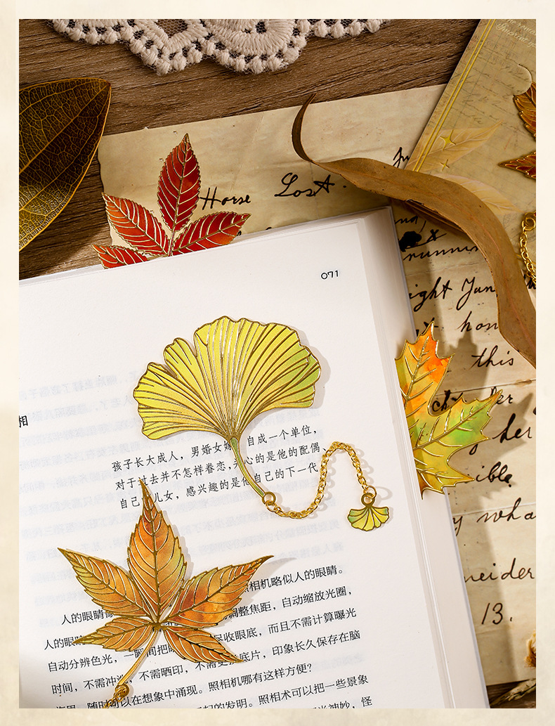 古典中国树叶书签复古感银杏叶金属叶脉书签奖励学生精美小众礼物