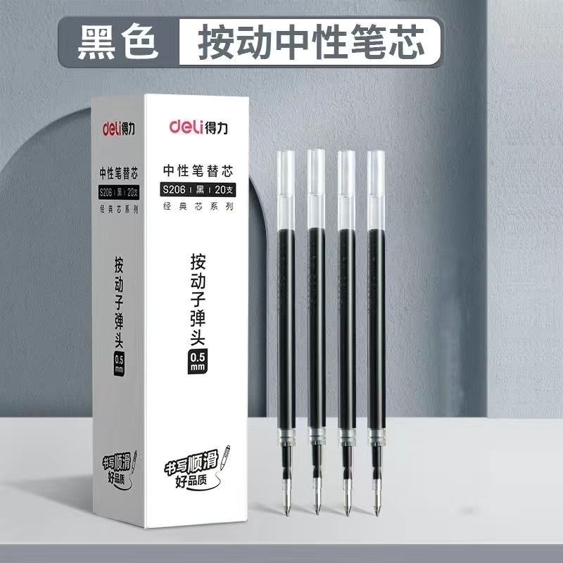 得力S01按动笔学生专用ins简约黑色0.5黑笔红笔蓝色圆珠笔签字笔