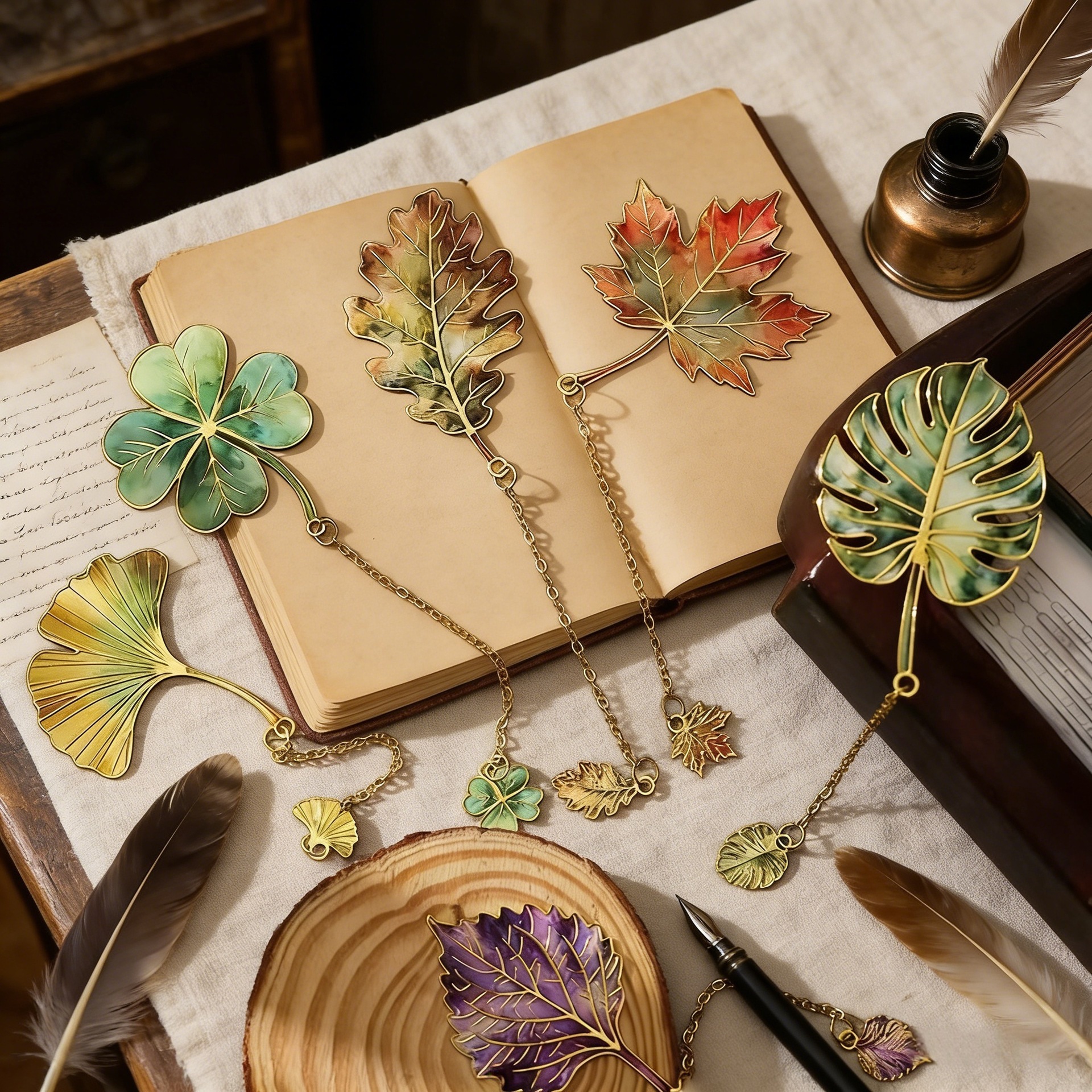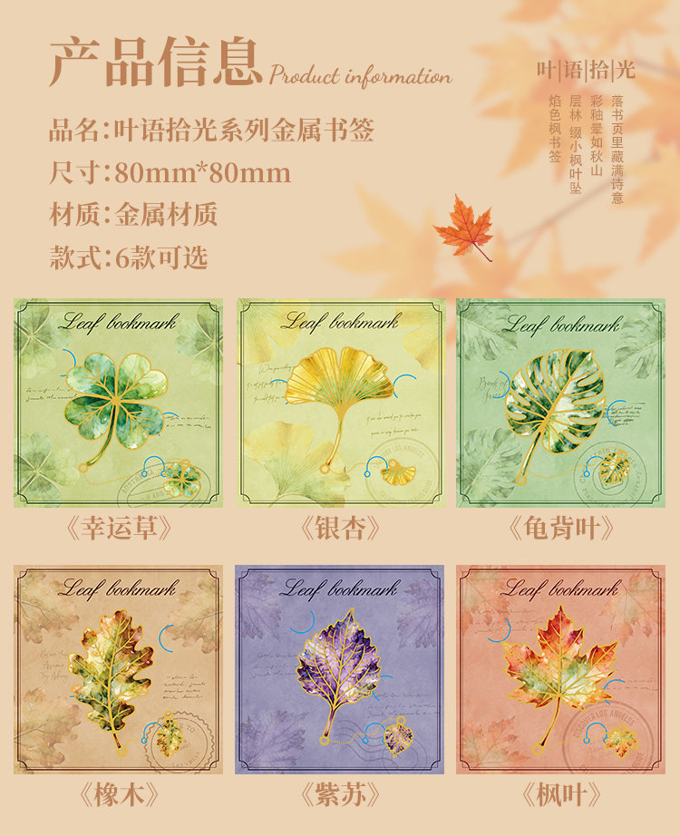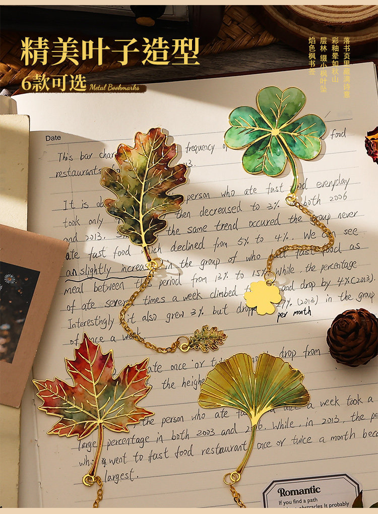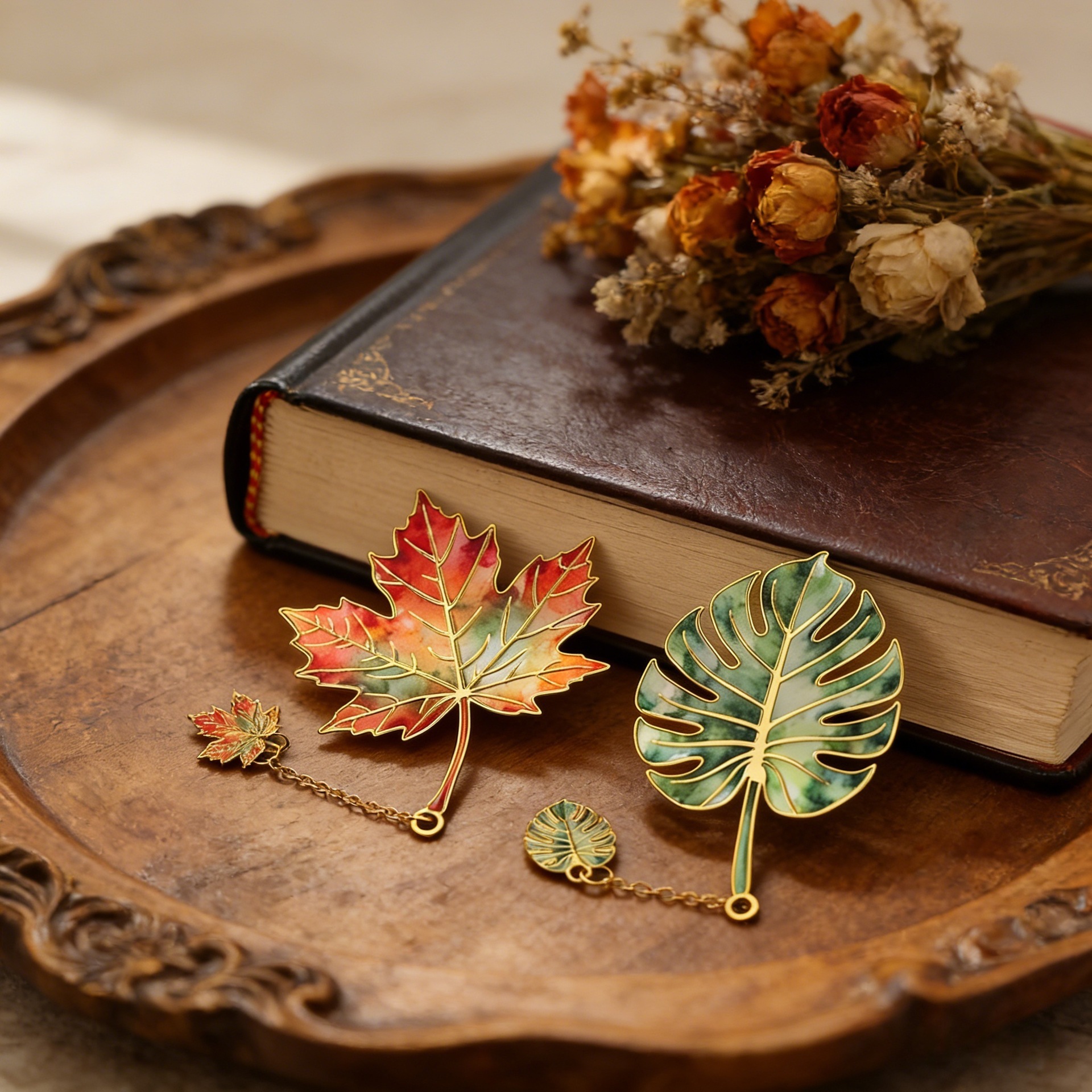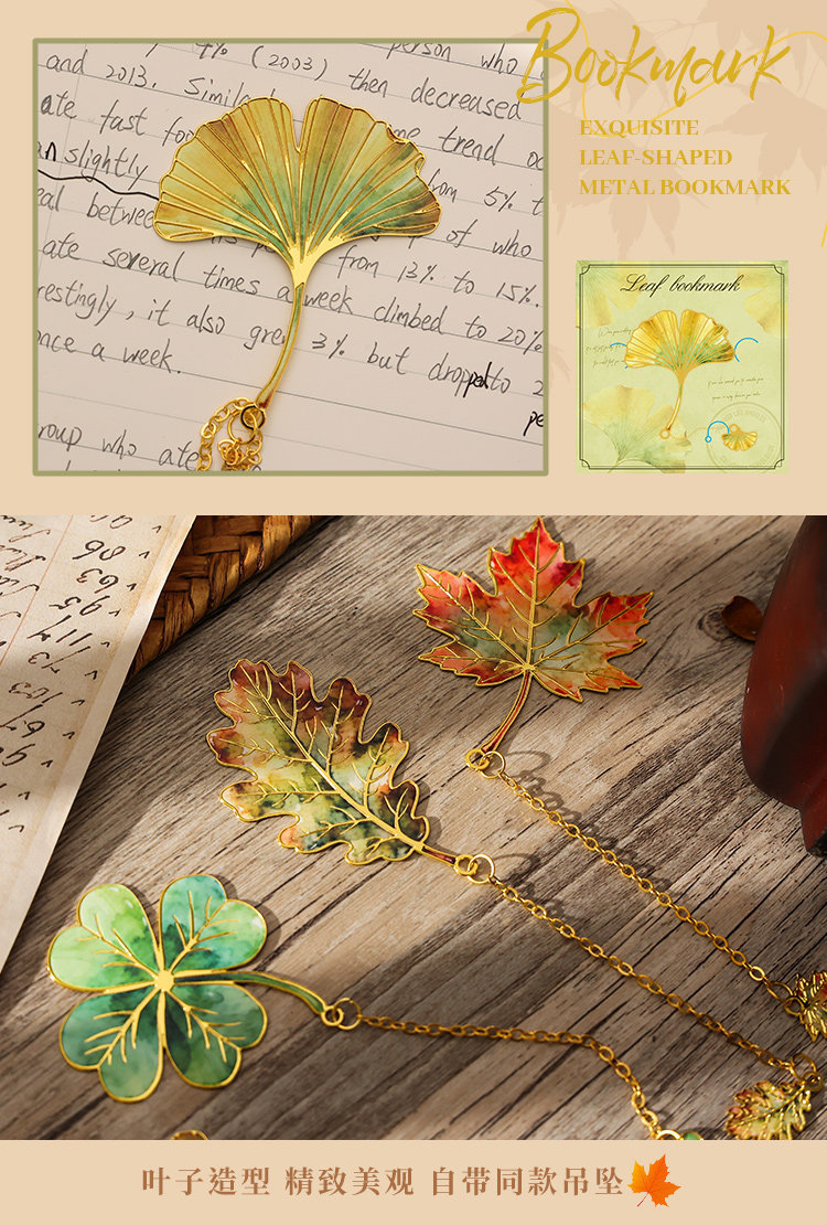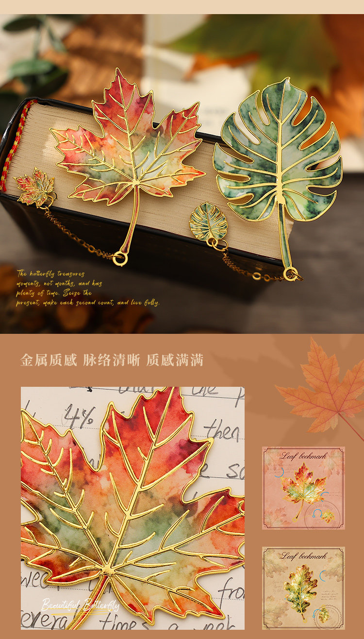 节日礼物树叶书签秋天复古金属叶脉书签学生奖励礼物文创纪念品