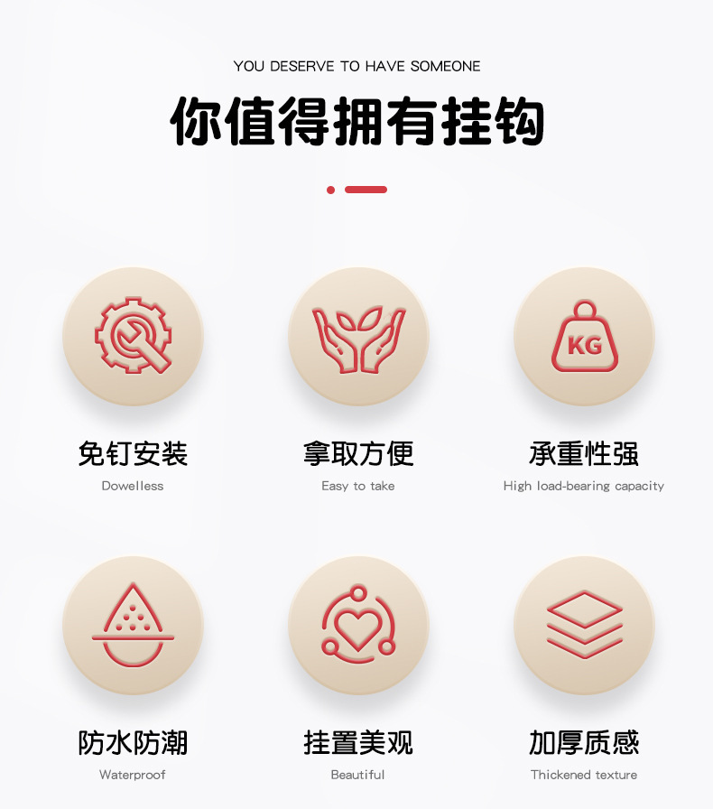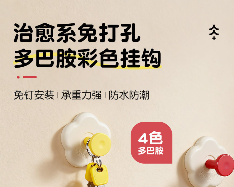 多巴胺无痕挂钩免打孔强力承重玄关墙壁门后钥匙书包帽子收纳粘钩
