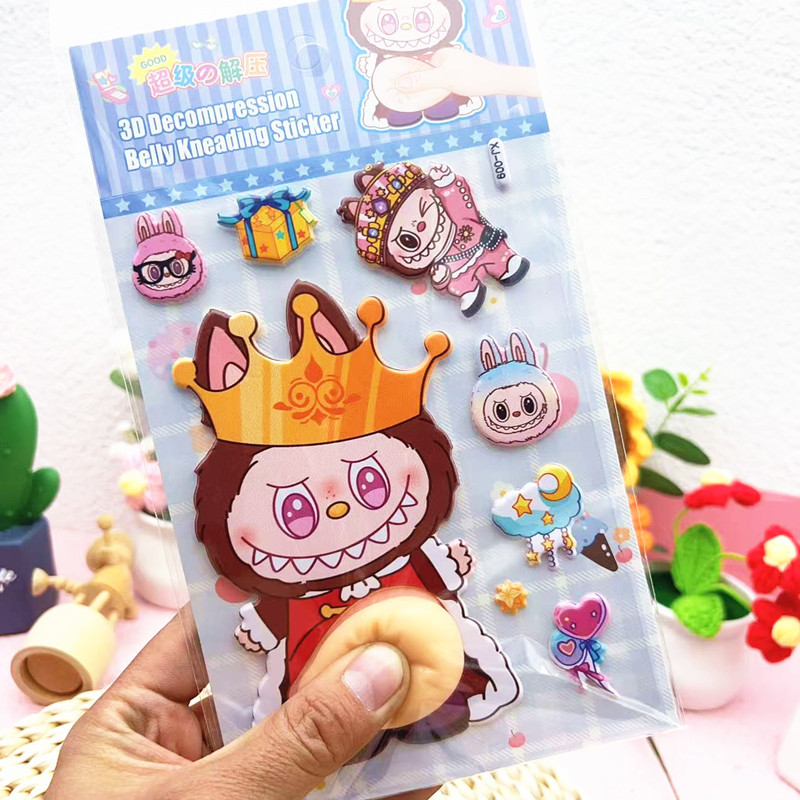 跨境儿童卡通软萌肚子捏捏乐解压贴纸兔子动物熊猫芙蓉皮立体贴