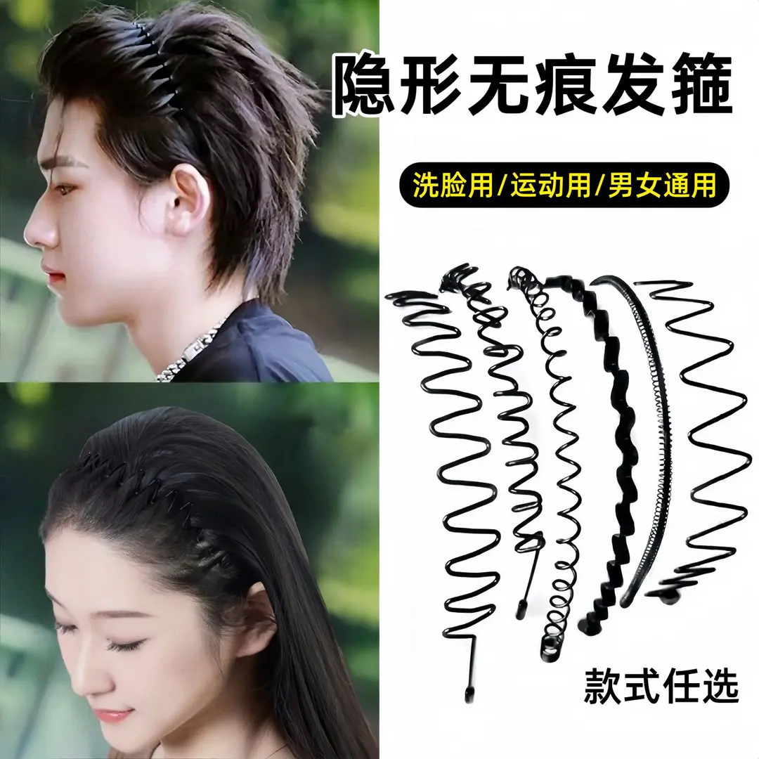 黑色波浪运动发箍男压发发箍男生发捆防滑洗脸不勒头男生背头发卡