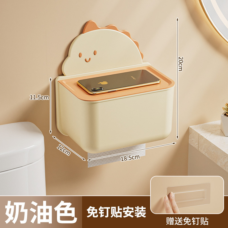 卡通恐龙卫生间纸巾盒壁挂式免打孔厕所抽纸盒厨房客厅纸抽收纳盒