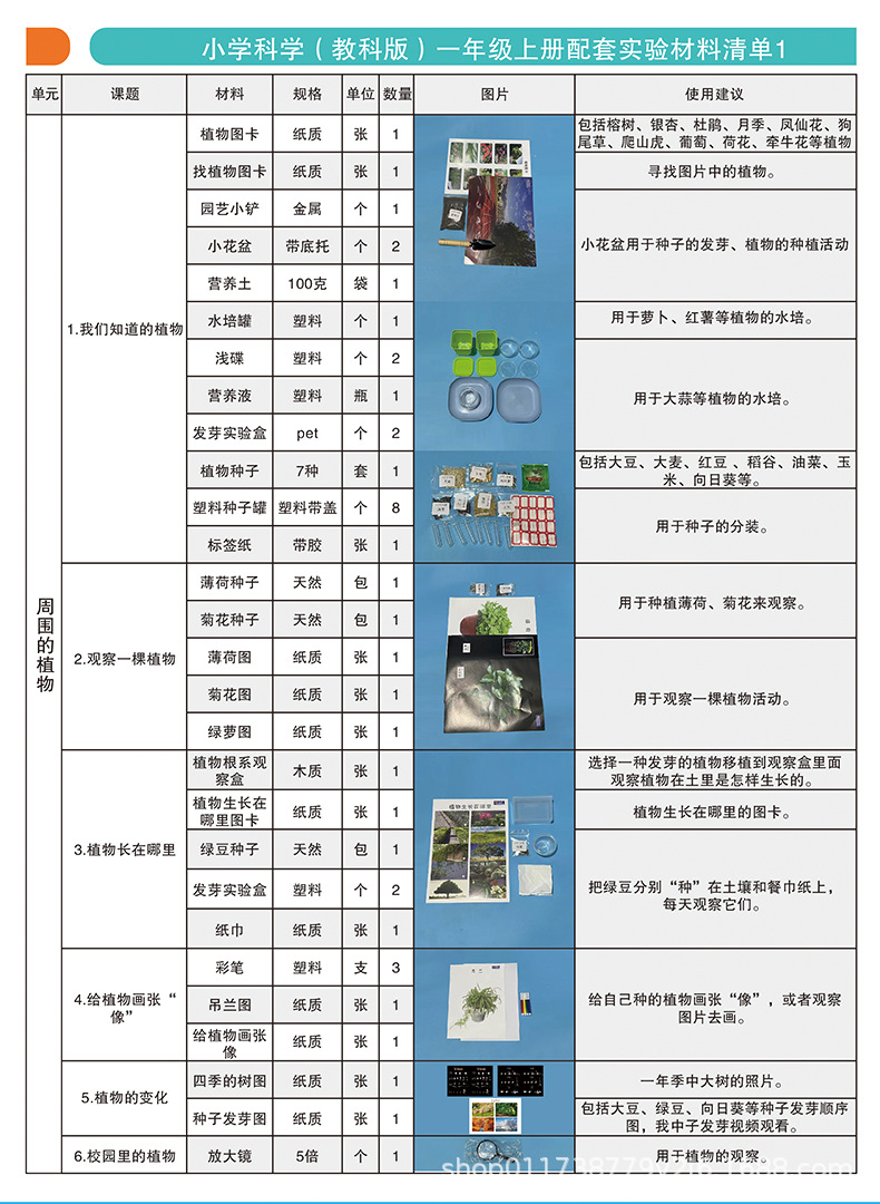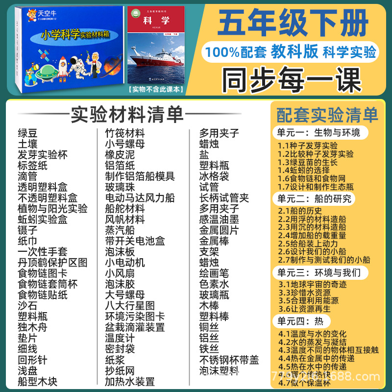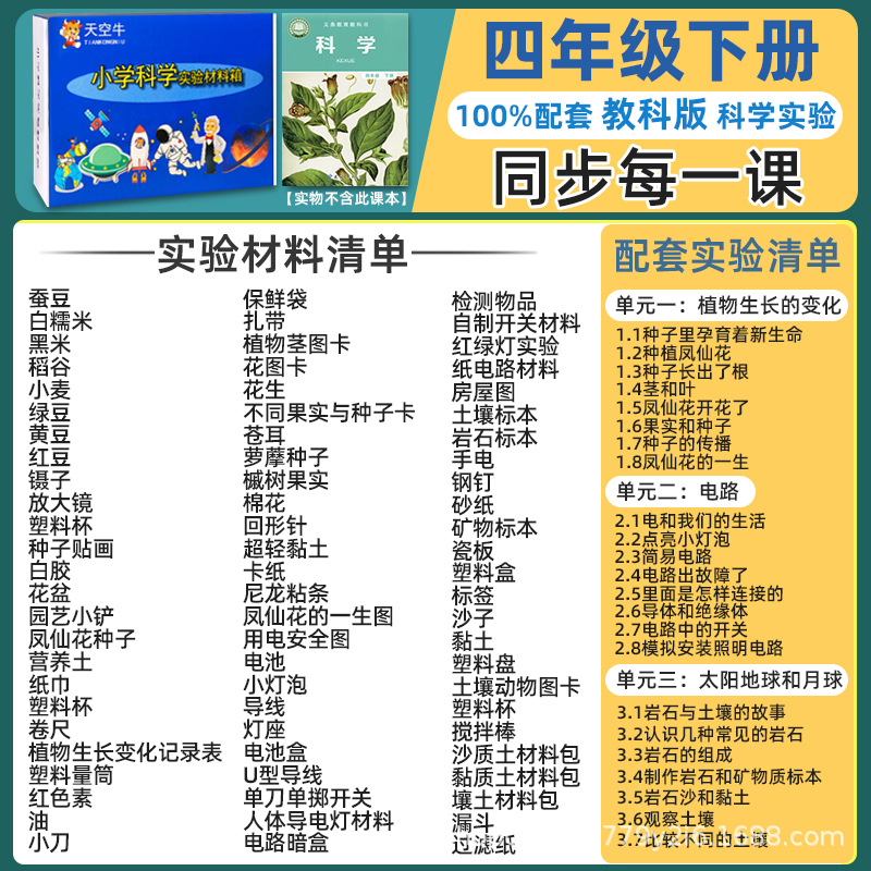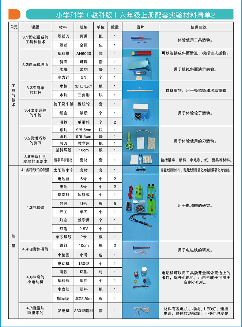教科版小学科学实验材料全套一二三四五六年级上下册教材同步爱牛