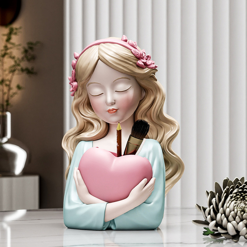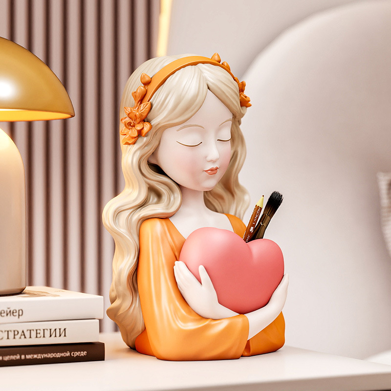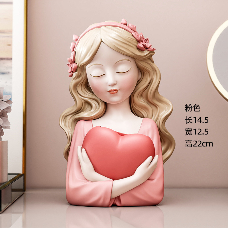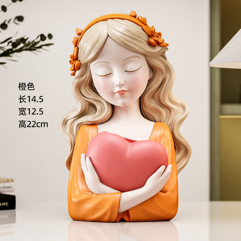 创意爱心少女化妆台收纳盒装饰摆件电视柜玄关收纳筒奶油风生日礼