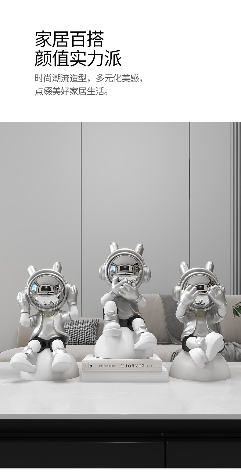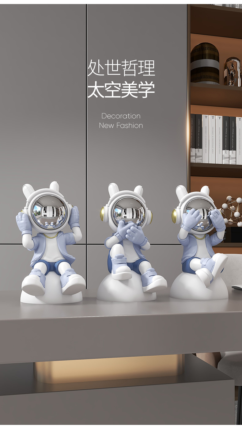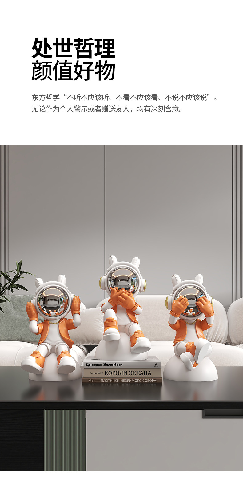 不听不看不说宇航员电视柜酒柜桌面摆件高级感玄关太空装饰品