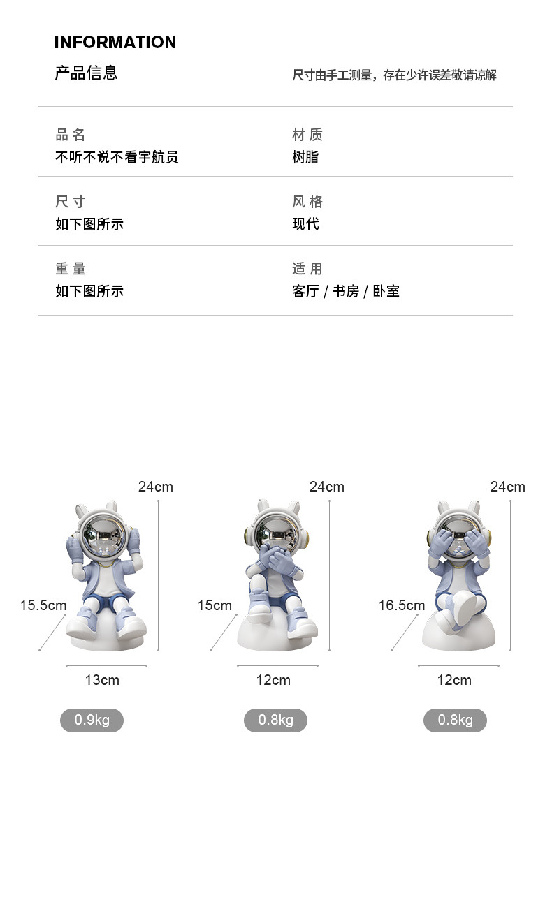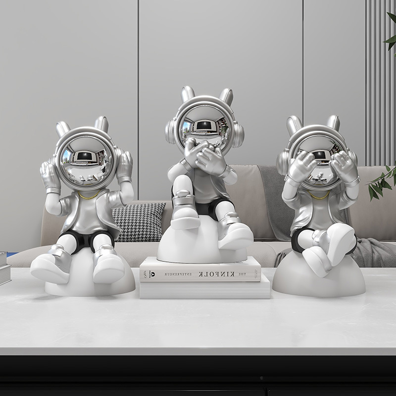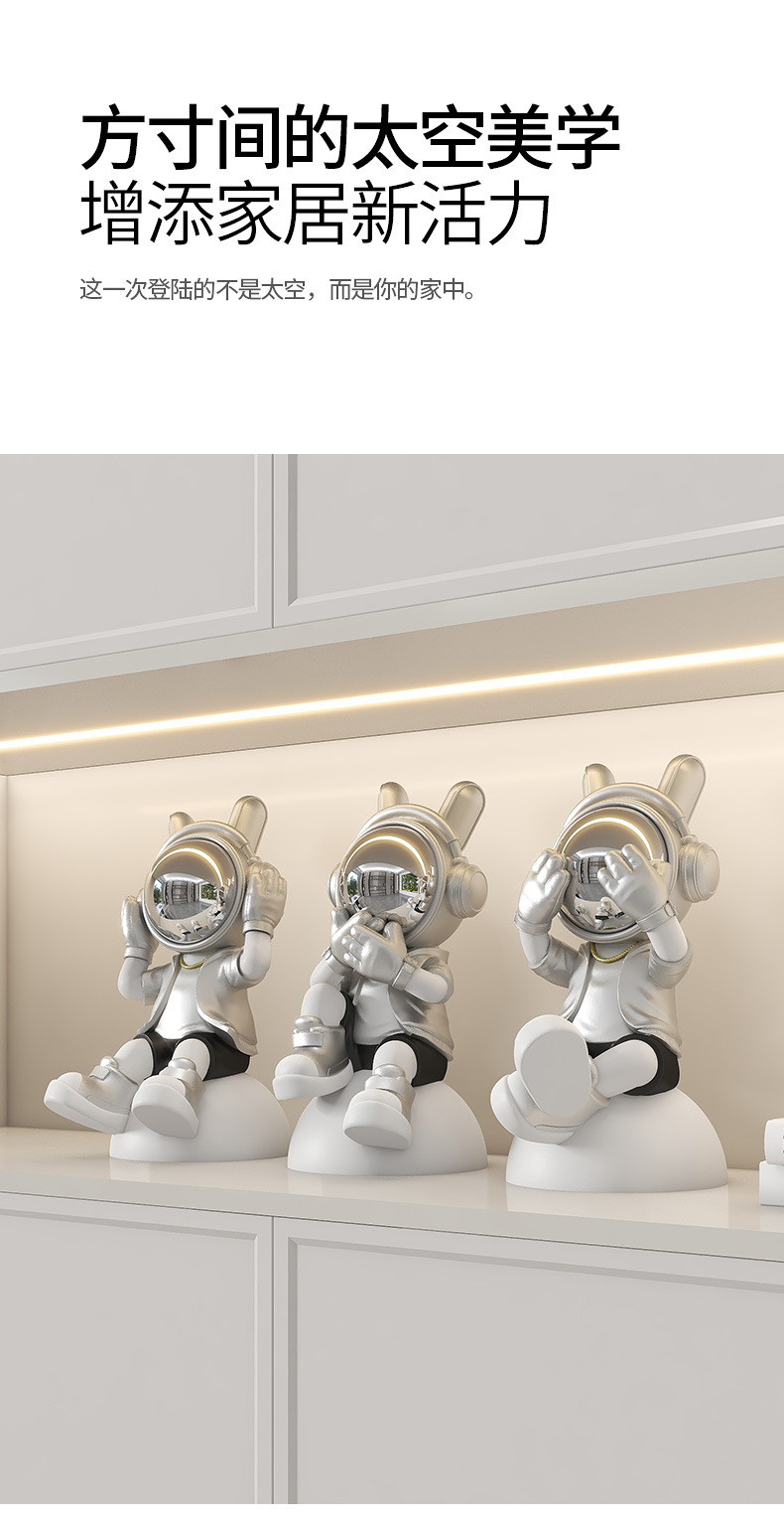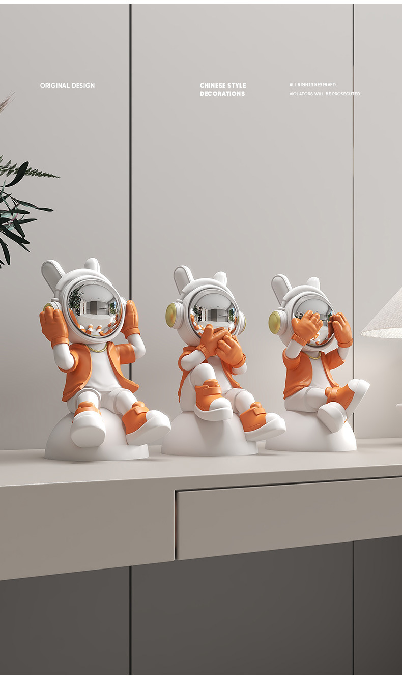 不听不看不说宇航员电视柜酒柜桌面摆件高级感玄关太空装饰品