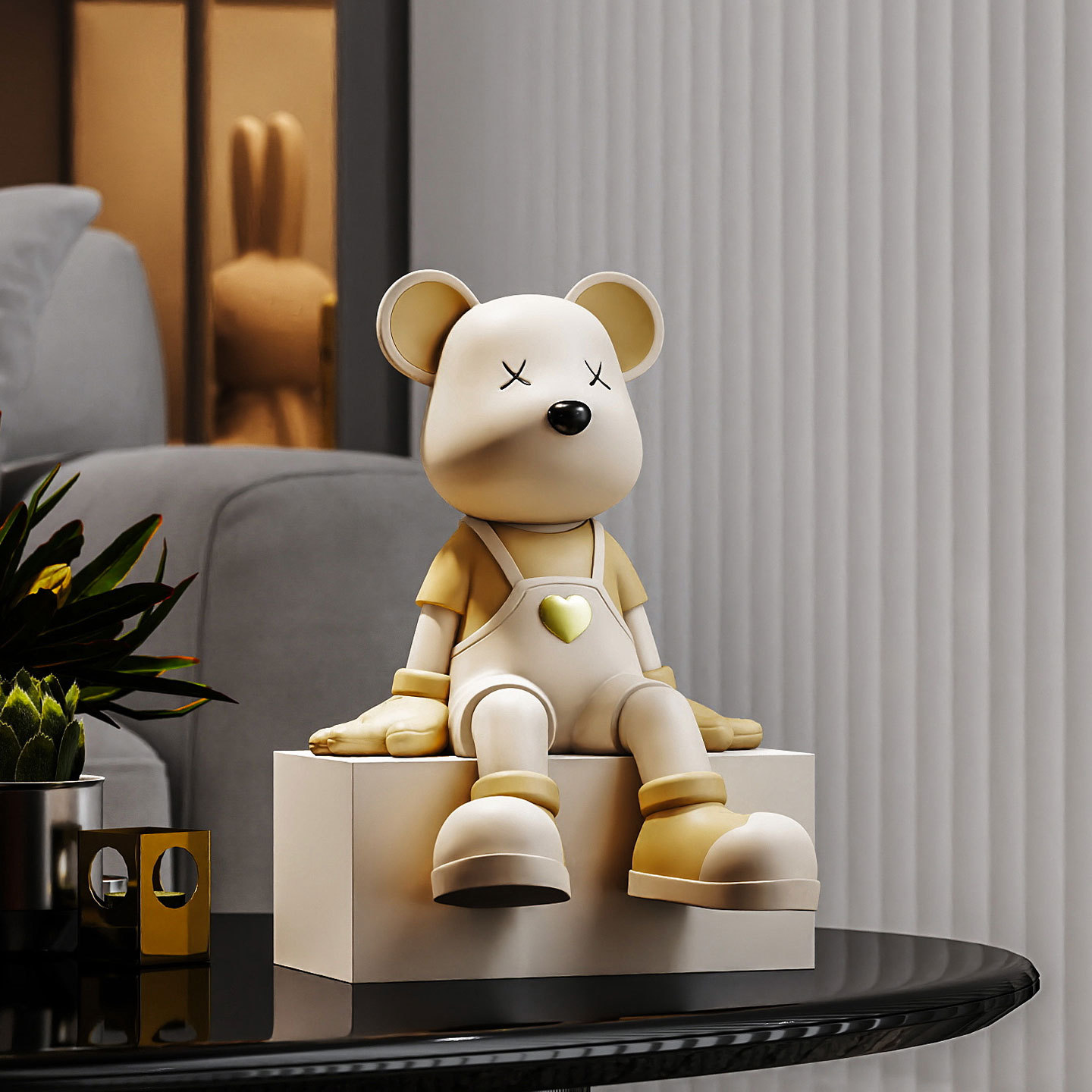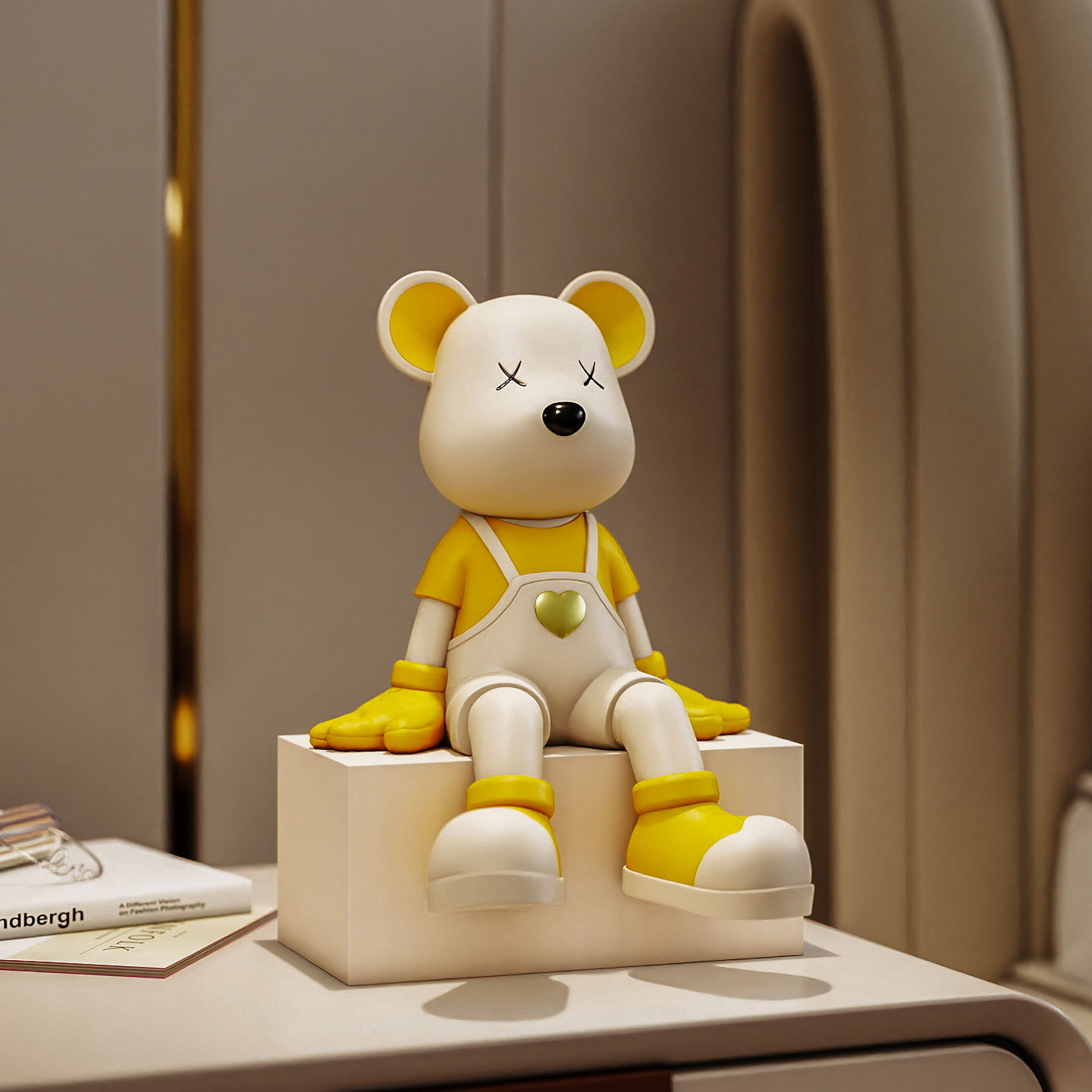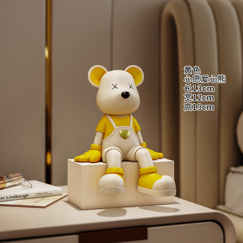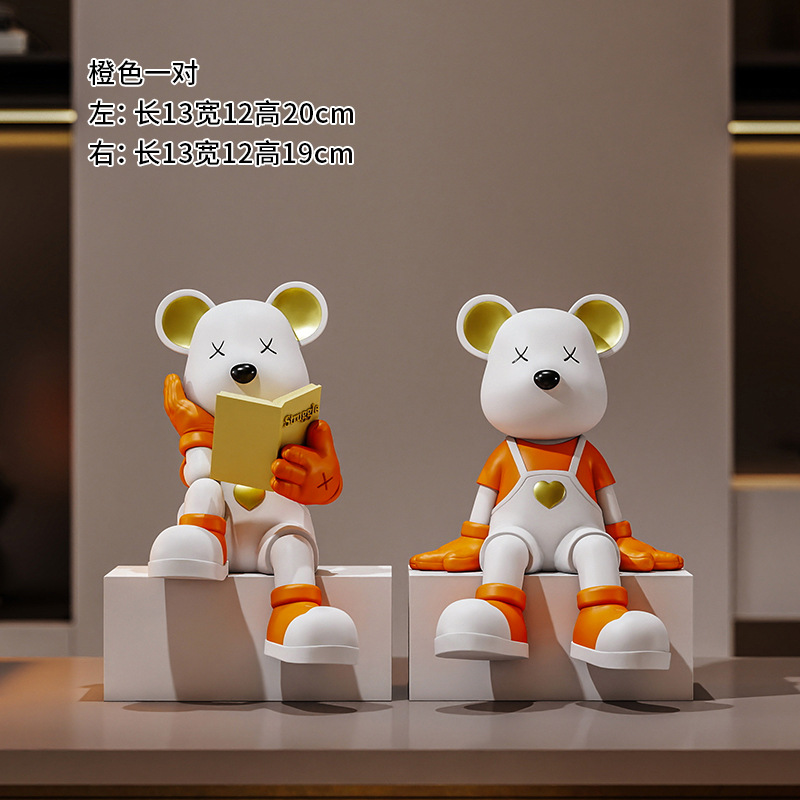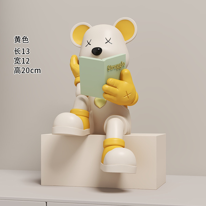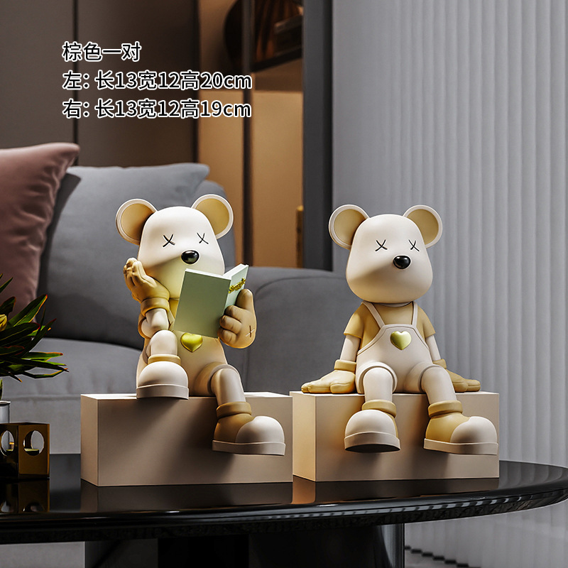 爱心熊暴力熊桌面摆件看书熊装饰品电视柜玄关新房软装树脂工艺品