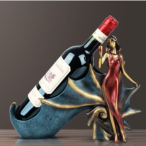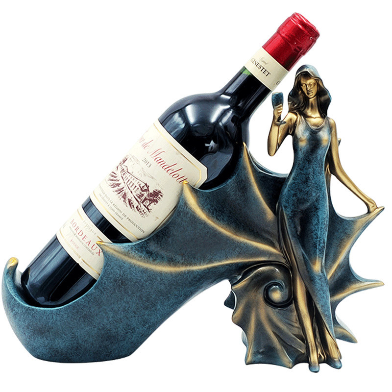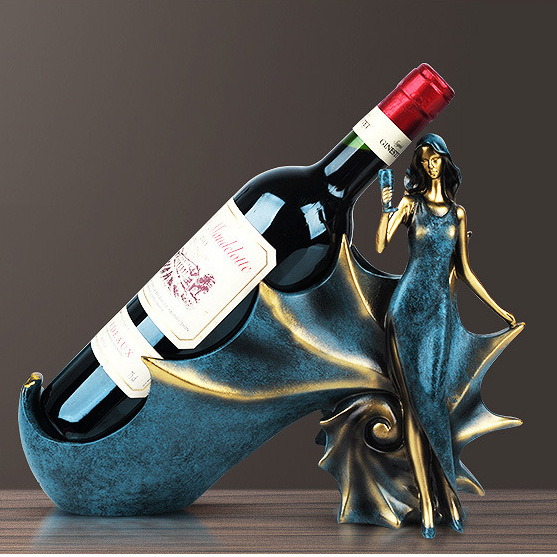 欧式仿古蓝色美女酒架客厅书房装饰品厨房酒柜饰品树脂工艺品摆件
