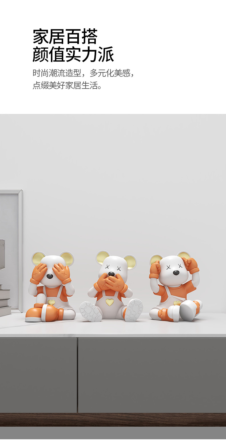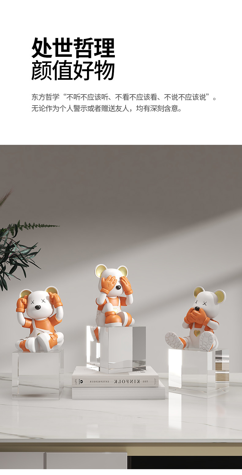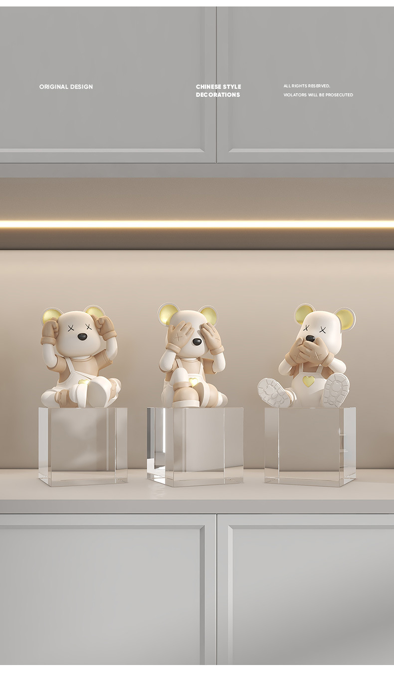创意不看不听不说爱心熊桌面摆件电视柜酒柜玄关装饰品乔迁新房礼