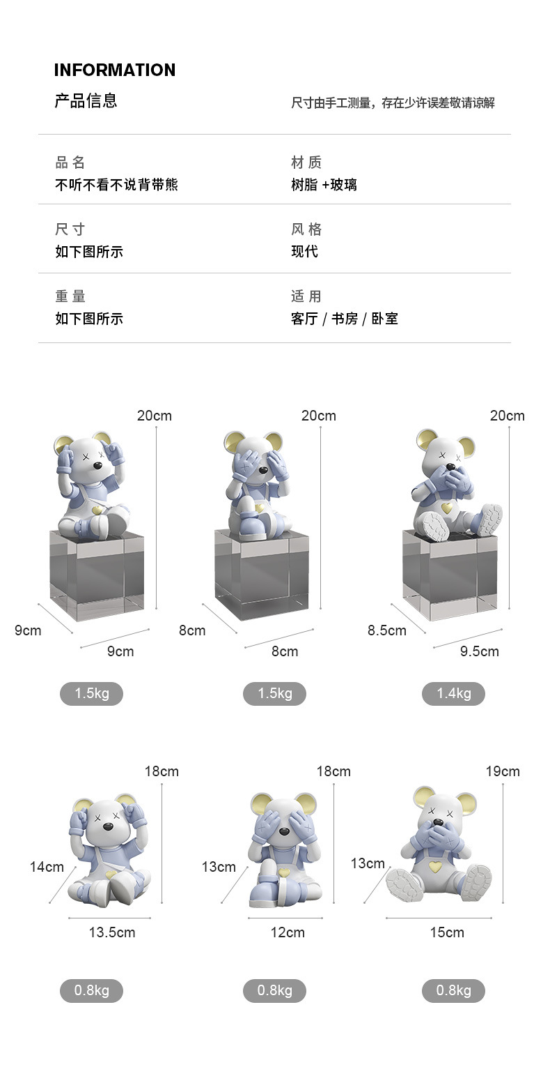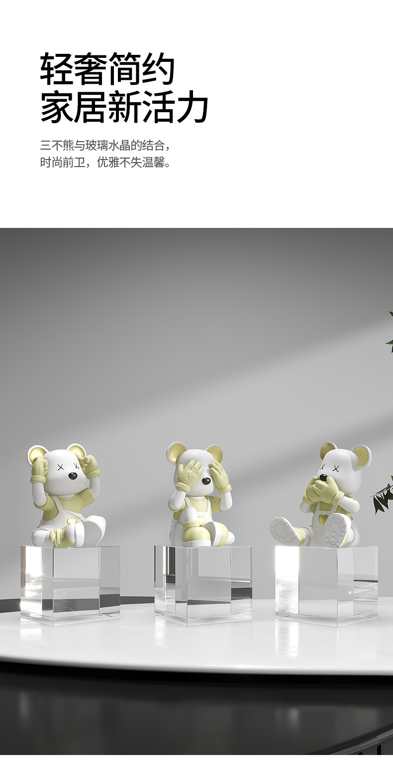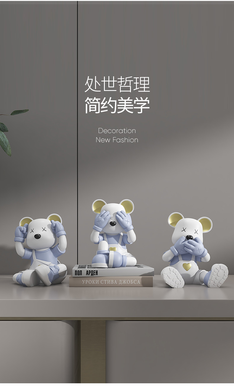 创意不看不听不说爱心熊桌面摆件电视柜酒柜玄关装饰品乔迁新房礼
