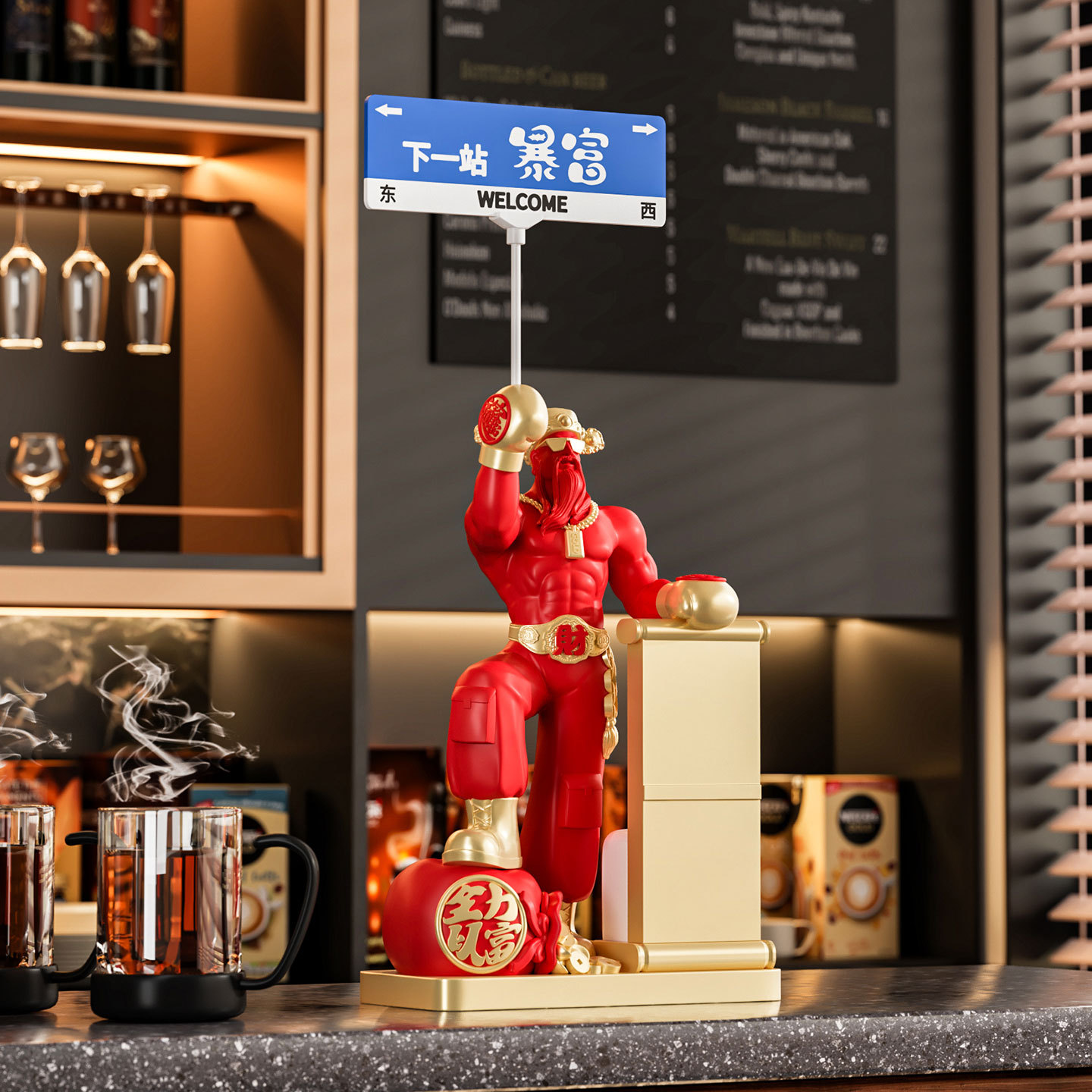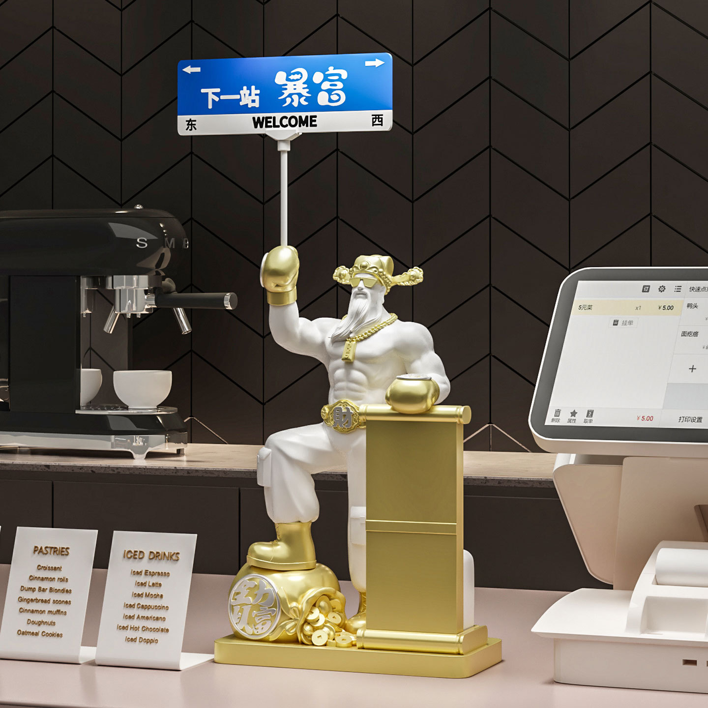 树脂工艺品财神桌面摆件新店开业路牌店铺收银台装饰品开业送礼
