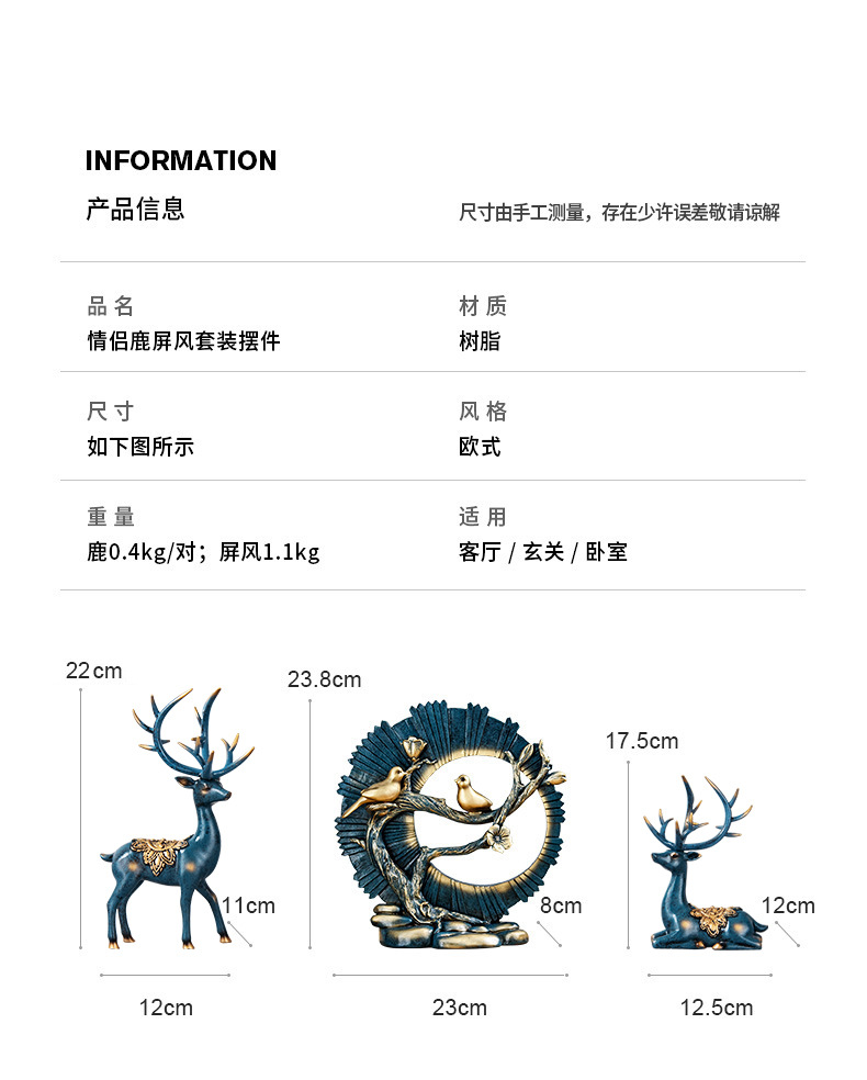 欧式情侣鹿摆件客厅电视柜酒柜玄关创意家居装饰品卧室轻奢工艺品