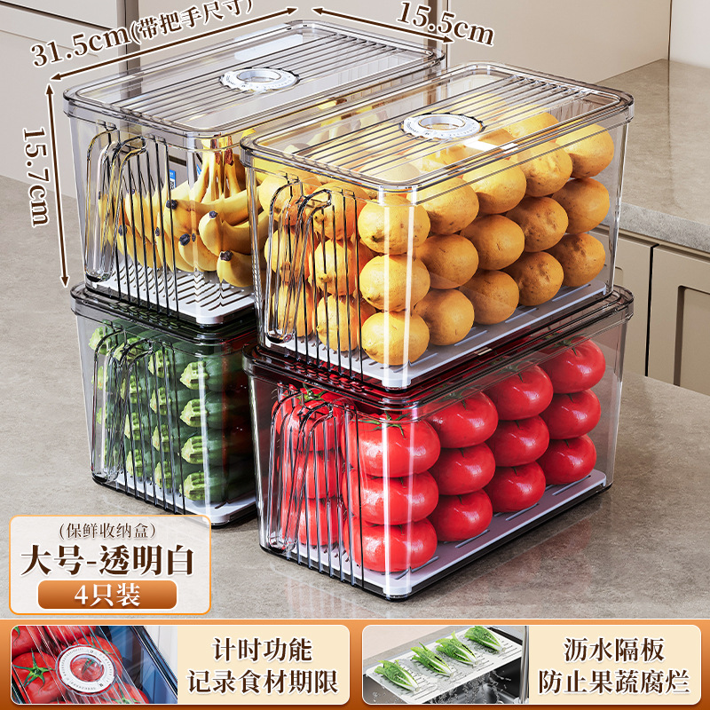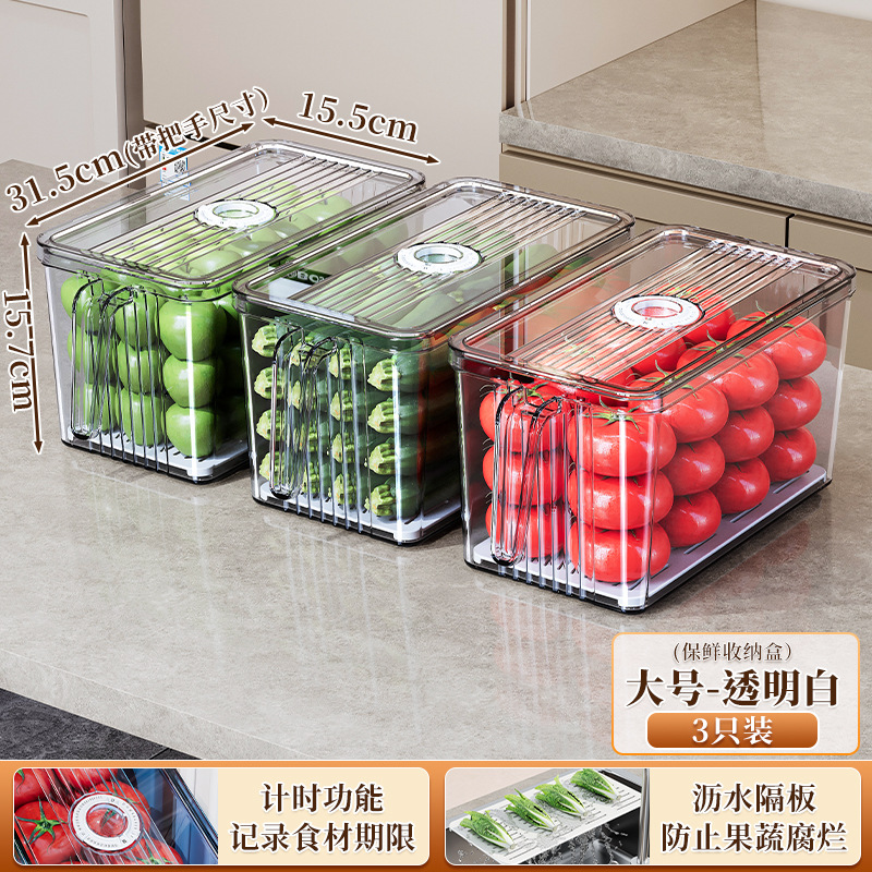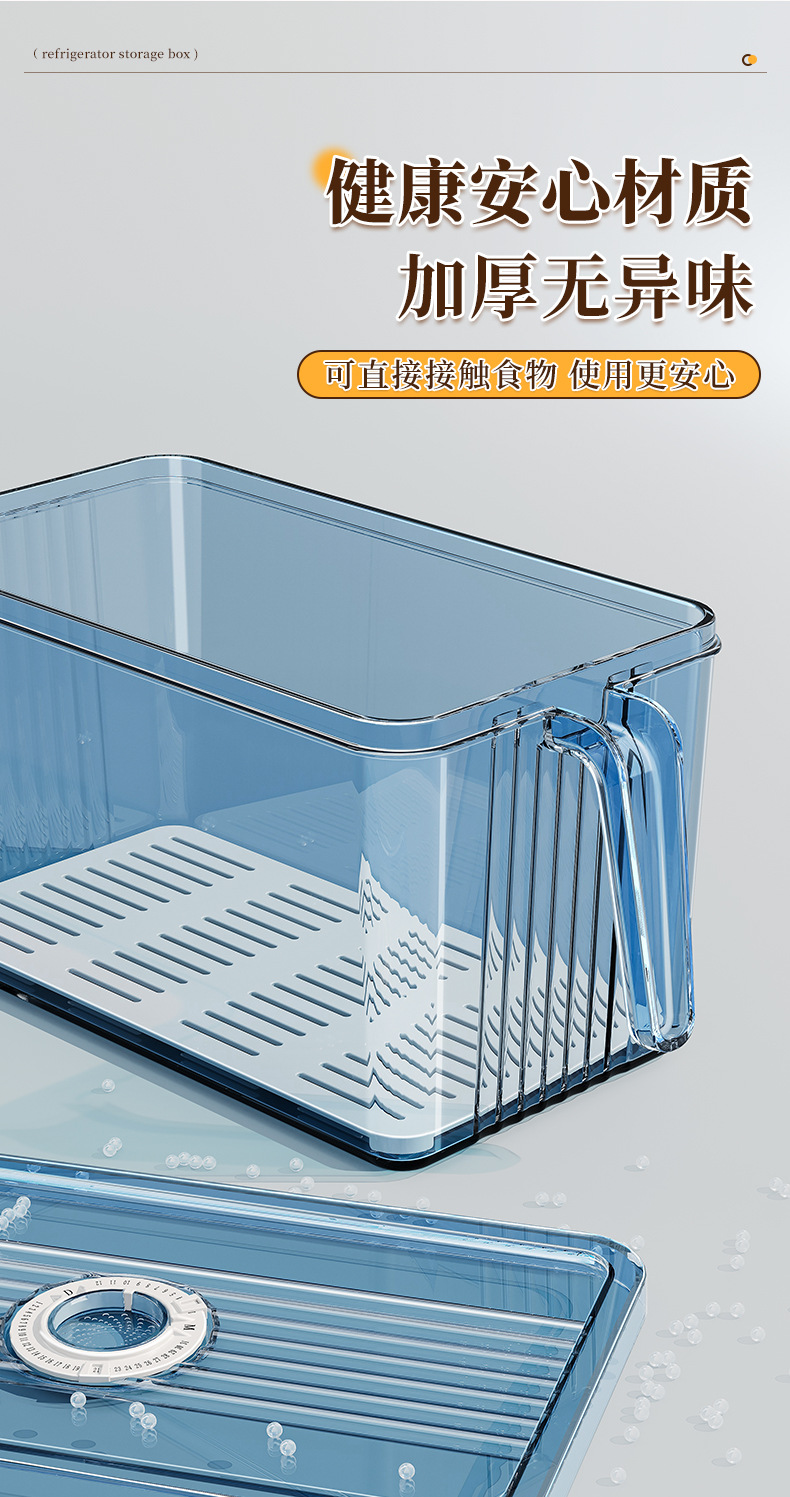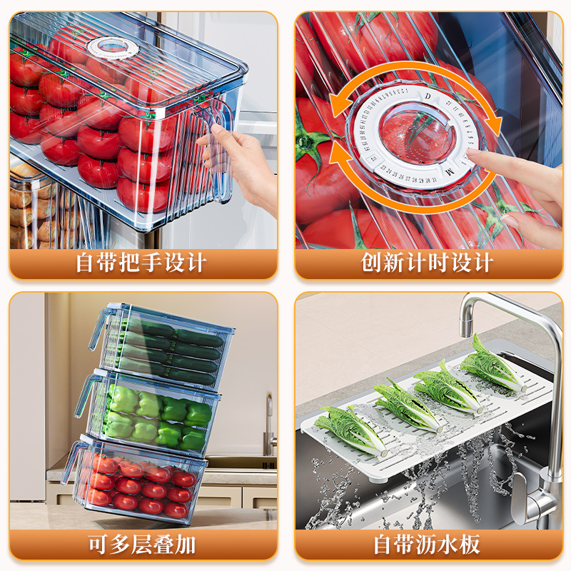 厨房冰箱收纳盒食物防窜味计时保鲜盒带手柄水果蔬菜食品级储物盒