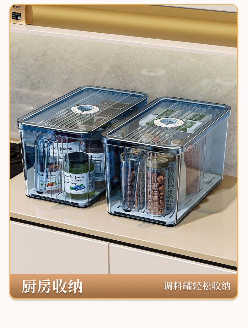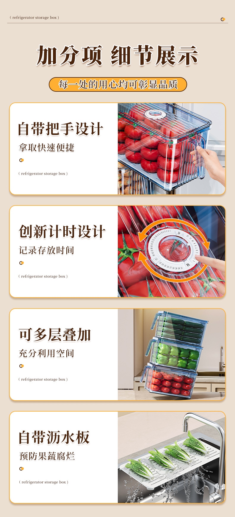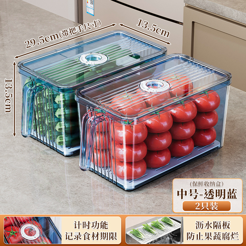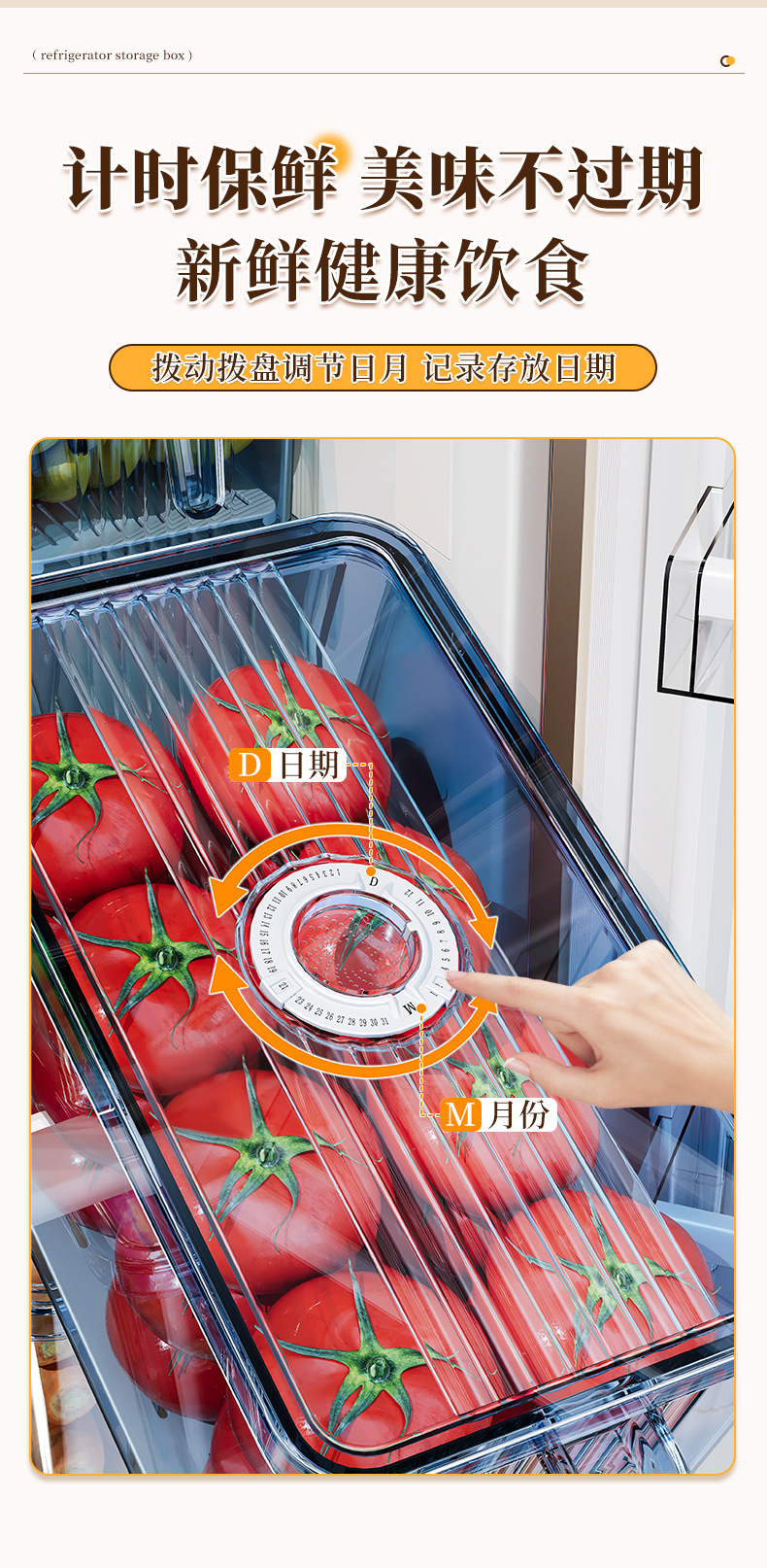 厨房冰箱收纳盒食物防窜味计时保鲜盒带手柄水果蔬菜食品级储物盒