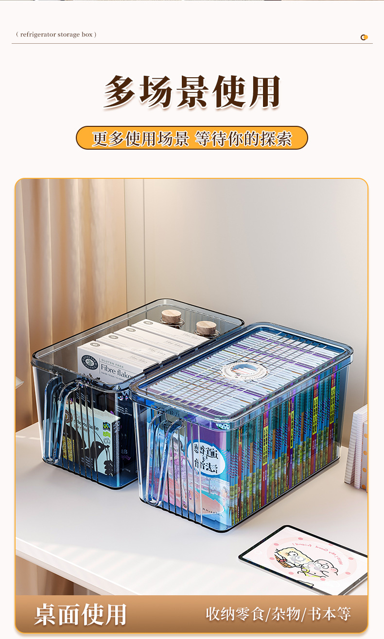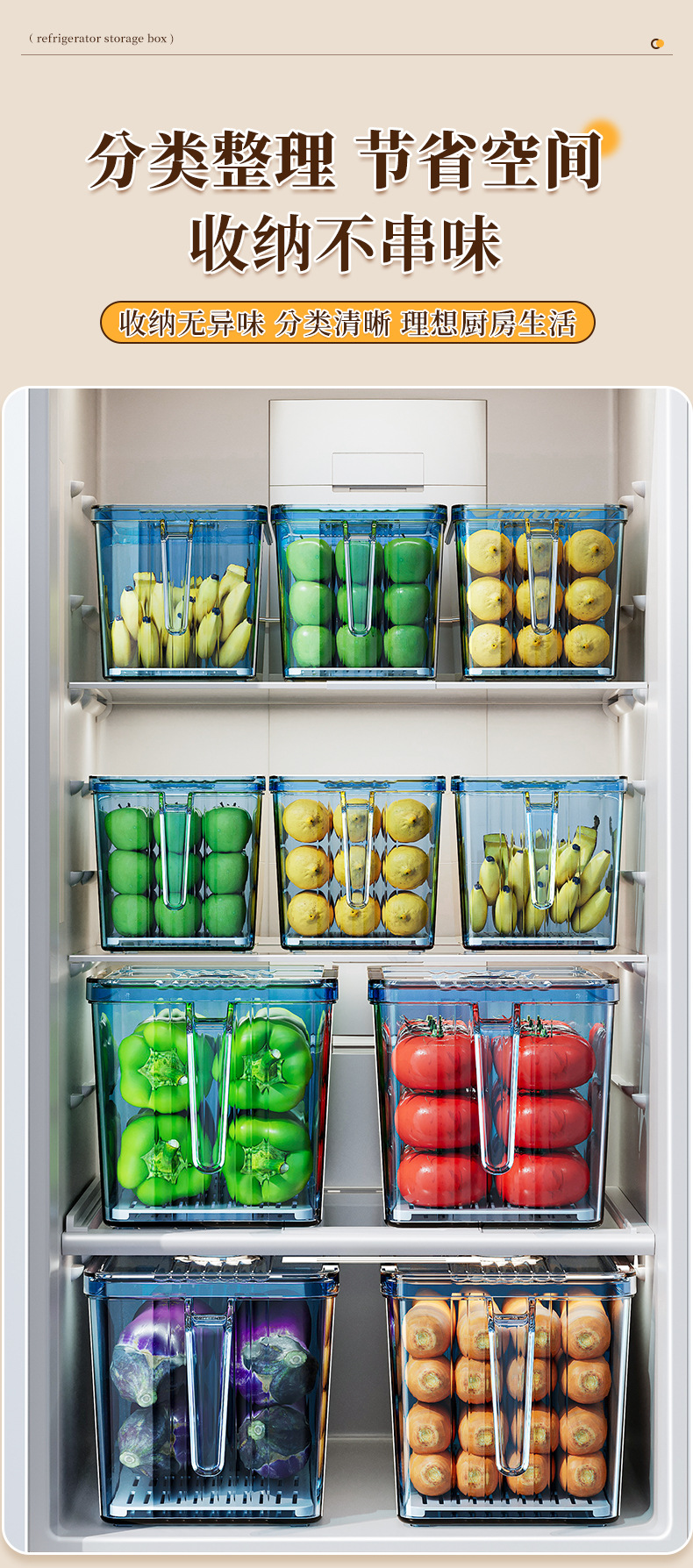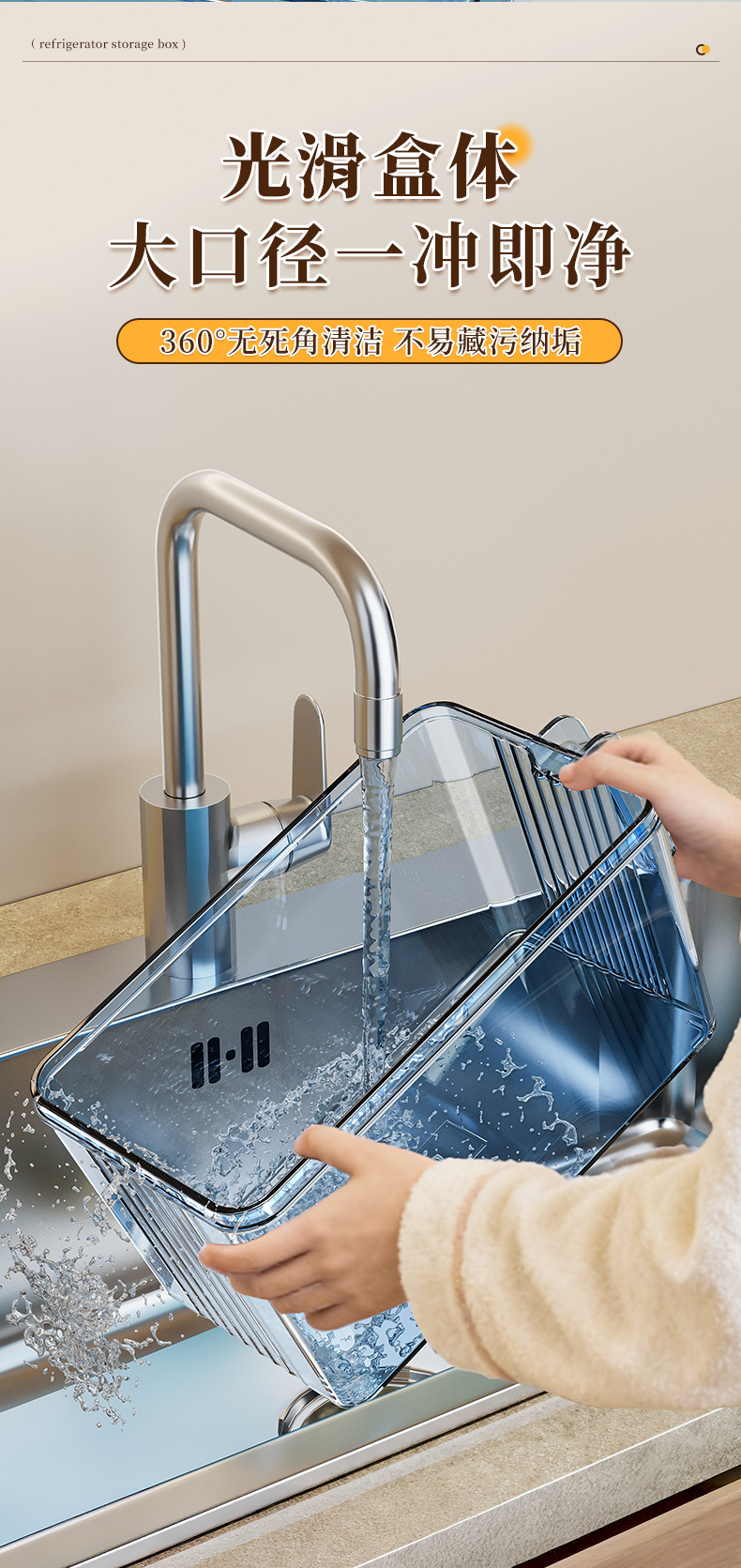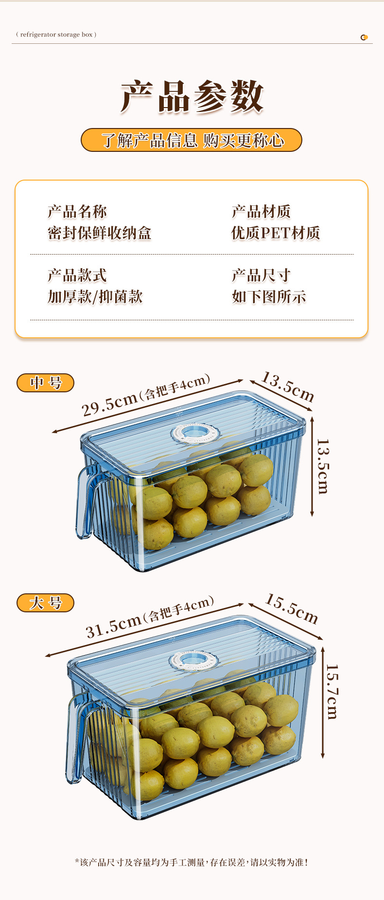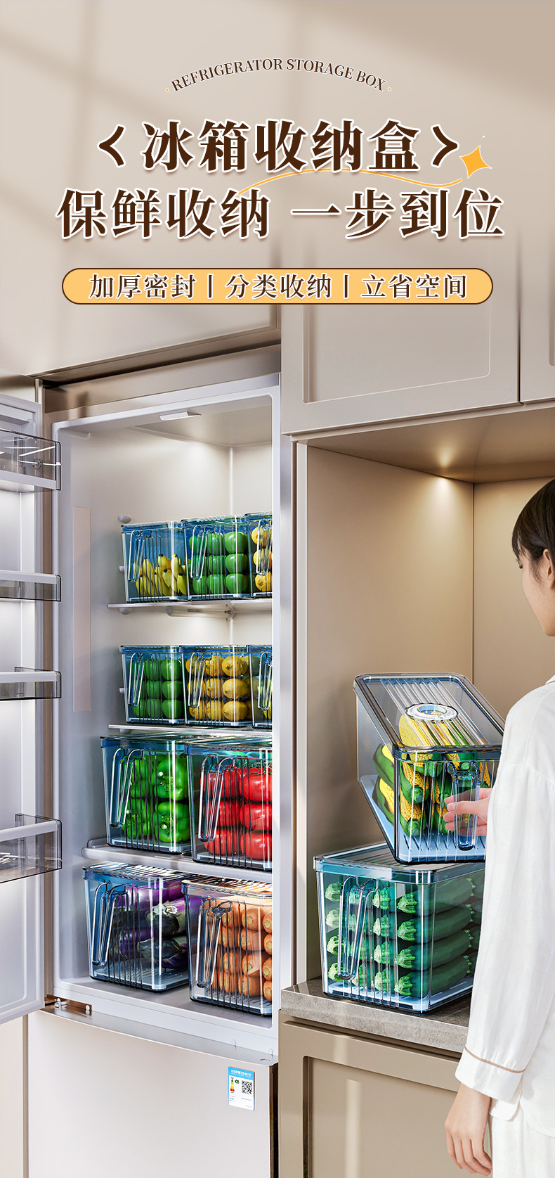 厨房冰箱专用收纳盒带手柄PET保鲜盒食品级整理神器透明储物盒子