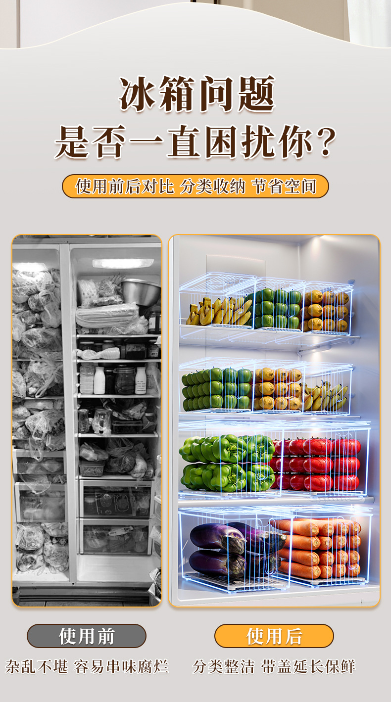 冰箱厨房收纳神器密封长方形塑料水果分类整理蔬菜PET保鲜盒新款
