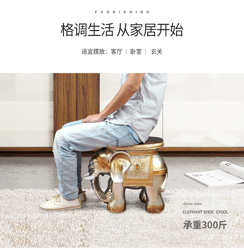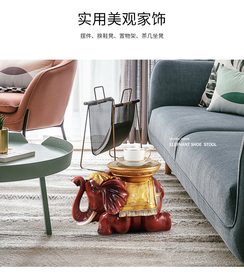 大象凳换鞋凳酒店客厅玄关进门口摆件乔迁送礼新房装饰品树脂工艺