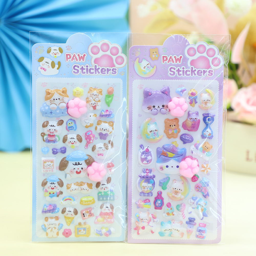 跨境爆款小哭娃猫爪贴纸创意DIY手工素材装饰贴卡通捏捏乐贴画批