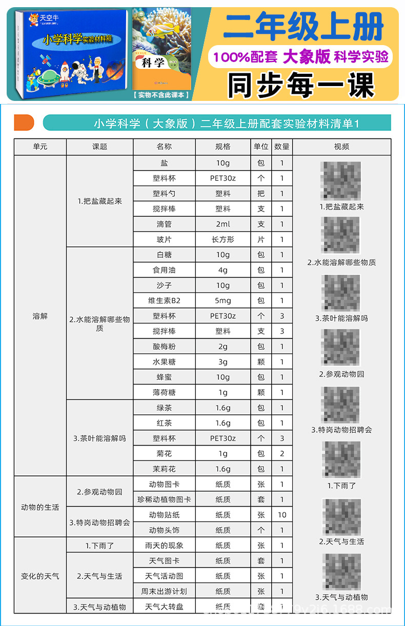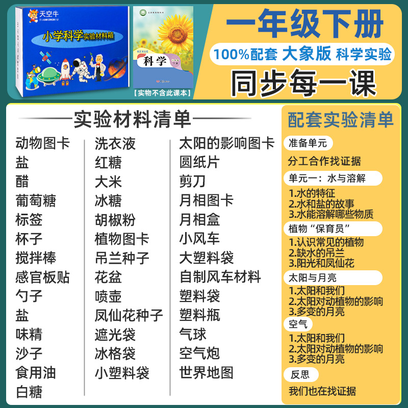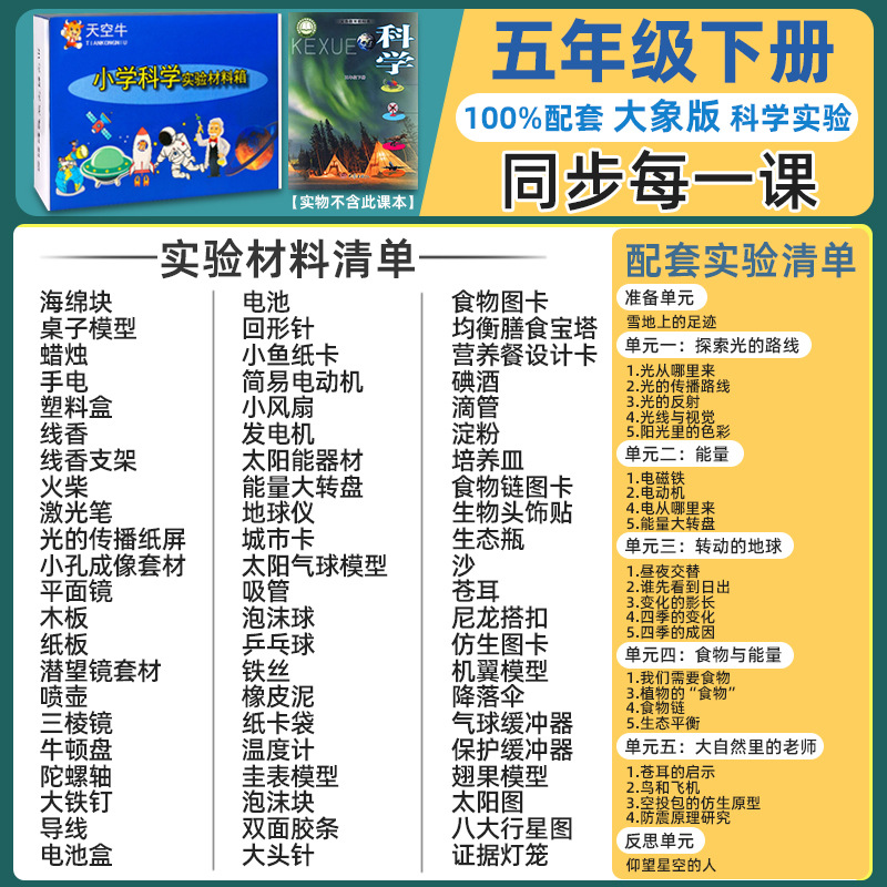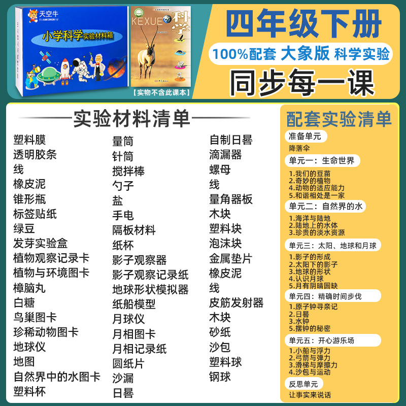 天空牛大象版一二三四五六年级上下册小学科学实验同步教教材套装