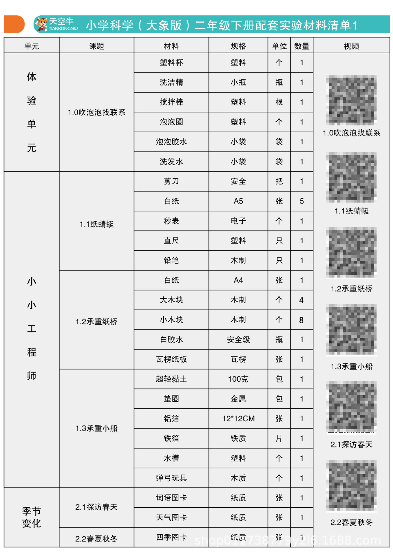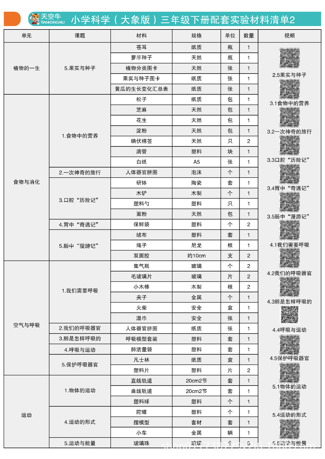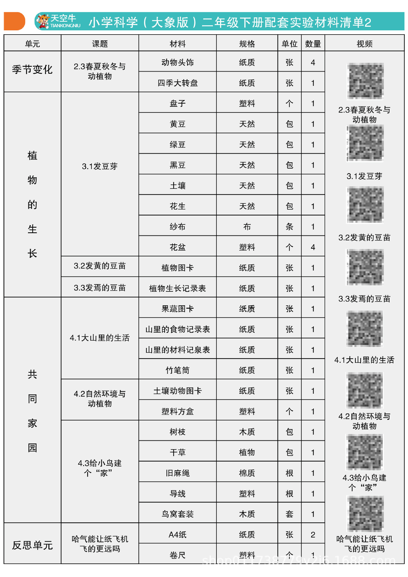 天空牛大象版一二三四五六年级上下册小学科学实验同步教教材套装